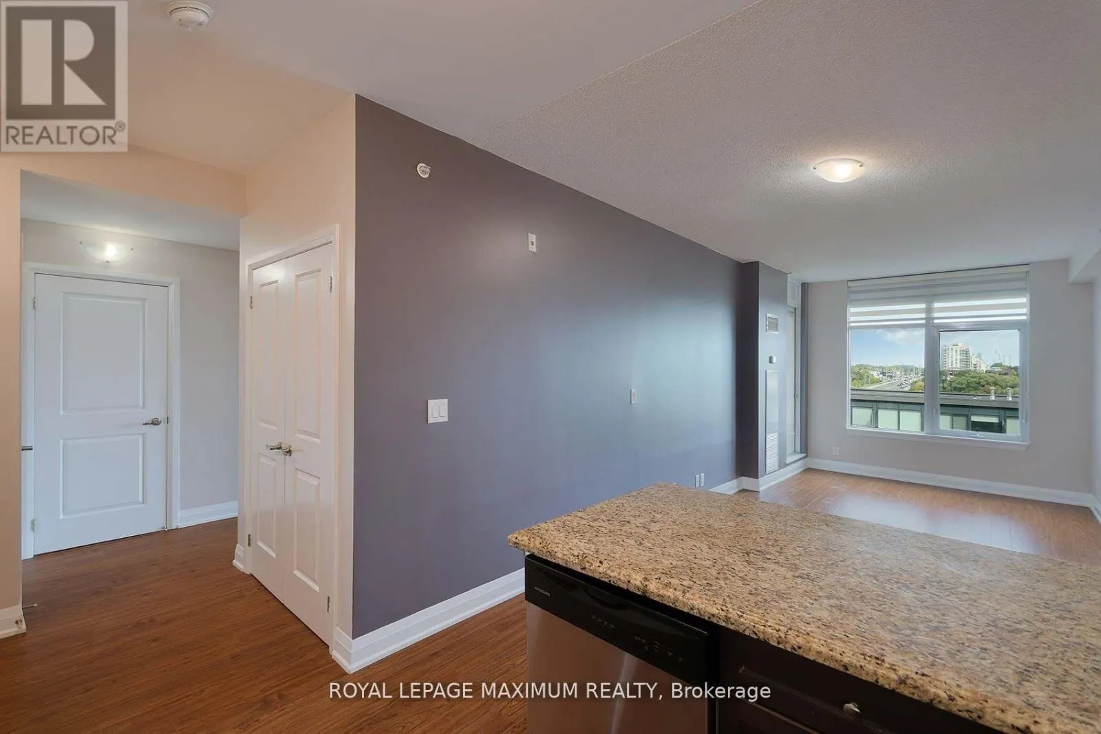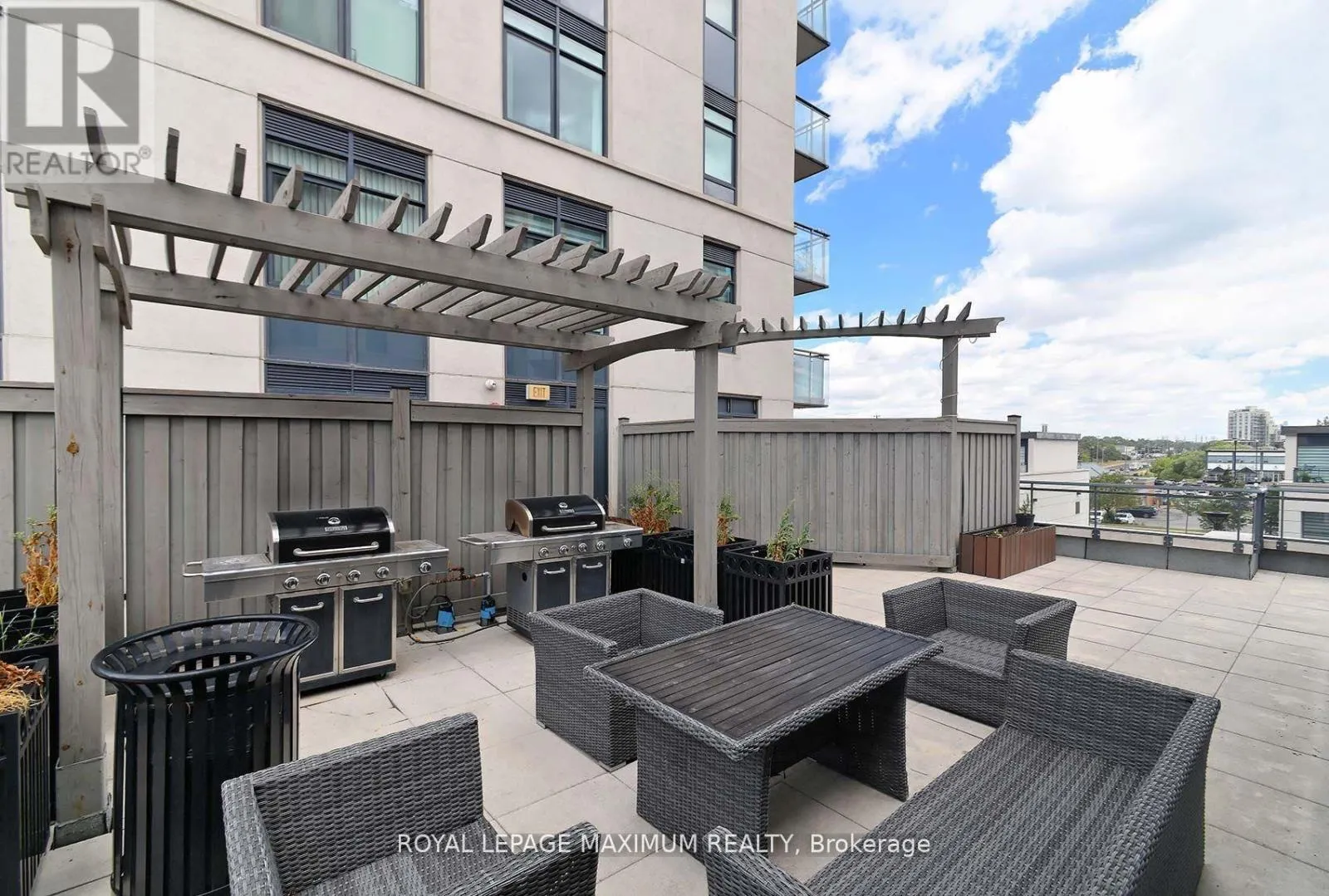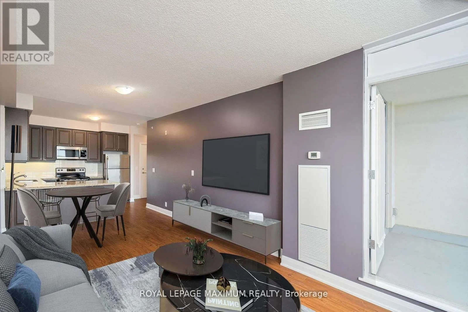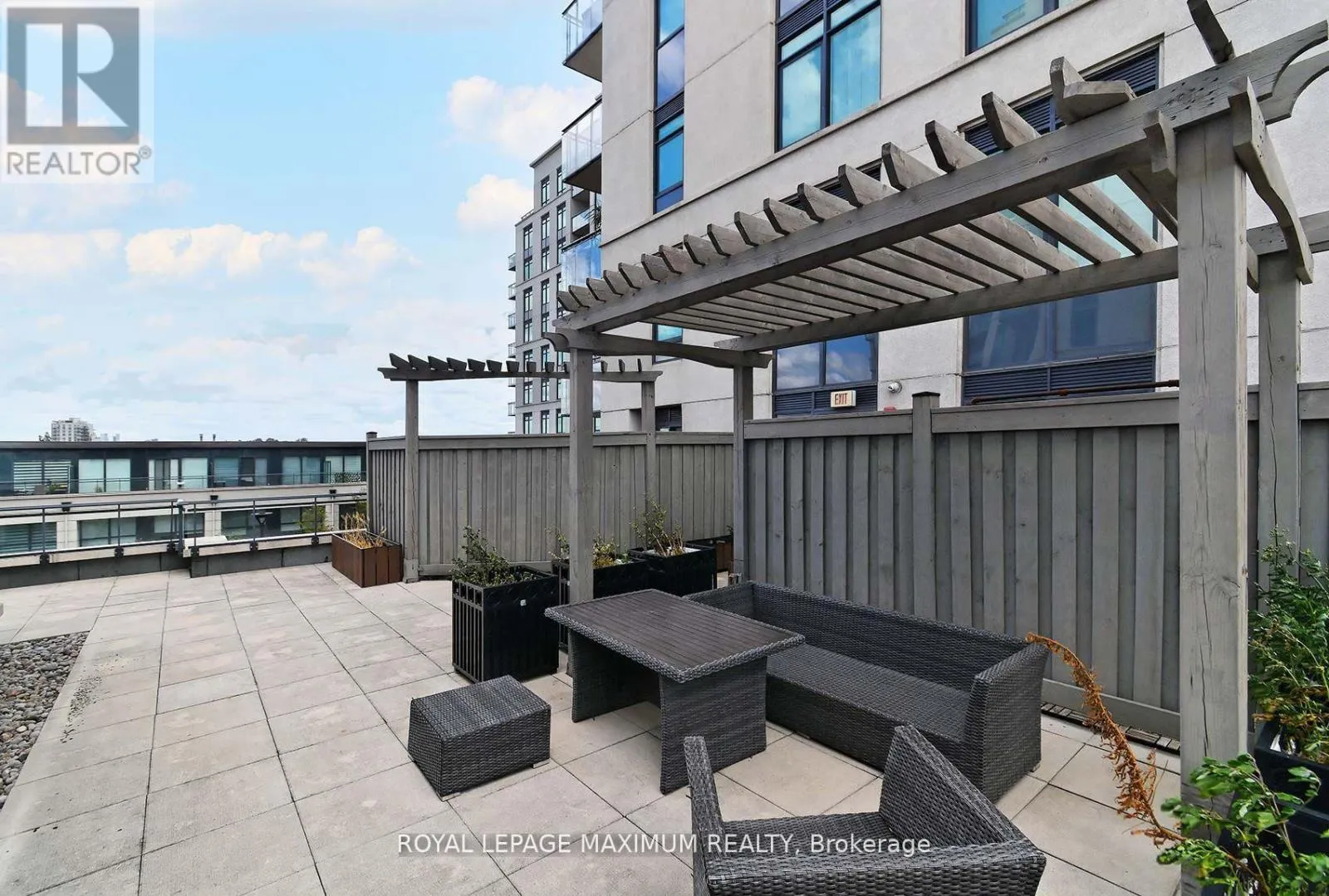 Highway 7 & Martingrove Welcome to this beautifully maintained 1-bedroom condo offering the perfect blend of comfort, style and convenience. Featuring laminate floors throughout and an abundance of natural light, this bright and airy unit boasts unobstructed views of a private, landscaped courtyard-a peaceful retreat with manicured gardens that provide a quiet, calming atmosphere. The open-concept kitchen is both functional and elegant, complete with a breakfast bar, stainless steel appliances, upgraded granite countertops, and timeless cabinetry that complements any decor. Enjoy the convenience of Ensuite laundry, one parking space and a storage locker. Situated in the heart of West Woodbridge, you're just steps from local shops, restaurants and amenities, with easy access to schools, parks and Highway 427-perfect for commuters and urban explorers alike. Residents enjoy access to world-class building amenities, including a stunning lobby, fully-equipped gym, 24-hour concierge and stylish party room-offering luxury, security and convenience all in one. Don't miss your opportunity to own this sun-filled gem in a prime location.! (id:27476)