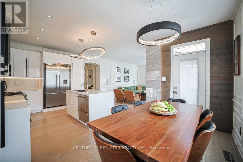 Weston Rd/ Major MacKenzie Dr Welcome to this Arista built gem in one of Vaughan's most sought after neighborhoods. Upgraded and renovated with true craftmanship, exquisite finishes and attention to every detail (over $400k). The heart of this one of a kind home features a custom kitchen with top of the line Fisher & Paykel Stainless Steel Appliances, built in microwave, accent and drawer lighting. An impressive marbel fireplace wall with custom cabinetry and electrically operated base cabinet in the family room entices relaxation. Hand crafted coffered ceilings in the dining room and primary bedroom and wall paneling throughout offer a touch of modern traditionalism. The primary bedroom offers unparalleled comfort, serenity and style with a custom designed spa-like ensuite, walk-in closet with built-in wardrobes and in-ceiling speakers in both the bedroom area and ensuite. Meticulous attention to detail continues in the finished lower level with flat ceilings (no unsightly bulkheads here!) and boasts a bespoke theatre room that presents you with a true cinematic experience in addition to a lounge / exercise room area, completed with a bar / kitchenette. Google home integration for thermostat, front doorbell camera, smoke / CO2 detectors and garage door to house door lock. Voice activated lighting in theatre room, laundry and 4th bedroom. Polished porcelain and wide-plank hardwood flooring throughout. EV plug in garage. The media room features a high-quality surround sound system, a JVC DLA projector, and an approximately 3284 mm projection screen, delivering a true cinematic experience. See attached list of features and upgrades. Over 3,700 sqft of luxurious living space. Quiet, family friendly neighborhood with parks and schools just steps away. (id:27476)