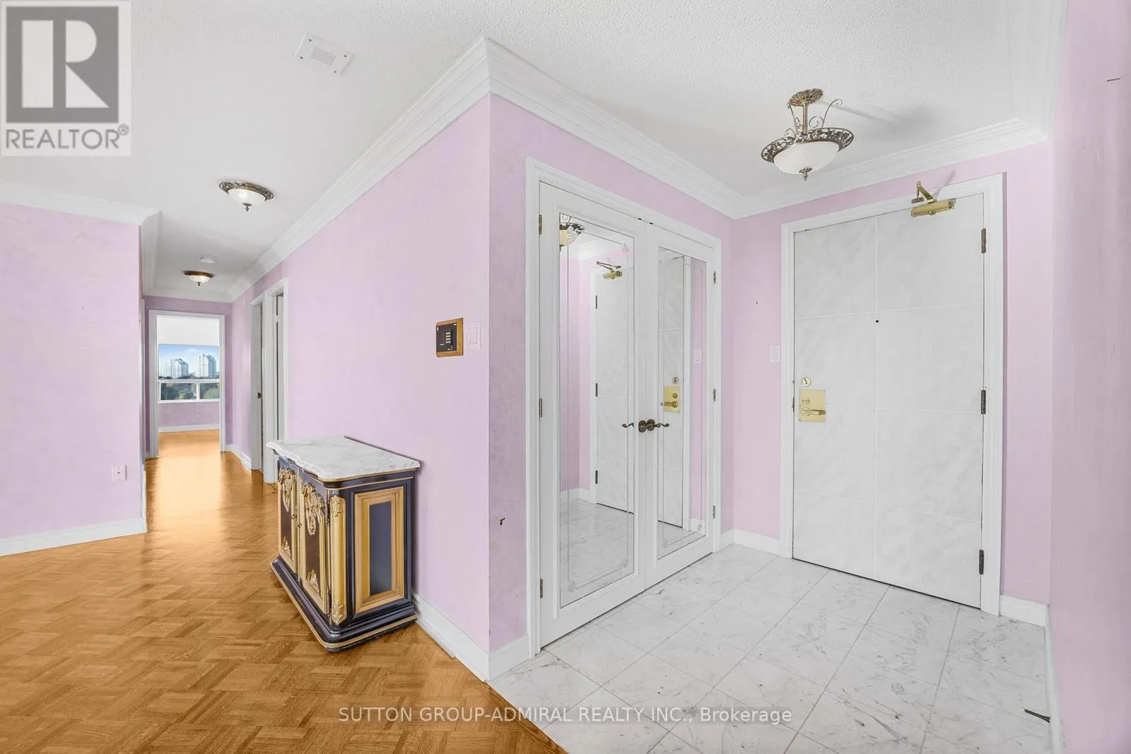 Bathurs/Clark/Hilda Rare opportunity for a bright corner suite 1738 sq ft in the high demand The Conservatory with amazing south, west and north views.Walkouts from the family-sized kitchen, living room and solarium to a large balcony with a clear unobstructed view of the CN Tower.Ideal for large family gatherings, the spacious rooms offer great flow and space. All ready for a personal touch.The sun-filled solarium adjacent to the living room can be easily converted to a private office, den or guest space.The spacious primary bedroom features a 4 piece ensuite and a customized walk-in closet.Highlights of the 2nd bedroom include a built-in wall unit, large closet and unobstructed west view.There is crown moulding and rich parquet flooring throughout.The oversized laundry room is complete with a laundry tub, cabinets,built in storage and a wall to wall closet.Tandem parking for 2 cars is steps to the elevator.The Conservatory is well known as a community. It is located close to the Sobey's plaza, public transit, the community centre, synagogues and more.Outstanding amenities include gatehouse security, indoor pool, guest suites, gym, squash & racquetball courts, billiard & ping pong,library, party room , Sabbath elevator, gazebo and beautifull landscaping. Maintenance includes all utilities as well as cable and phone. This is an estate sale with no seller warranties. (id:27476)