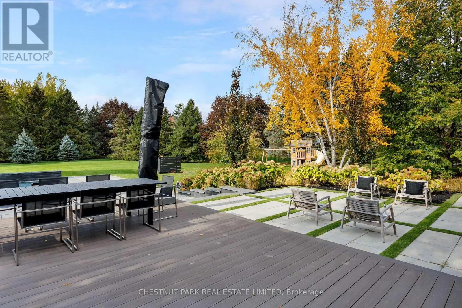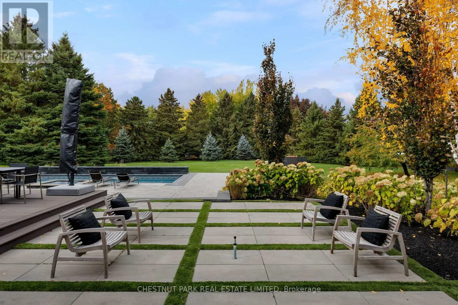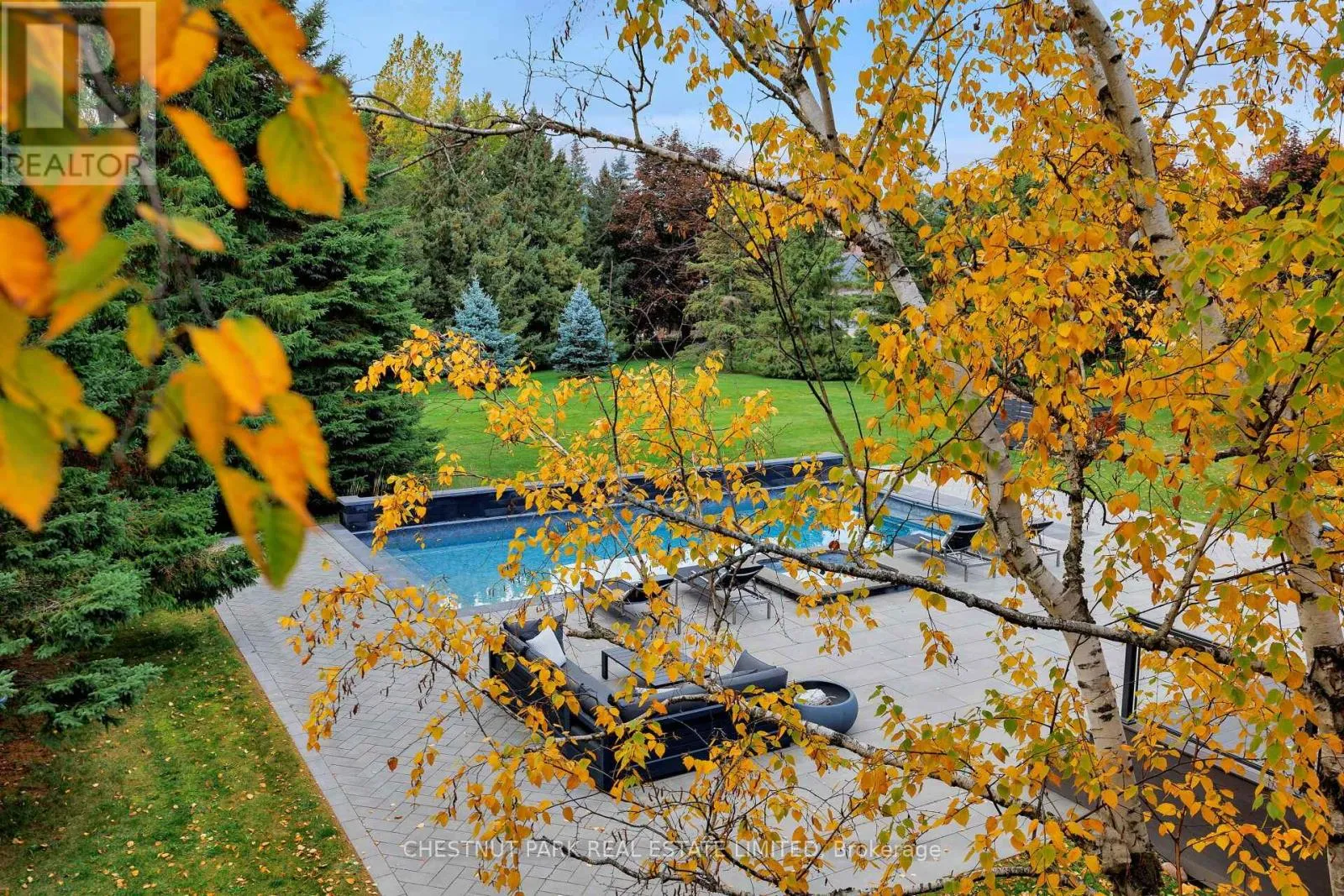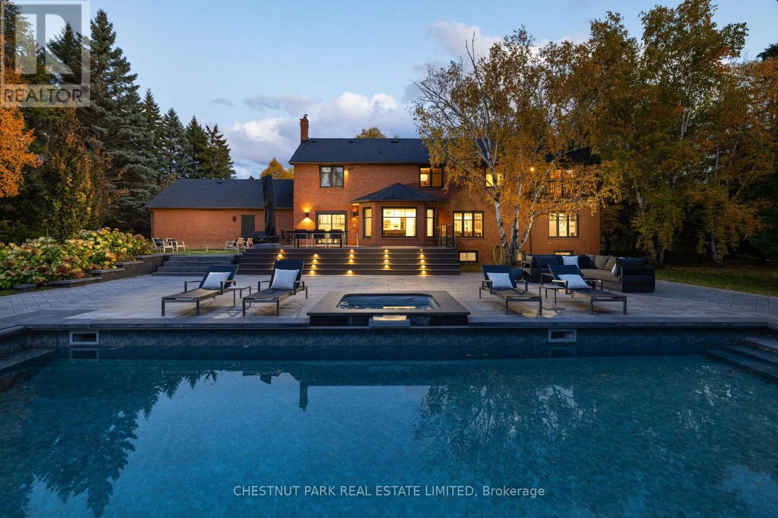 Cross Streets: Golf Ave & Fenyrose Cres. ** Directions: North on Pine Valley Dr from Langstaff Rd. Discover the perfect balance of sophistication, comfort & lifestyle at 20 Fenyrose Cres, an exquisite estate home located in Vaughan's most exclusive neighbourhood: Pinewood Estates. Nestled on a quiet cul-de-sac facing a serene park just minutes from the renowned National Golf Club, this property offers unmatched elegance on 1.43 acres of beautifully landscaped grounds. With 5,000+ sq ft of total living space, this home is designed for both refined living & effortless entertaining. Step into a grand foyer filled with natural light. The elegant living room features hardwood floors, custom cabinetry & a gas fireplace, flowing seamlessly into the formal dining room with breathtaking backyard views. A chef-inspired kitchen anchors the main floor, boasting custom cabinetry, granite counters, tiled backsplash & premium appliances. A generous centre island & breakfast bar open to a cozy family room with a fireplace & walk-out to a west-facing backyard oasis. Also on the main: a private home office, powder room, laundry room, & access to the oversized 3-car garage + 6 driveway spaces. The 2nd floor features 4 spacious bedrooms & 2 full bathrooms, including a serene primary suite with a sitting area, custom walk-in closet & a luxurious 6-piece ensuite with a standalone Jacuzzi tub & glass shower. The fully finished lower level offers a large rec room with built-in cabinetry, multiple seating areas, wet bar/kitchenette with breakfast bar, an additional dining area, 2-piece bath & a home gym - perfect for entertaining or relaxing. Enjoy resort-style living in your private backyard oasis, complete with a new saltwater pool, hot tub, multiple seating areas & lush greenery - ideal for hosting or unwinding in complete privacy. With a stately brick exterior, grand portico entrance & professionally landscaped grounds, this residence epitomizes timeless luxury. A rare opportunity to own in the most prestigious pocket of Pinewood Estates, where privacy, elegance, and community meet. (id:27476)