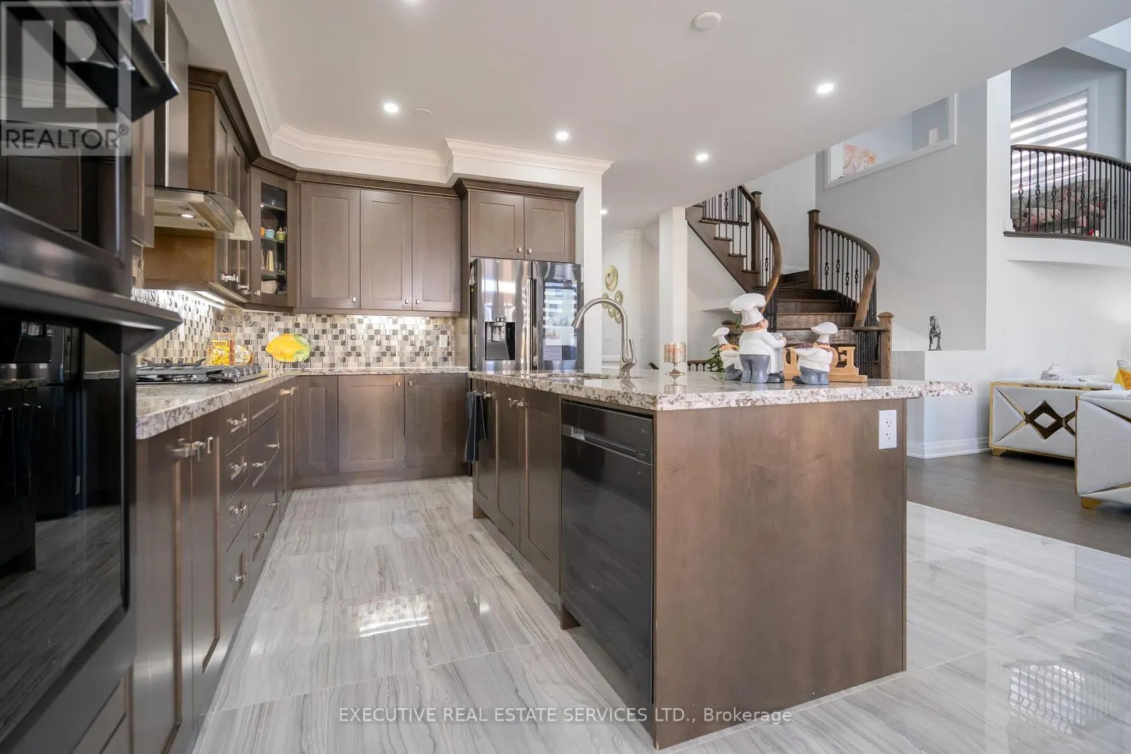 Barons St / Mactier Dr This stunning 3683 SqFt above ground home is the perfect blend of luxury and functionality, designed with impeccable attention to detail. Offering 5 spacious bedrooms and 5 bathrooms, it includes a convenient in-law suite on the main floor with a full washroom. The grand family room boasts a striking 19ft ceiling, complemented by a $30K upgrade on a custom chandelier and fireplace wall. Over $250K has been spent on top-to-bottom upgrades throughout the home, including premium taps, showers, bathtubs, sinks, and custom closets in two bedrooms, with his-and-her closets in the primary bedroom.Step into the beautifully landscaped backyard, featuring exposed aggregate concrete, ideal for outdoor entertaining. Inside, the home offers stylish metal pickets on the staircase, ceramic tiles, and 5" engineered flooring throughout. The kitchen is a chef's dream, with an upgraded backsplash, tall cabinets with crown moulding, high-end Samsung appliances, and an under-mount sink. Every bedroom showcases 84" Carrara model doors for an added touch of elegance.Situated in a welcoming neighbourhood close to all essential amenities, this home is not just a place to live but a lifestyle upgrade. Come and see the perfect home for your family! **EXTRAS** Move And Enjoy Luxurious Living! Close to Schools, Parks, Golf, Entertainment, and Walking Trails. Minutes away from Shopping Centre,Highway 427 and Airport. Enjoy Our Full Video Tour. (id:27476)