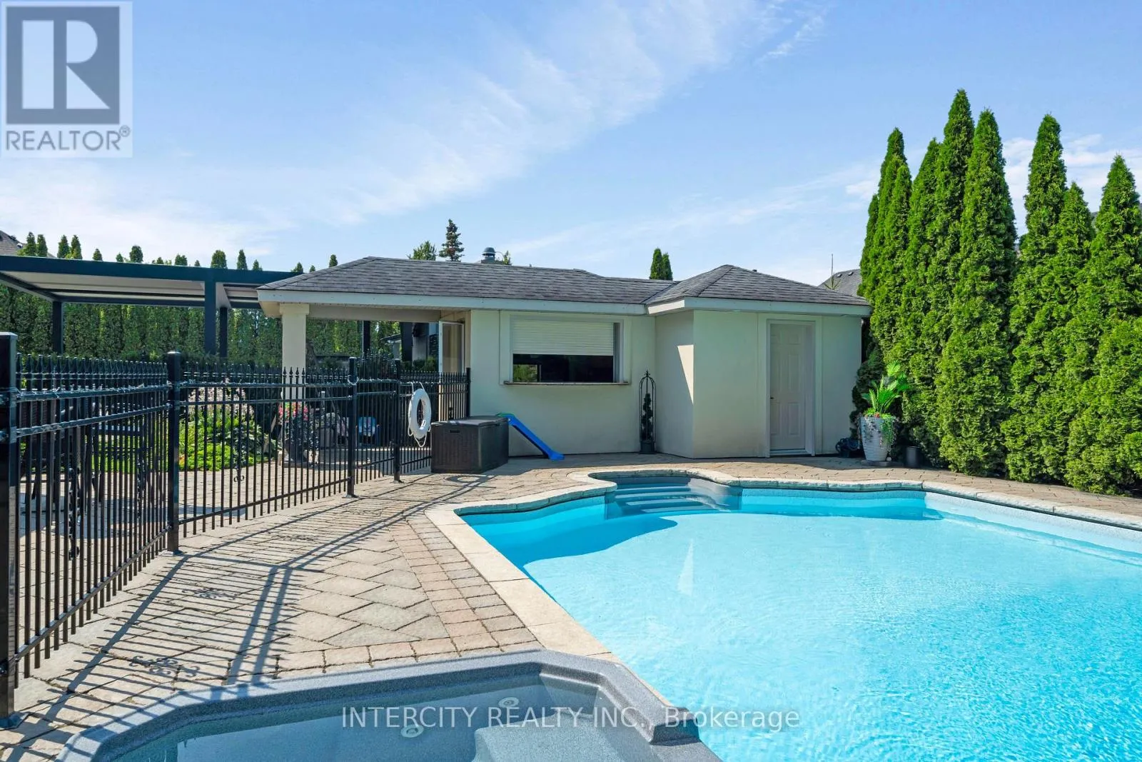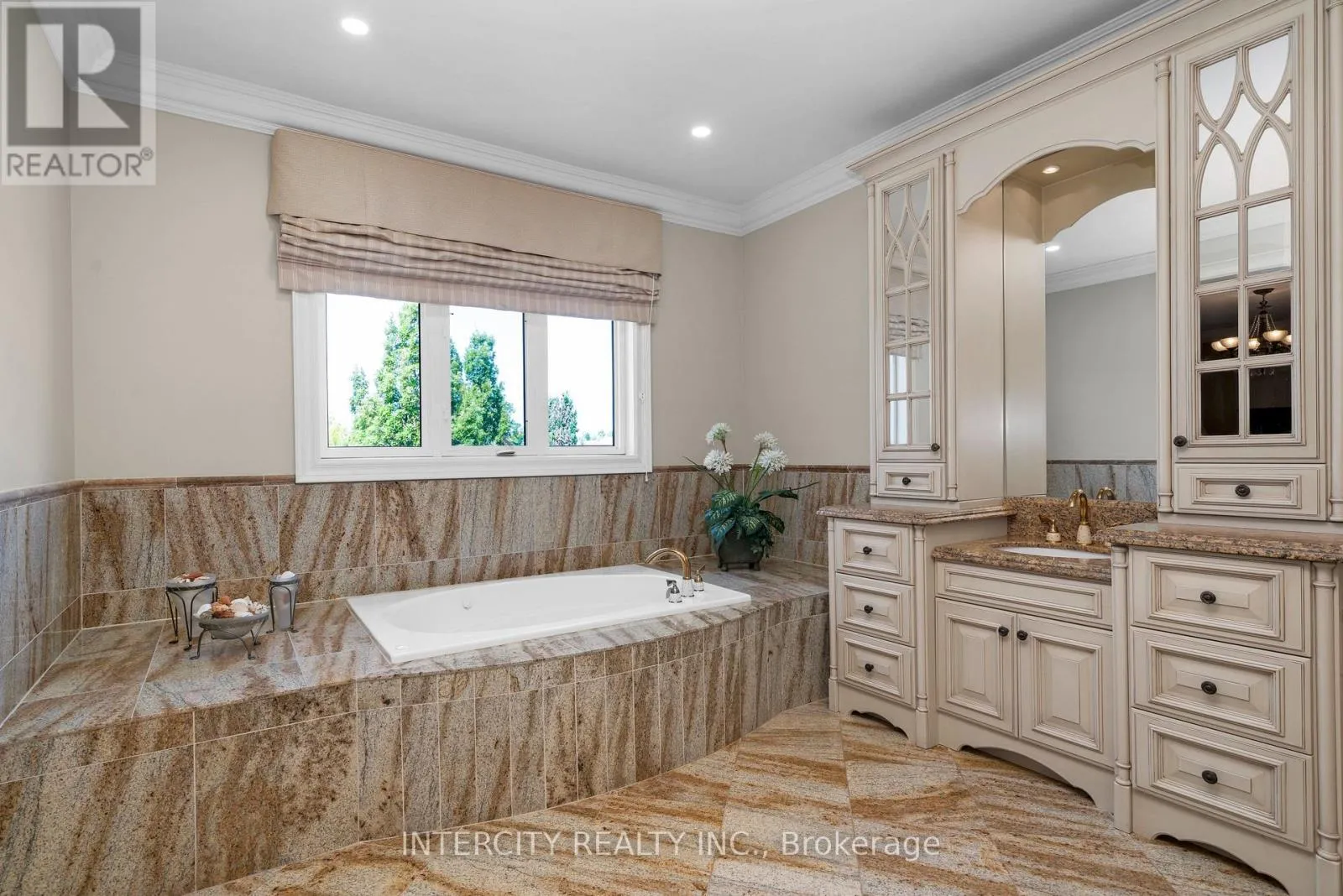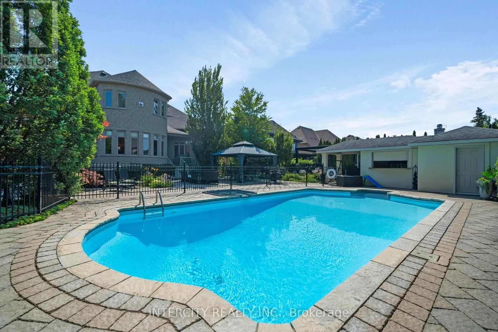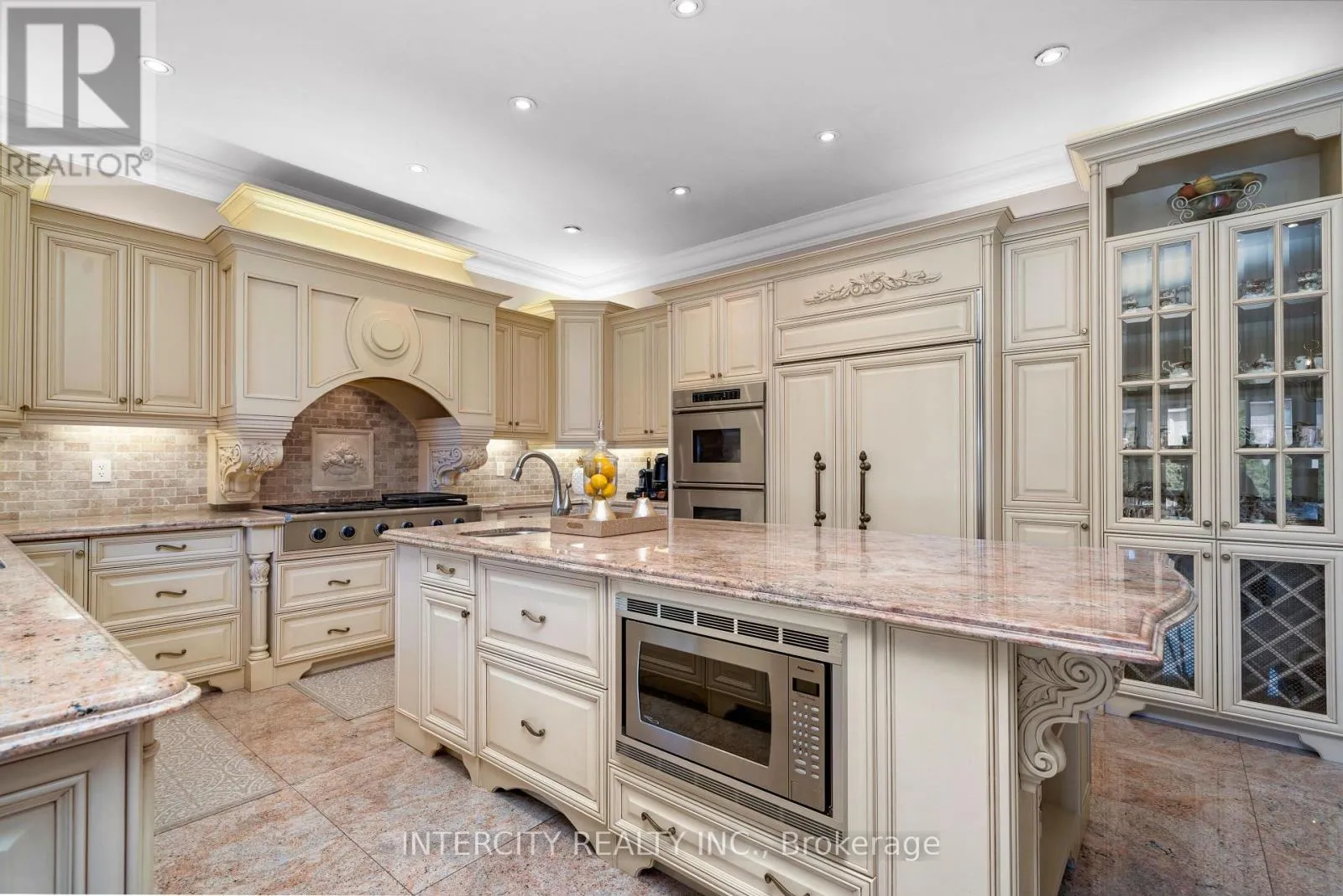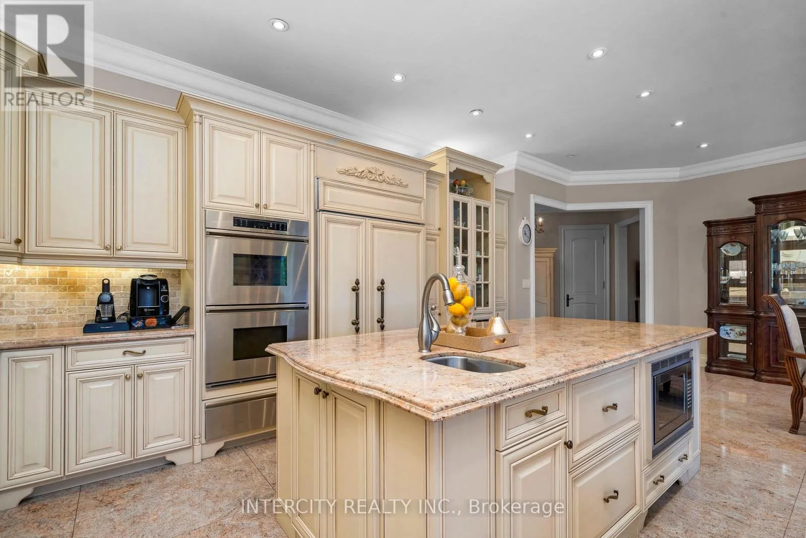 Islington & Major Mackenzie Spectacular custom built 4,163 Sq. Ft. home in a prestigious area of Kleinburg surrounded by executive homes in a family friendly neighborhood. High end finishes throughout. Stone & Wood floors. Walk into grand 19' ceilings in open concept entry and living room. Family room also has vaulted 19' ceilings, 10' ft in basement . Which has plenty of storage and a walk up to a backyard oasis. Property is fully fenced. In ground saltwater pool with newer liner and heater, secured by a wrought iron fence. Cabana with a 3 piece bath and a kitchenette with with sink, cabinets & counter. Plenty of space for lounging in your own resort like setting. Newer Roof. Stone driveway with parking for 8 cars and a 4 car garage - 3 tandem & 1 lift. Solid wood kitchen cabinets with huge island with extra sink, 2 Subzero Pull Out Fridge Drawers & Built-In Island. Crown Moulding throughout. Laundry room has door to garage & stairs to basement plus a bonus 3 piece bathroom. No Expense Spared!! Professionally landscaped and maintained. (id:27476)
