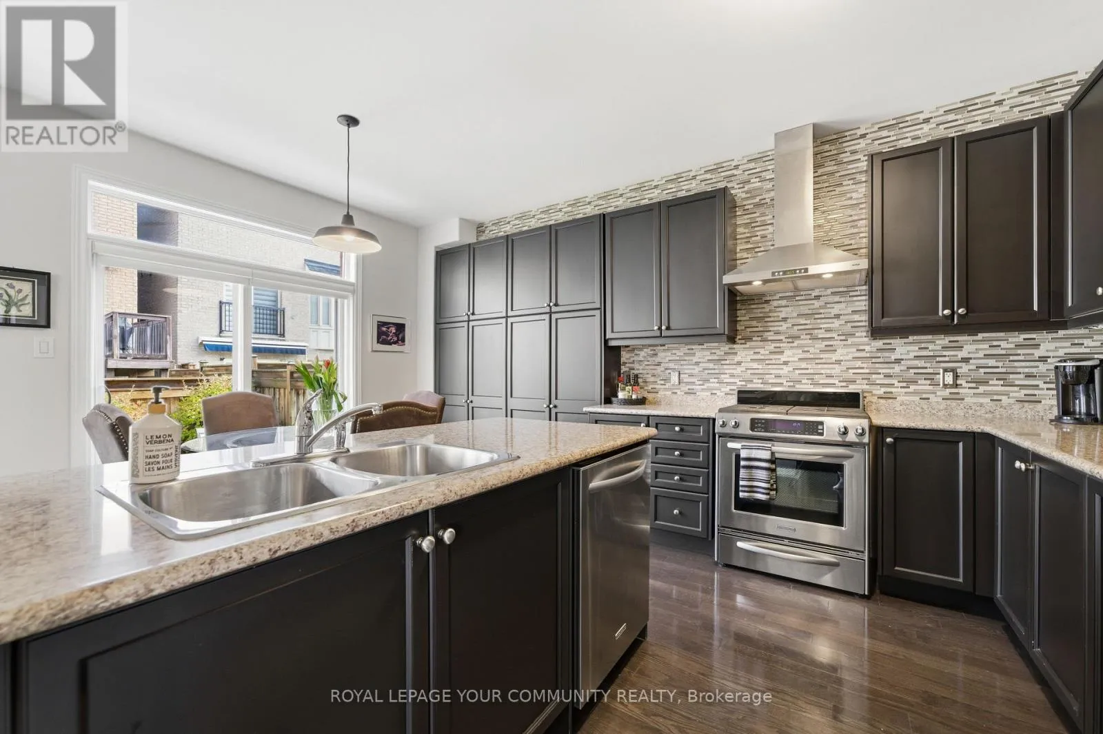 Cross Streets: Rutherford/Pleasant Ridge. ** Directions: Rutherford to Pleasant Ridge South to Mintwood to Mary Ellen Baker. Your Search Ends Here! Don't miss this rare opportunity to own a beautiful 3-bedroom end-unit link home on a quiet crescent in sought-after Thornhill Woods! Featuring a 2-car garage and a driveway for 4 vehicles, this sun-filled home offers 9-ft ceilings, rounded corners, and dark-stained hardwood floors throughout the main level. The combination living and dining room boasts a charming bay window, while the modern kitchen includes stainless steel appliances, a pantry, and a bright eat-in area with a walkout to the extended patio and landscaped, fully fenced backyard - perfect for entertaining! Upstairs, relax in the cozy family room with gas fireplace and French doors leading to a walk-out balcony. The spacious primary suite features large windows, a walk-in closet, and a 4-piece ensuite with jacuzzi tub and large glass shower. There are two additional bedrooms, a 4-piece bathroom with private toilet and tub, an upstairs laundry room with stainless steel front loading washer and dryer, and a large linen closet that completes the upper level. The unfinished lower level includes a cold cellar and rough-in plumbing- ready for your personal touch. Ideally located near top-rated schools, parks, Community Centre, shops, public transit, GO Station, and Hwy 407. Move-in ready and waiting for you - this one won't last! (id:27476)