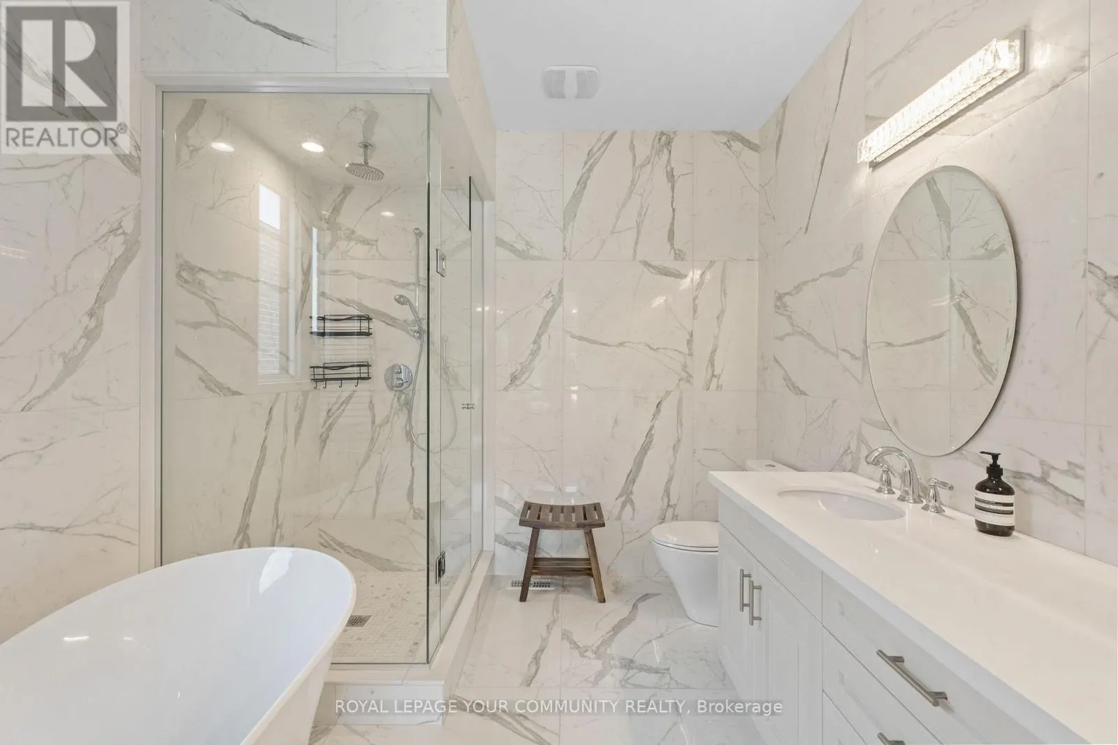 Dufferin St & Rutherford Rd Nestled in the heart of Vaughan's prestigious Patterson community, this exceptional end-unit townhome offers a harmonious blend of luxury and functionality. Spanning three meticulously designed levels, the residence features three generously sized bedrooms, including a primary suite with a walk-in closet and a spa-inspired 5-piece ensuite adorned with heated porcelain flooring. The open-concept main floor is a testament to sophisticated design, boasting upgraded 31" x 31"Marmi Statuario porcelain tiles and soaring 10-foot ceilings that amplify the home's airy ambiance. The chef-inspired kitchen is equipped with top-tier Jenn Air stainless steel appliances and complemented by sleek quartz countertops, making it a culinary enthusiast's dream. Pot lights and coffered ceilings in the dining and family rooms add a touch of refinement, while expansive windows flood the space with natural light. Designed with convenience in mind, an elevator seamlessly connects all three levels, offering accessibility for all stages of life. As an end unit, the home benefits from reduced noise levels, ensuring a peaceful living environment. Located just minutes from Highway 407 & Rutherford GO Station, this meticulously crafted townhome is a must-see for those seeking luxury and elegance in Vaughan. (id:27476)