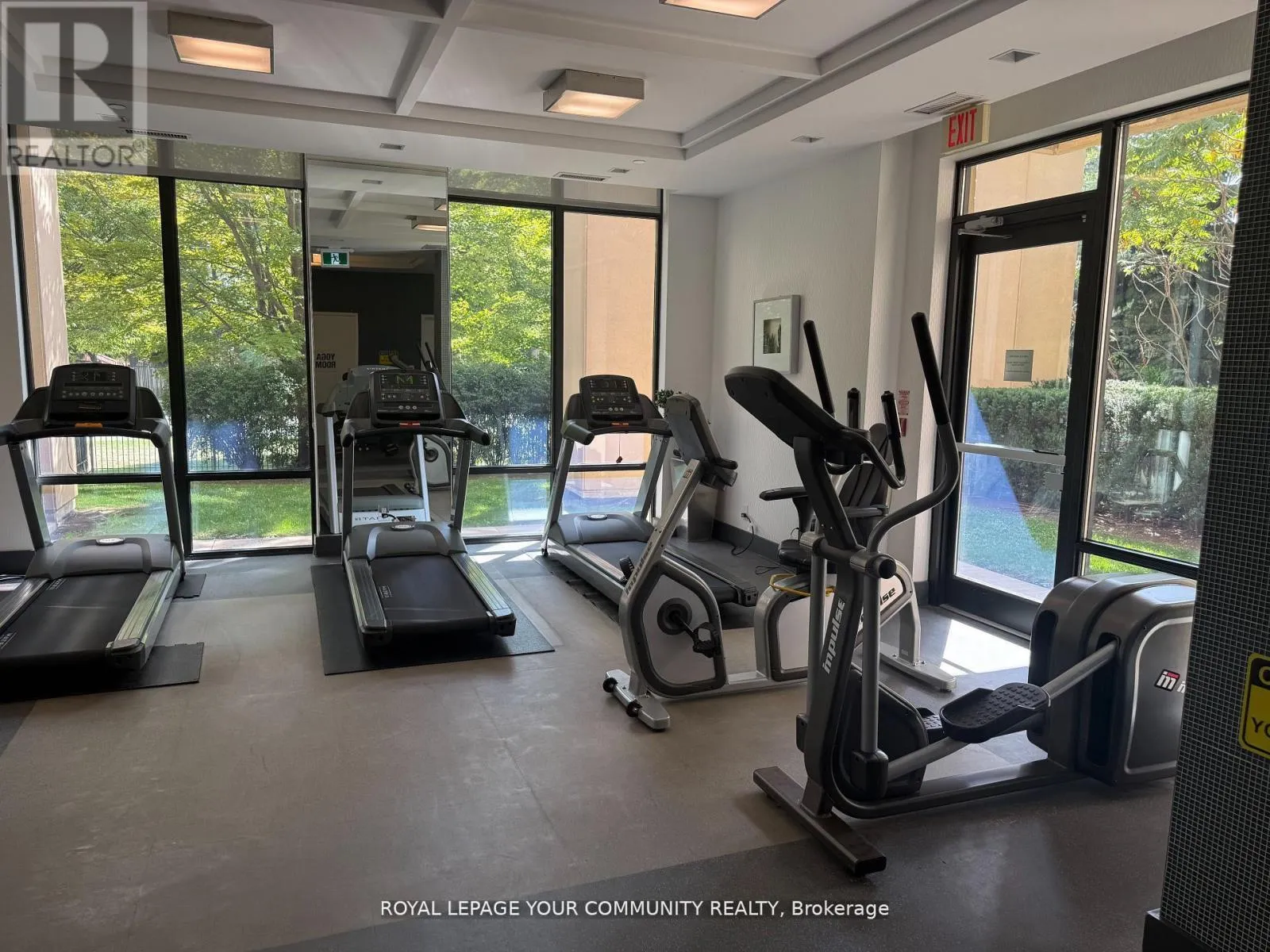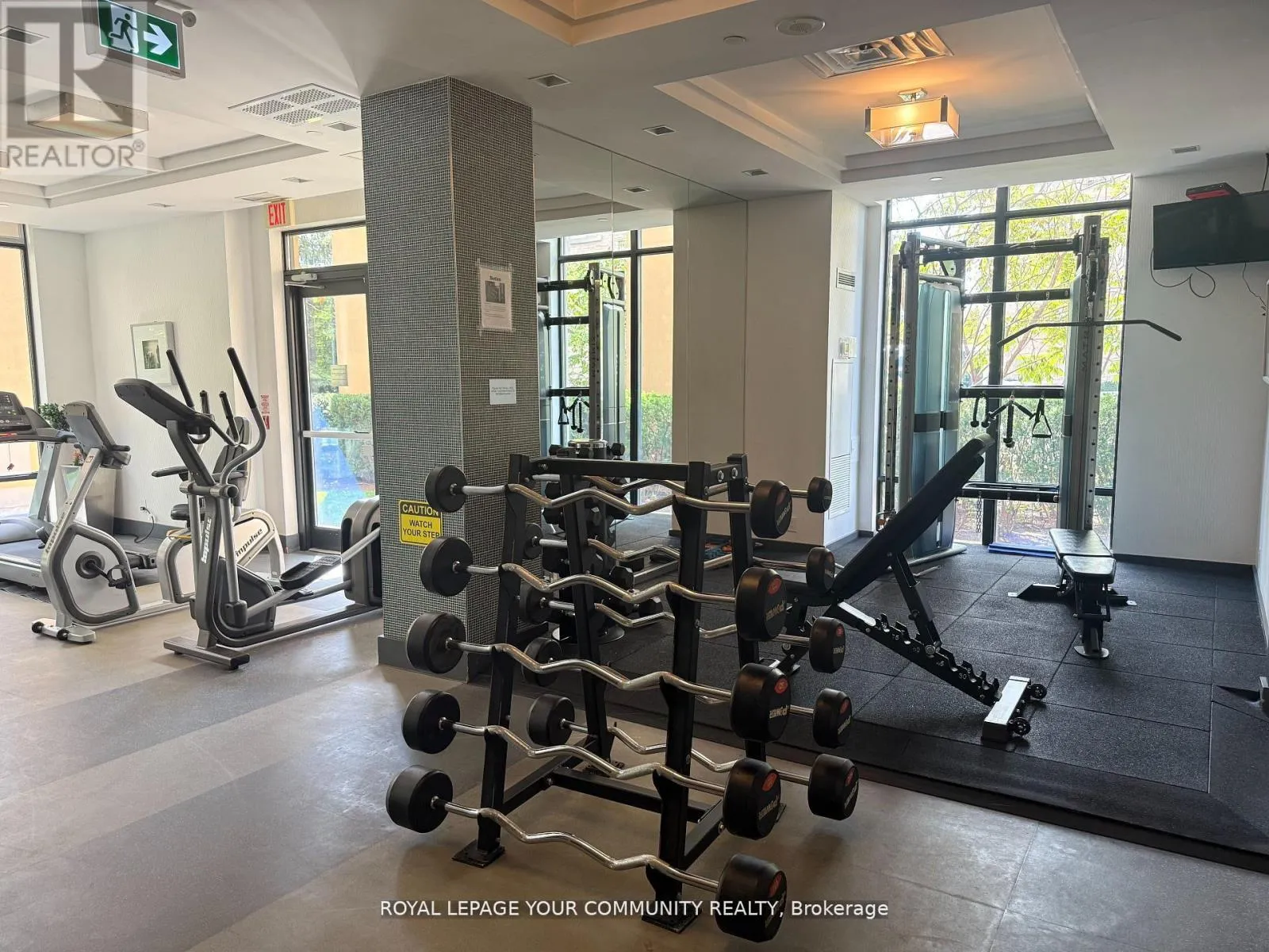 Bathurst/Steeles Stylish 1 + den condo with 2 full baths, thoughtfully designed open concept,9' ceiling, south facing with natural light and walk-out to large "108 SqFt Terrace with a drain" to enjoy when the weather allows. "Upgraded engineered hardwood floor throughout" by the builder. Located steps from TTC, top-rated schools, Promenade Mall, Center Point Mall & other amenities. This home offers comfort with exceptional convenience, maintenance fee includes water,heat. Includes premium amenities such as fully equipped gym, party rm, 24hr security on the weekends, billiard rm, TV room, library & guest room. Unit is tastefully painted (modern) with modern light fixtures. Extra large,private locker & very convenient parking spot in P1, close to the elevator. The unit offers style, comfort & convenience. (id:27476)