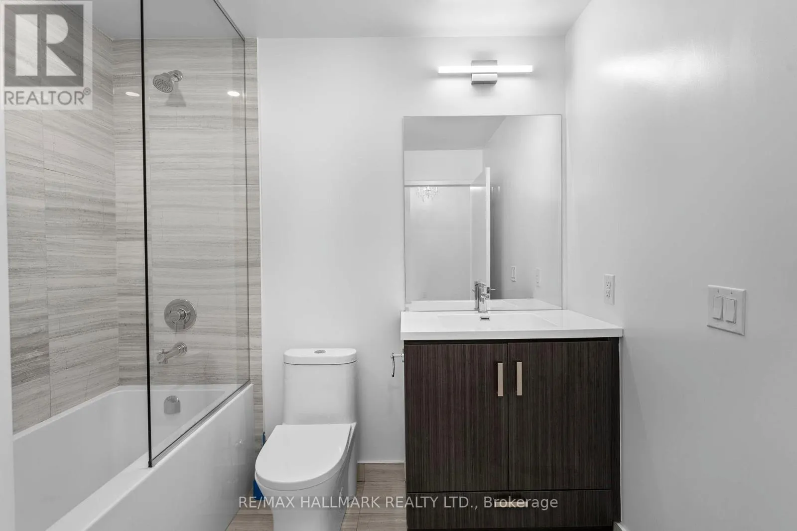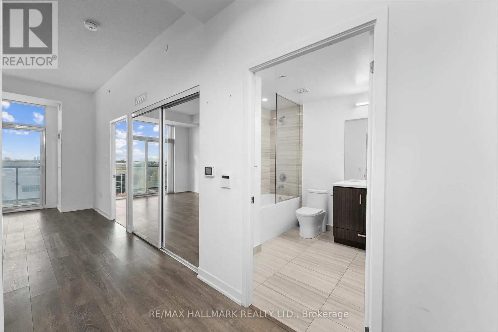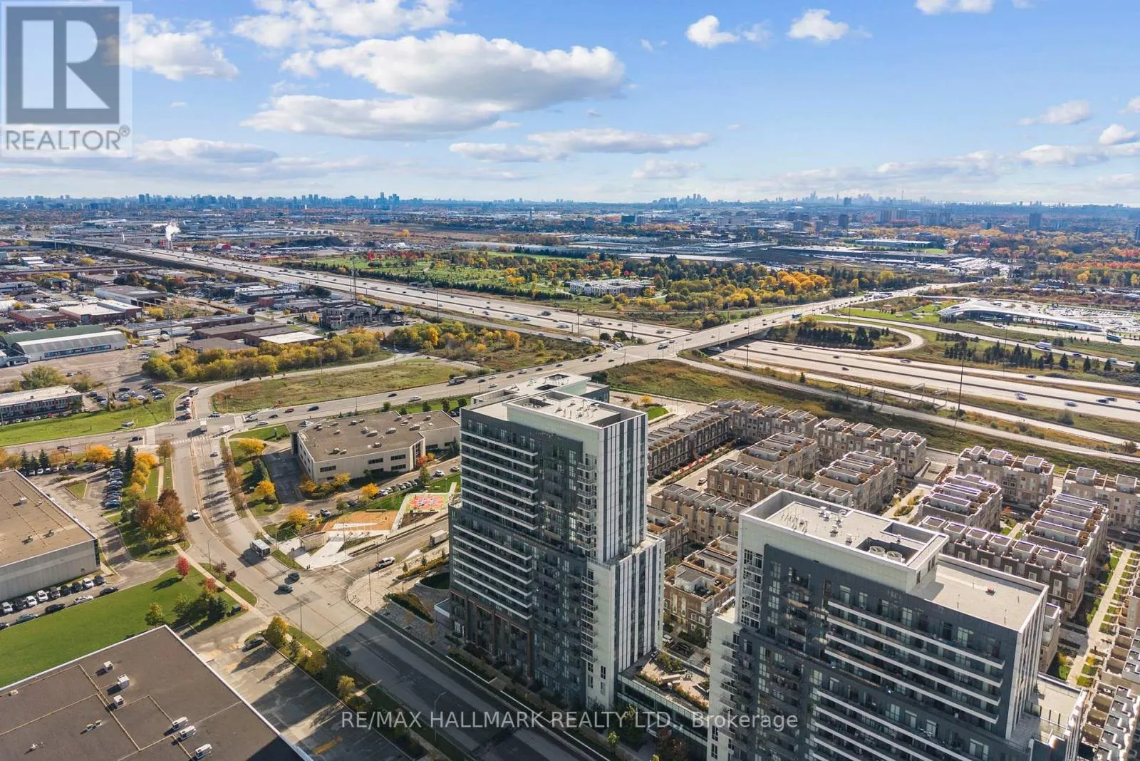Jane and Hwy 7 Experience modern city living at 60 Honeycrisp Crescent in Vaughan's Metropolitan Centre. This contemporary 1-bedroom plus den suite in the Mobilio South Tower offers open-concept living with 10-ft ceilings and sleek laminate flooring. The stylish kitchen features stainless steel built-in appliances, a paneled fridge and dishwasher, quartz counters, and ample storage. The versatile den is perfect for a home office, while the bright bedroom offers a large closet and floor-to-ceiling windows. Enjoy unobstructed east-facing views from the private balcony and the convenience of in-suite laundry. Residents have access to premium amenities including a fitness centre, theatre room, party lounge, guest suites, and BBQ terrace. Just steps to the Vaughan Metropolitan Centre subway, Viva, YRT, and GO Transit, with easy access to York University, Vaughan Mills, IKEA, and major highways. A perfect blend of style, comfort, and convenience. (id:27476)