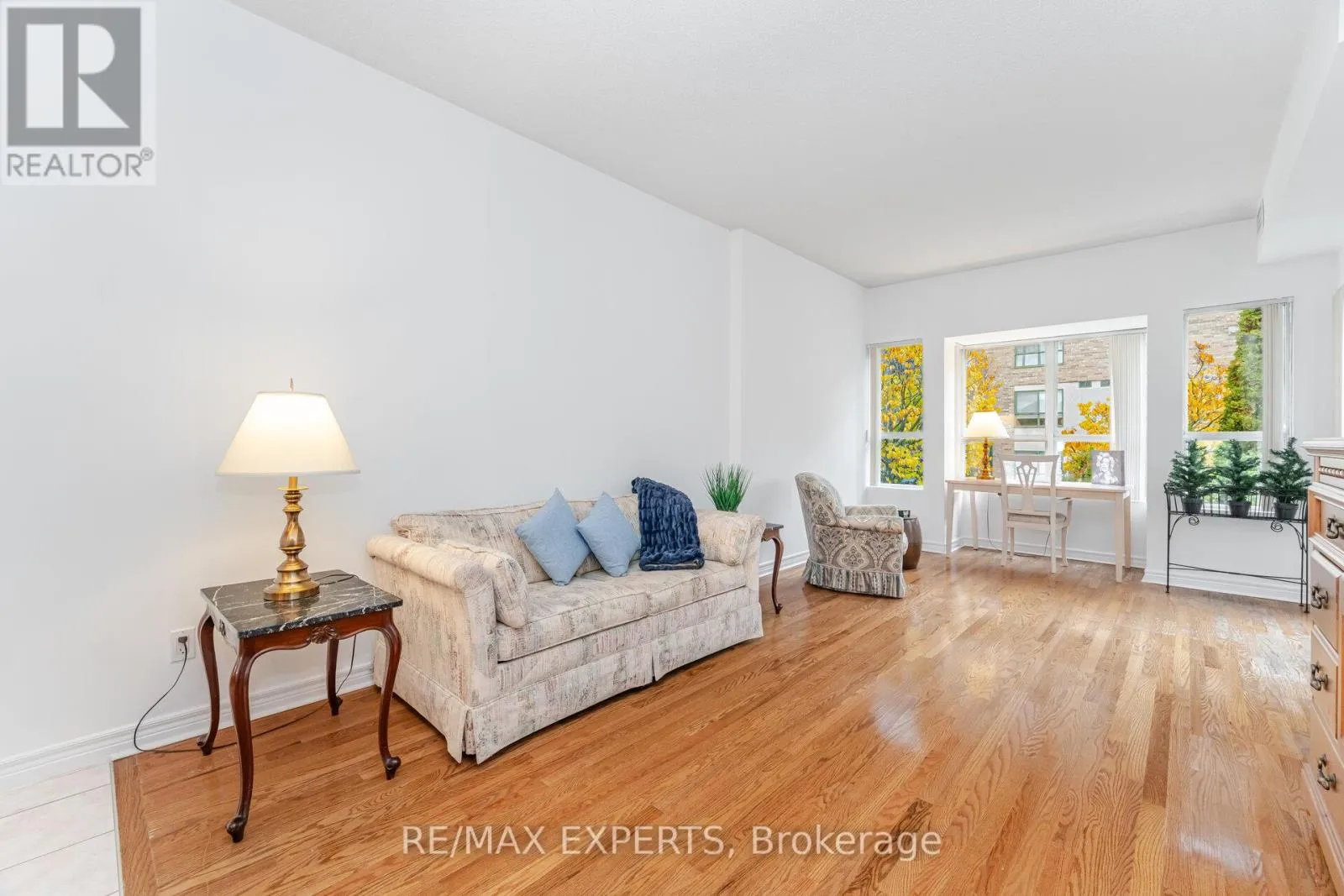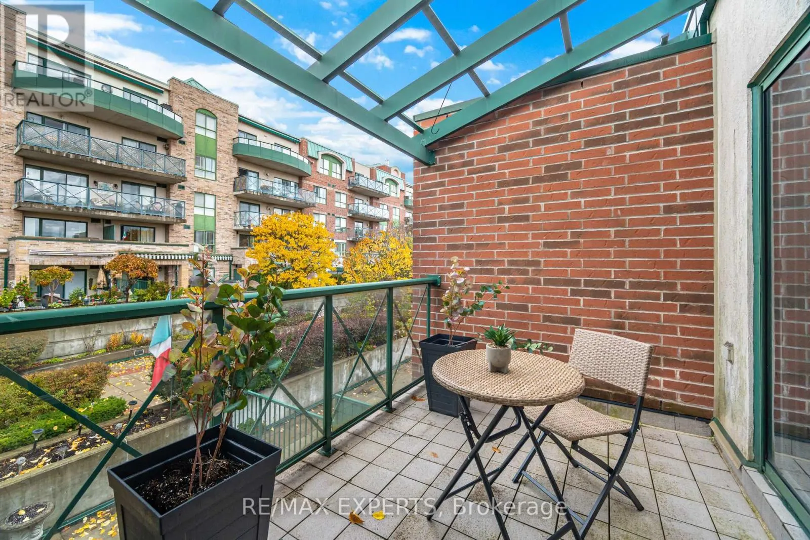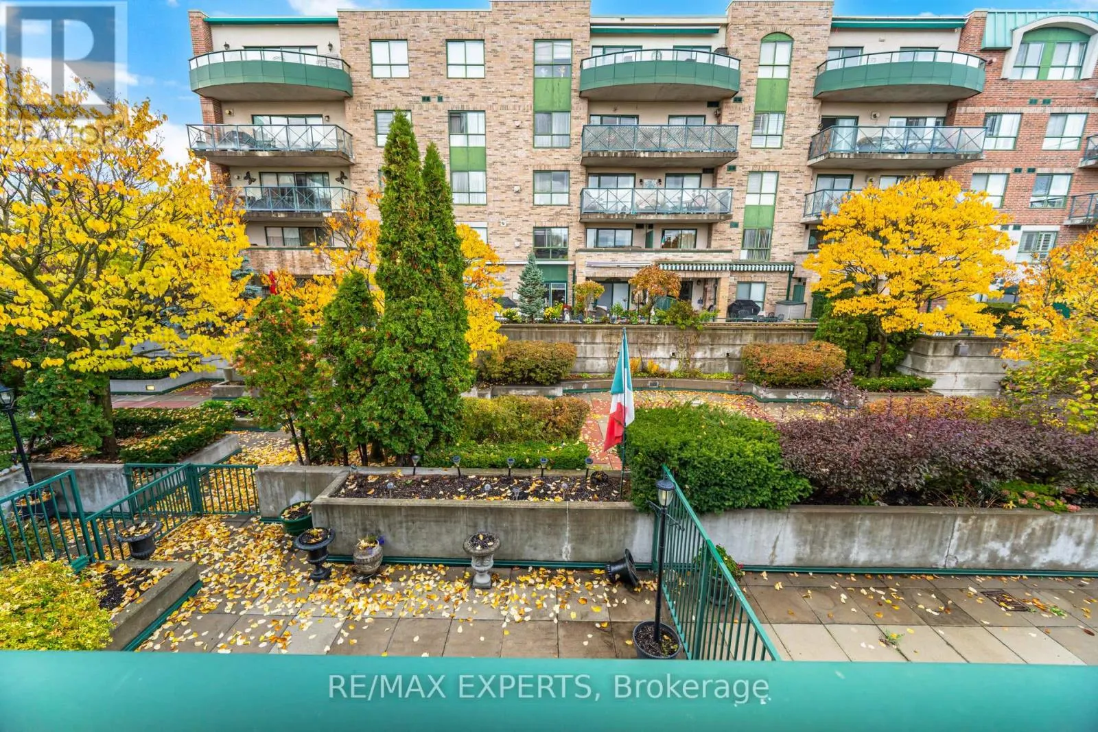 Woodbridge Ave Islington Ave The terraces at Market Lane, Woodbridge penthouse unit. 1 Bedroom plus den 2 washrooms 925 sq dt condo with 9 foot ceiling and hardwood floors walking out to a small terrace overlooking court yard. This amazing well laid out condominium has a kitchen with never ending counter space with a walk-in pantry to satisfy your inner chef! Entertain your most famous friends and family in your dinning room. Open concept living room and den with a private reading area with wall to wall windows enjoy the view. Walkout to terrace and BBQ (yes BBQ permitted) all while enjoying the courtyard. If you are downsizing or want extra bedroom space this primary bedroom can fit a king sized bed. One of Market Lane's original buildings whose space is tough to bear atr these reasonable prices. Unit includes parking and locker. This cant be missed. (id:27476)