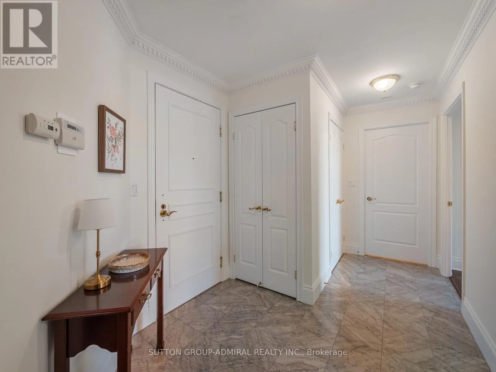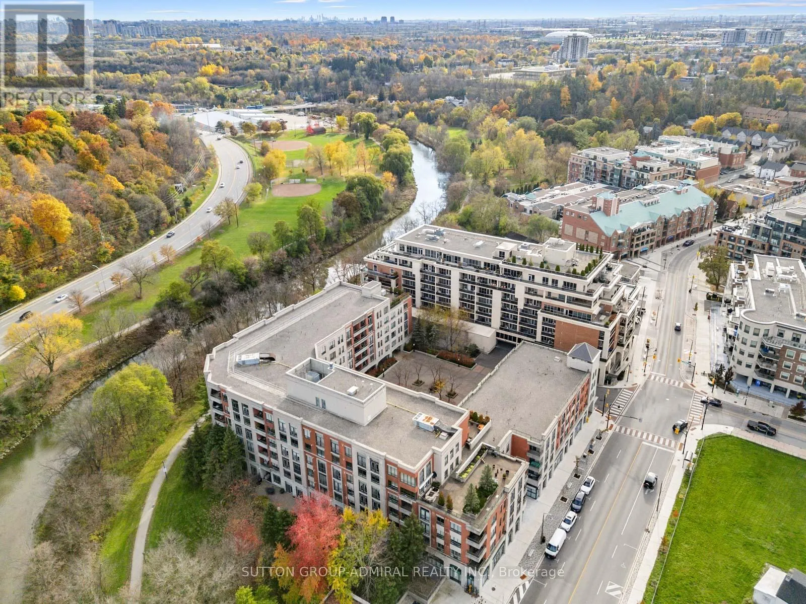 Cross Streets: Islington Ave & Woodbridge Ave. ** Directions: North on Islington Ave, past Hwy 7 and West on Woodbridge Avenue. Welcome to 53 Woodbridge Avenue, an elegant and highly sought-after address in the heart of Old West Woodbridge, just steps from the vibrant Market Lane Village. Market Lane and West Woodbridge offer one of Vaughan's most desirable and charming lifestyles - a perfect balance of small-town warmth and modern convenience. Centered around the picturesque Market Lane Village, this vibrant community is known for its European-inspired atmosphere, where residents can stroll to boutique shops, gourmet restaurants, cafés, bakeries, and local markets just steps from home. The area is surrounded by beautiful parks, walking and biking trails along the Humber River, and a strong sense of community that appeals to families, professionals, and downsizers alike. With easy access to Highways 427, 407, and 400, as well as nearby transit routes, commuting across the GTA is effortless. This beautifully maintained 2-bedroom, 2-bathroom condo offers a rare combination of timeless charm, modern comfort, and an unbeatable location along the scenic Humber River.Enjoy peaceful living in a bright, spacious suite featuring hardwood flooring throughout the living, dining, den, and bedrooms, complemented by crown moulding. The sun-filled living and dining area opens onto a private balcony overlooking the river. The primary bedroom features a generous layout with a double walk in closet and a 5-piece ensuite, while the second bedroom includes a built-in Murphy bed with integrated shelving, along with a walk-in closet maximizing space and versatility - perfect for guests or a multi-purpose home office.This well-managed boutique building is known for its quiet atmosphere, strong community, and beautifully landscaped surroundings. Those who move here quickly discover that Market Lane isn't just a place to live - it's a lifestyle defined by charm, connection, and everyday convenience. (id:27476)