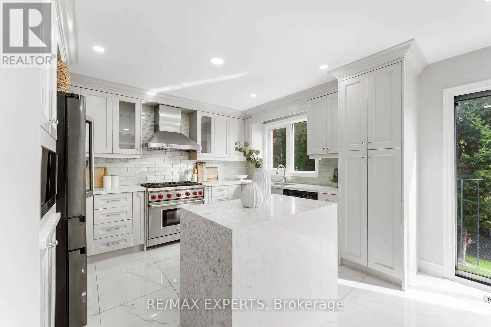 Jane St & Teston Rd RAVINE LOT | WALK-OUT BASEMENT Premium 60 FT Wide Lot | NO SIDEWALK (6 CAR PARKING ON DRIVEWAY) | 4,000 SQ FT FINISHED LIVING SPACE| 4+3 Bedroom Detached | 3 Kitchens & 5 Baths| Fully Renovated| Welcome to 147 Ashton Dr - a rare ravine-lot offers a peaceful retreat from city life, while living in the city. This isn't living "near nature"; it's living in it - backing directly onto city-protected nature - with total privacy and no rear neighbours. This Fully Renovated home features a bright, carpet-free, open-concept main floor with hardwood, 24x24 porcelain tiles, oversized breakfast area and large windows. The chef inspired kitchen offers Quartz counters, centre island, WOLF 6-burner gas stove, sleek appliances, backsplash, undermount sink facing ravine. Family room w/ gas fireplace & wainscoting. Upgraded mudroom. Spacious bedrooms; primary with walk-in & ensuite. Walk-out basement features 2 Separate-Entrance Units (3 beds, 2 baths) ideal for extended family or potential income (current owners were getting $3,300/mo). Now VACANT, & move-in ready. (id:27476)