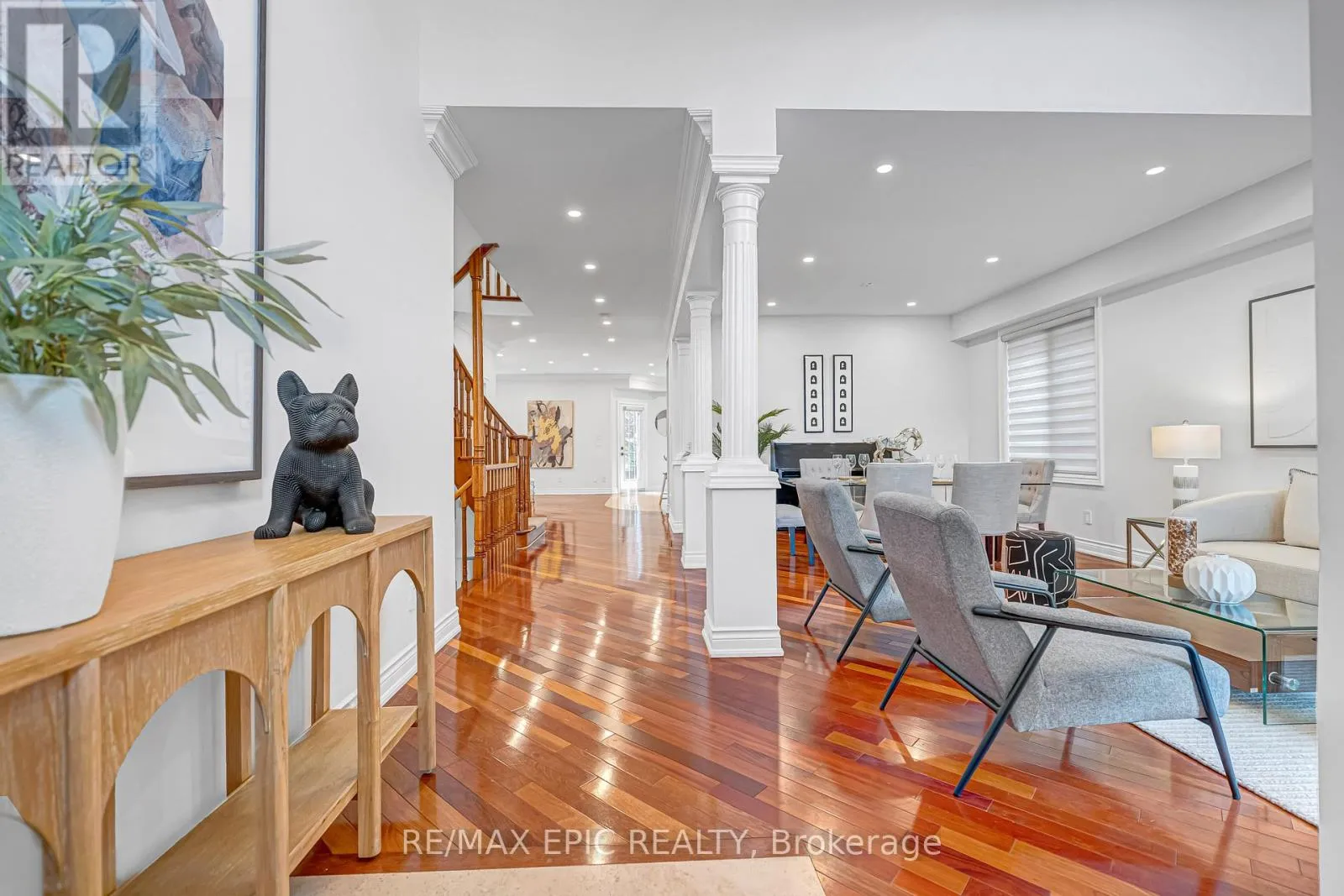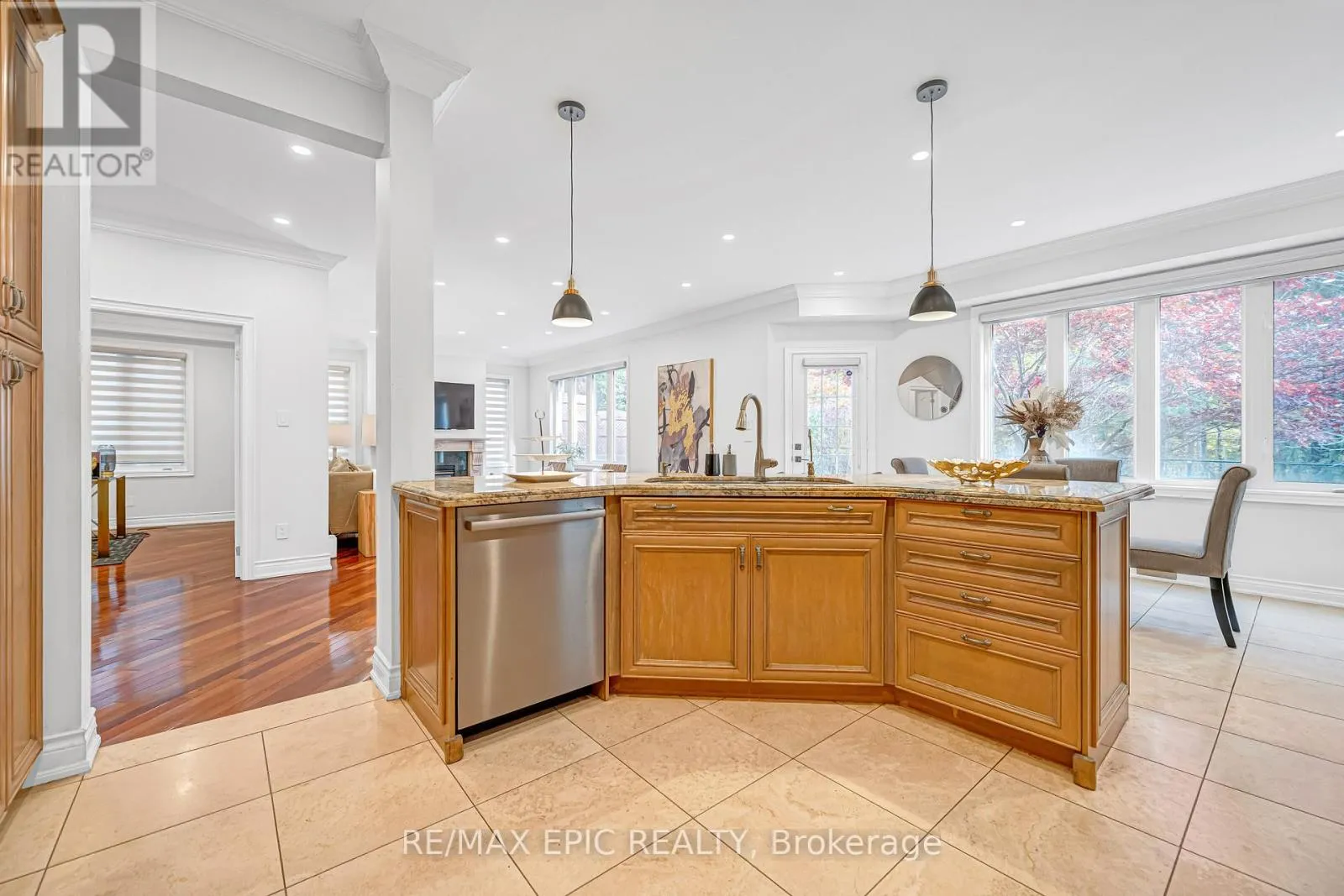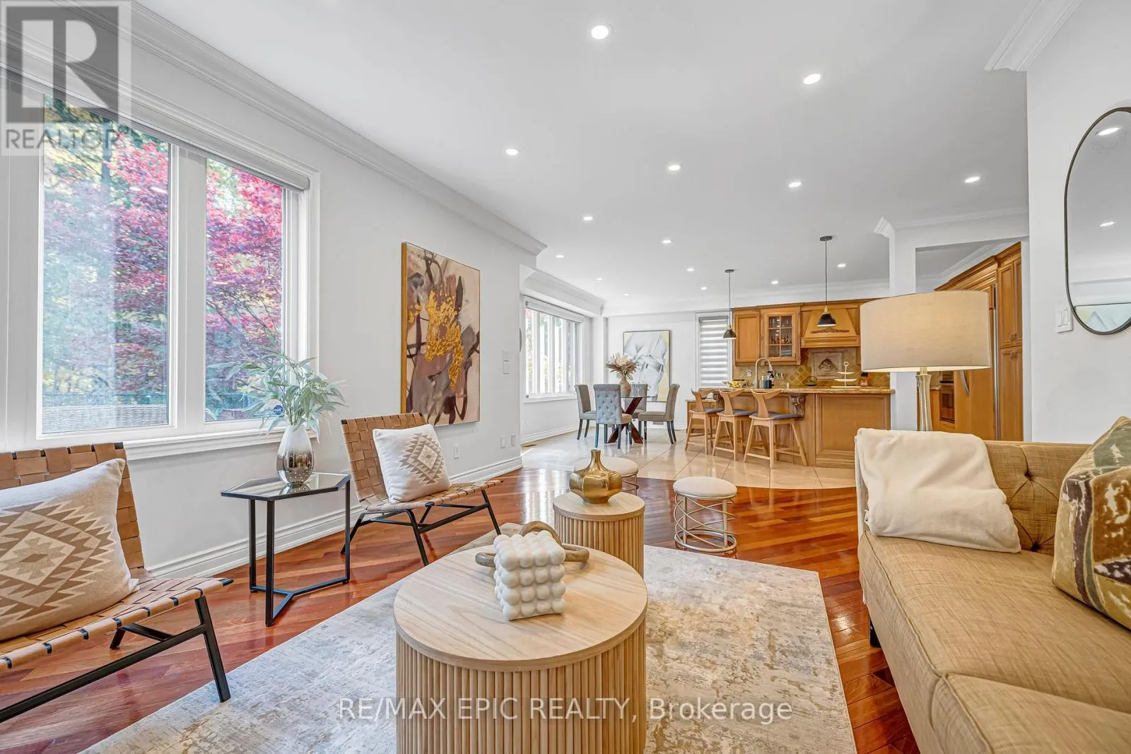 Cross Streets: Thornhill Woods Dr & Summeridge Dr. ** Directions: East. Stunning Ravine Lot Luxury Home in Prestigious Thornhill Woods! Approx. 3,230 sq.ft. above grade + 1,396 sq.ft. finished bsmt. Fully renovated with high-end finishes throughout. Grand foyer w/18' ceilings, Brazilian hardwood floors, pot lights, upgraded trim & Newer fiberglass double doors (2025). Chef's kitchen w/Sub-Zero paneled fridge, 48" KitchenAid gas stove, built-in oven/microwave, stone backsplash, oversized island & breakfast area w/walkout to deck overlooking private ravine. Main floor office, mudroom w/garage access & laundry. Primary bedroom retreat w/ravine views, his & hers W/I closets & 6-pc spa ensuite. Finished bsmt w/rec rm & 3-pc bath. Updates: Newer HVAC (2024, 10-yr warranty), Newer garage door & dishwasher (2025), auto drapes. Interlocked driveway. Steps to top schools, parks, transit, community centre, Sugarbush Trail & off-leash dog park.Awning-covered large deck overlooking a beautiful ravine - a true backyard oasis, perfect for a relaxing getaway! (id:27476)