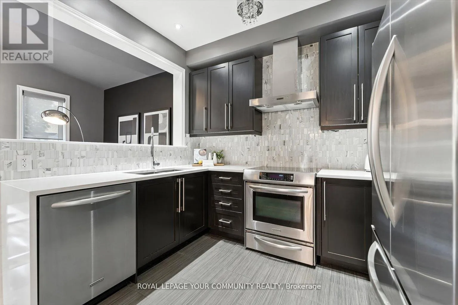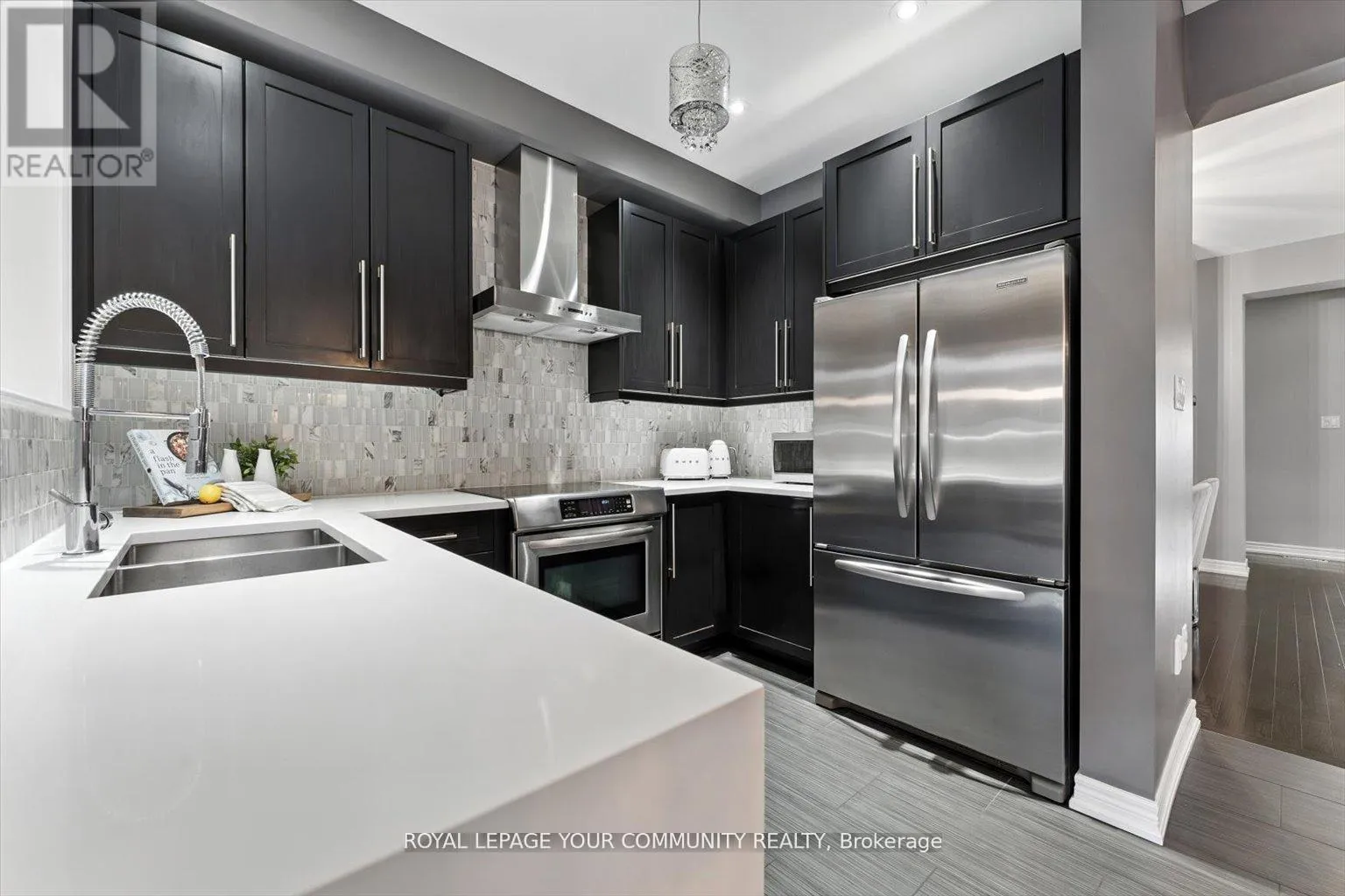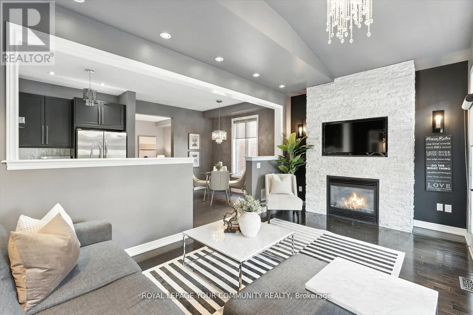 Weston/Major Mackenzie Welcome to this stunning executive home, showcasing luxurious upgrades and contemporary finishes throughout. Featuring soaring 9 ft ceilings and an open-concept design, this residence is enhanced by rich dark-stained hardwood flooring, elegant pot lights, and a striking fireplace with a custom floor-to-ceiling quartz surround. The chef-inspired kitchen boasts quartz countertops with a dramatic waterfall edge, a Calacatta marble and glass mosaic backsplash, under-cabinet lighting, premium maple cabinetry, and stainless-steel appliances. Step outside to professionally landscaped front and rear yards, complete with a stone patio perfect for entertaining or relaxing in style. (id:27476)