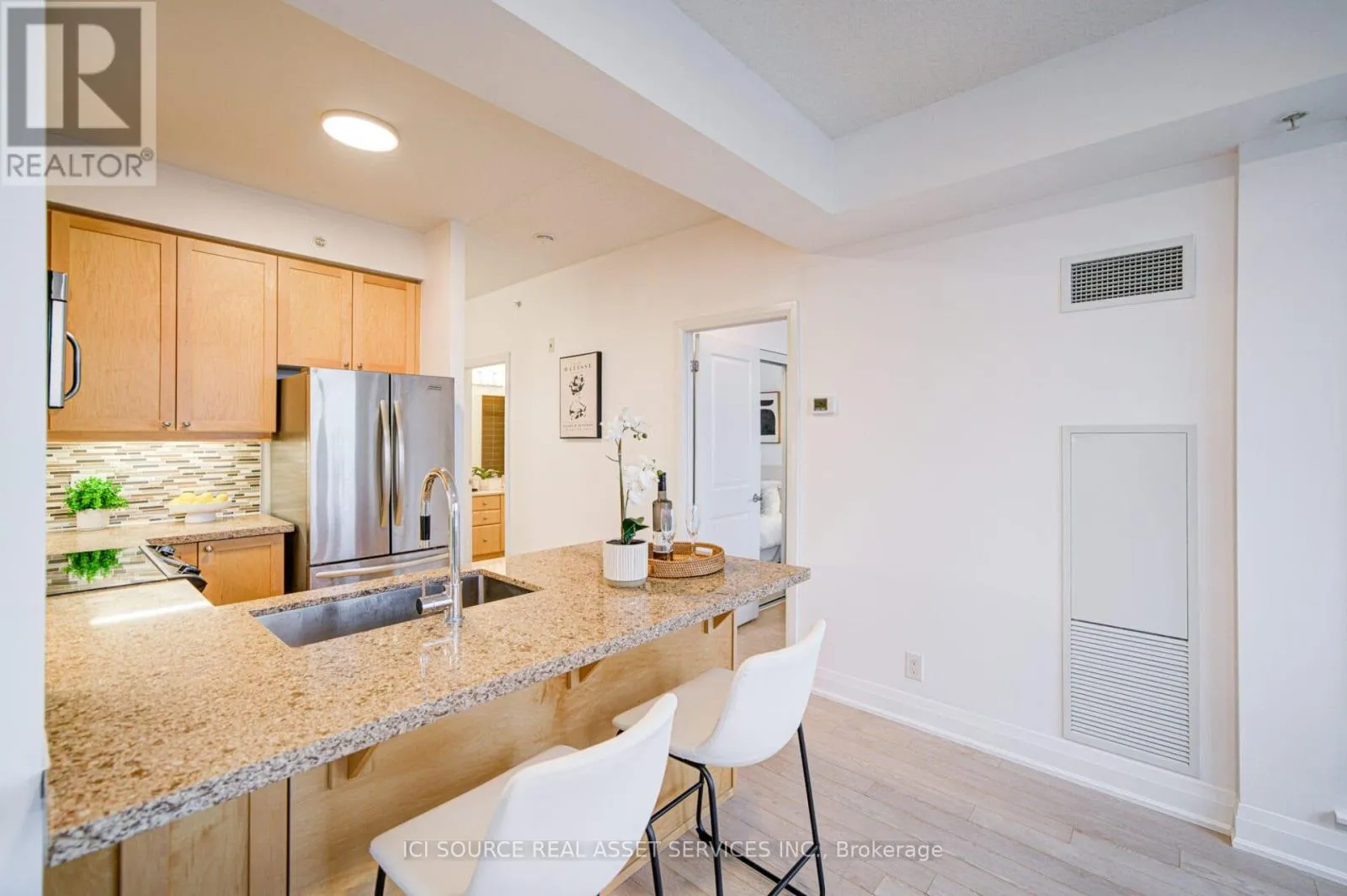 Cross Streets: Hwy 7 & Martin Grove. ** Directions: Access Wood stream Blvd and enter the driveway on the west side into the condo complex, which is directly across from the Tim Horton's plaza. Welcome to your new home - a spacious and beautifully maintained 1-bedroom, 1-bathroom condo offering comfort, functionality, and modern living. Located in a desirable low-rise building, this unit provides a peaceful, community feel while offering all the conveniences of condo living. The open-concept layout is thoughtfully designed to maximize space and natural light, creating a warm and inviting atmosphere perfect for individuals or couples. Enjoy a generous north-facing balcony with clear, unobstructed views of greenery - the ideal place to relax with your morning coffee or unwind at sunset. Inside, you'll find upgraded stainless steel appliances, a wide single-bowl sink, 9-foot ceilings, ensuite laundry, and fresh paint throughout. The building offers exceptional amenities, including two fitness centres, a sauna, movie theatre, billiards room, party room, BBQ terrace, and 24/7 security. A conveniently located owned underground parking space is included for your peace of mind. Perfect for first-time buyers, professionals, investors, or downsizers, this quiet, family- and pet-friendly building is ideally situated near parks, schools, grocery stores, restaurants, and major highways, offering the best of both comfort and convenience.*For Additional Property Details Click The Brochure Icon Below* (id:27476)