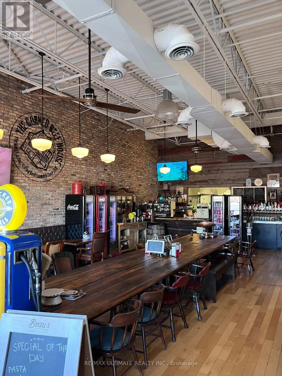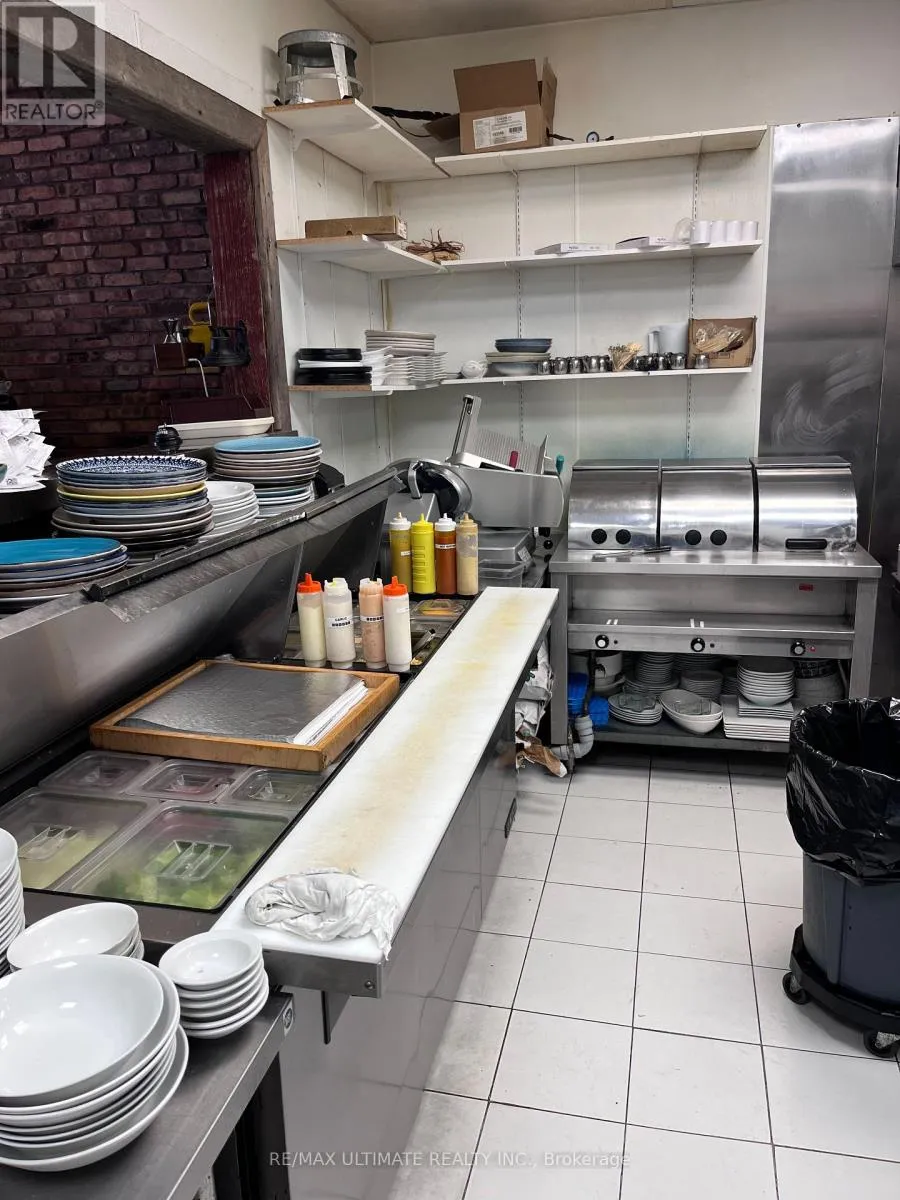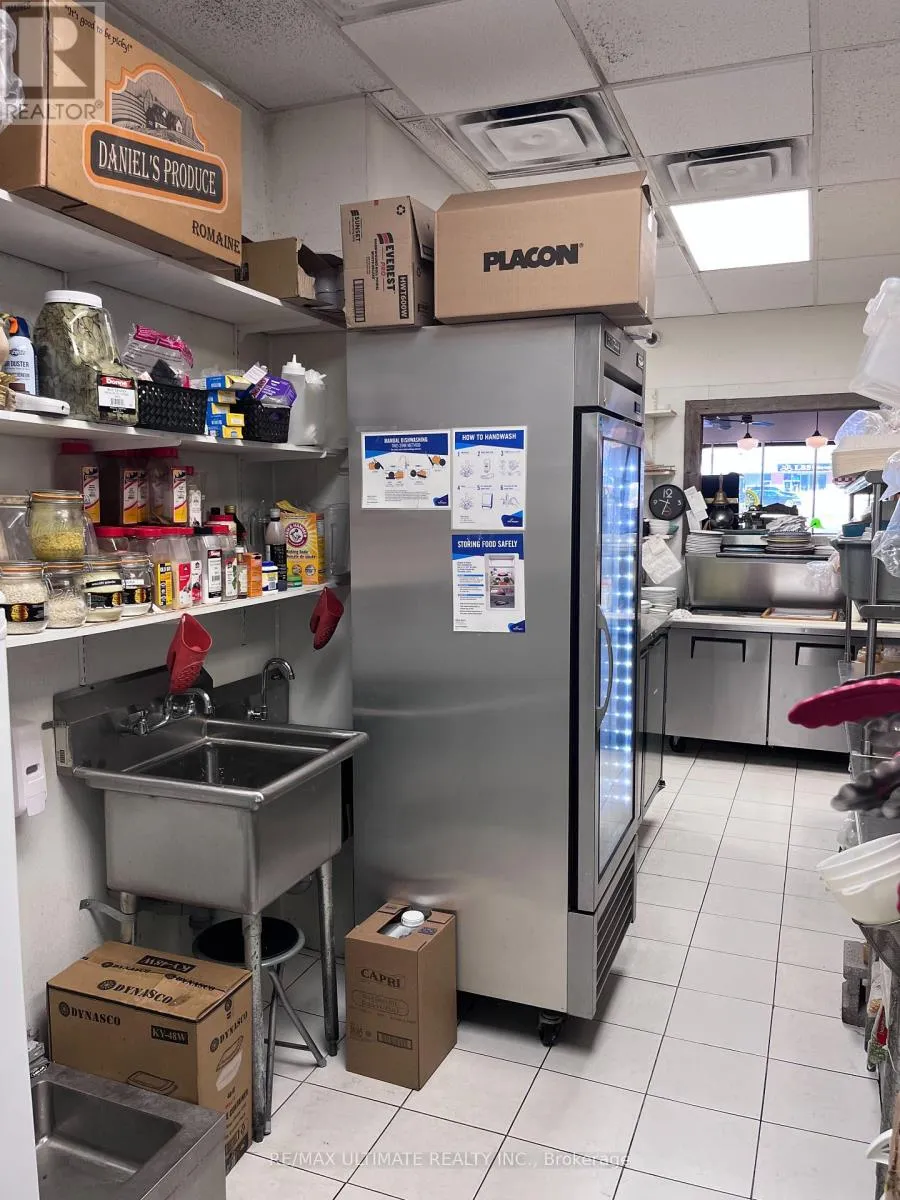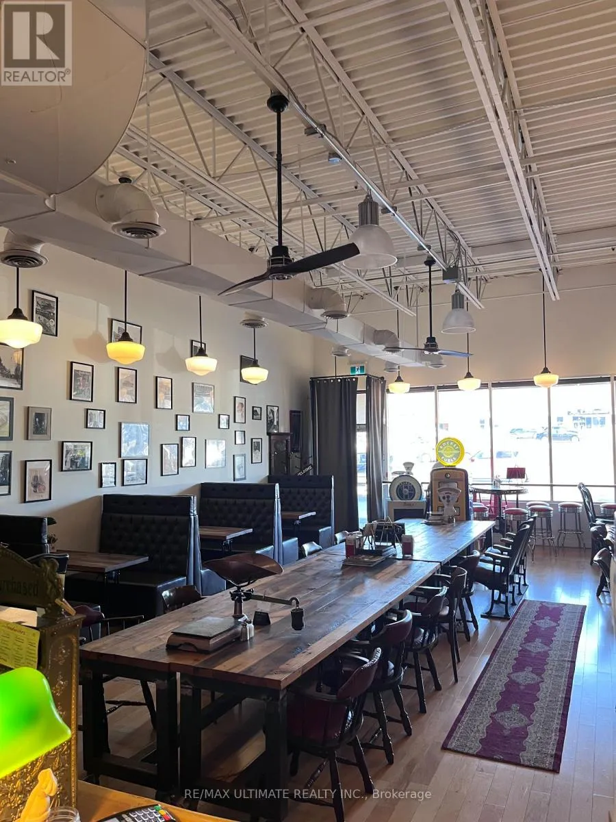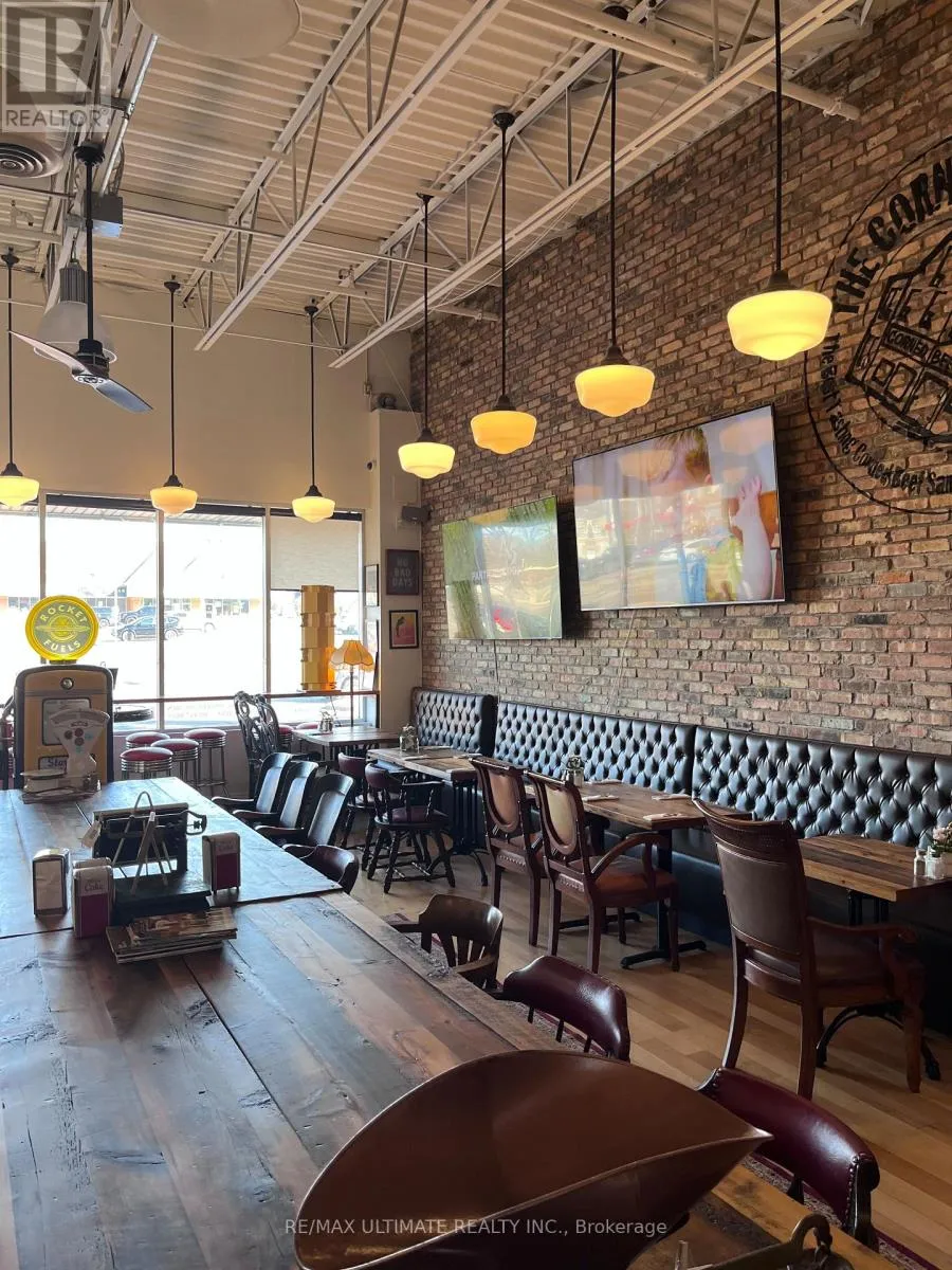 Dufferin St & Langstaff Rd Amazing turn-key restaurant in very busy Thornhill plaza! Unique decor and beautiful high ceilings make the dining room feel great! It has a full commercial kitchen with an 8ft hood, and is licensed for 55 guests. You can continue running it as is or convert it easily into any concept. **EXTRAS** Tot rent is $5,890 incl TMI & HST. Current lease expires in summer of 2028, with a 5-year renewal option available. (id:27476)