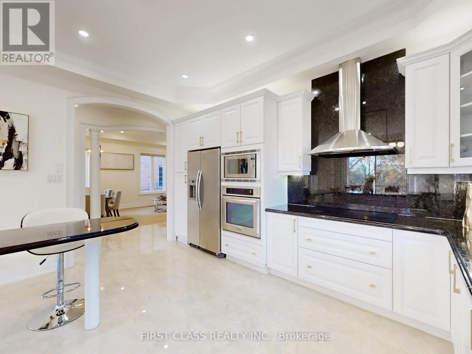 Cross Streets: Bathurst and Major mac. ** Directions: maps. Premium Pie-Shaped Ravine Lot in Prestigious Upper Thornhill Estates! Experience executive luxury living in this stunning residence offering approx. 3,730 sq.ft. plus 1,336 sq.ft. of finished walk-out basement with a customized floor plan. Grand open-to-above foyer, 10' ceilings on main, smooth ceilings throughout, pot lights, oversized windows, 8' upgraded doors, crown moldings, custom frames, arches & columns. Elegant stone exterior with precast arches and fascia, oak staircase with custom metal railings, and engineered hardwood floors on main & second levels. Freshly painted interior. Sun-filled south-facing family and breakfast rooms with fireplace. Custom gourmet kitchen featuring granite countertops, backsplash, built-in stainless steel appliances, and walk-out to deck overlooking the ravine. Four ensuite bedrooms with custom closet organizers, including a spa-inspired primary retreat with his & hers walk-in closets. Finished walk-out basement offers a large recreation area, wet bar, sauna, steam shower, and direct access to the professionally landscaped backyard oasis with exterior lighting, automatic sprinkler system, and upgraded garage doors. Prime location - walk to parks, trails, shops, and top-ranked schools! (id:27476)
