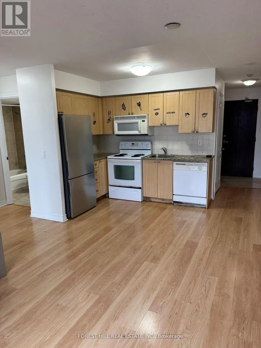 Bathurst Street&Centre Street Welcome to The Beverley Condos at Thornhill City Centre! This spacious unit offers a bright southern exposure with a large open balcony and a well-located parking spot. The foyer features a double closet and a separate laundry area. The combined living and dining rooms walk out to the sun-filled balcony, while the kitchen boasts full-sized appliances including a brand new stainless steel fridge and abundant cabinetry. The primary bedroom includes a walk-in closet and sunny south-facing views. A well-appointed 4-piece bathroom completes the suite. The building offers exceptional amenities: indoor pool, hot tub, sauna, gym, 24-hour concierge/security, ample visitor parking, meeting and party rooms, billiards, sundeck/terrace, and guest suites. Conveniently close to schools, transit, parks, places of worship, shopping, restaurants, and Highways 7 & 407. Utilities, Bell cable, and Fibre stream internet (excluding hydro) are included. A bright, family-friendly home in a safe and welcoming community! (id:27476)