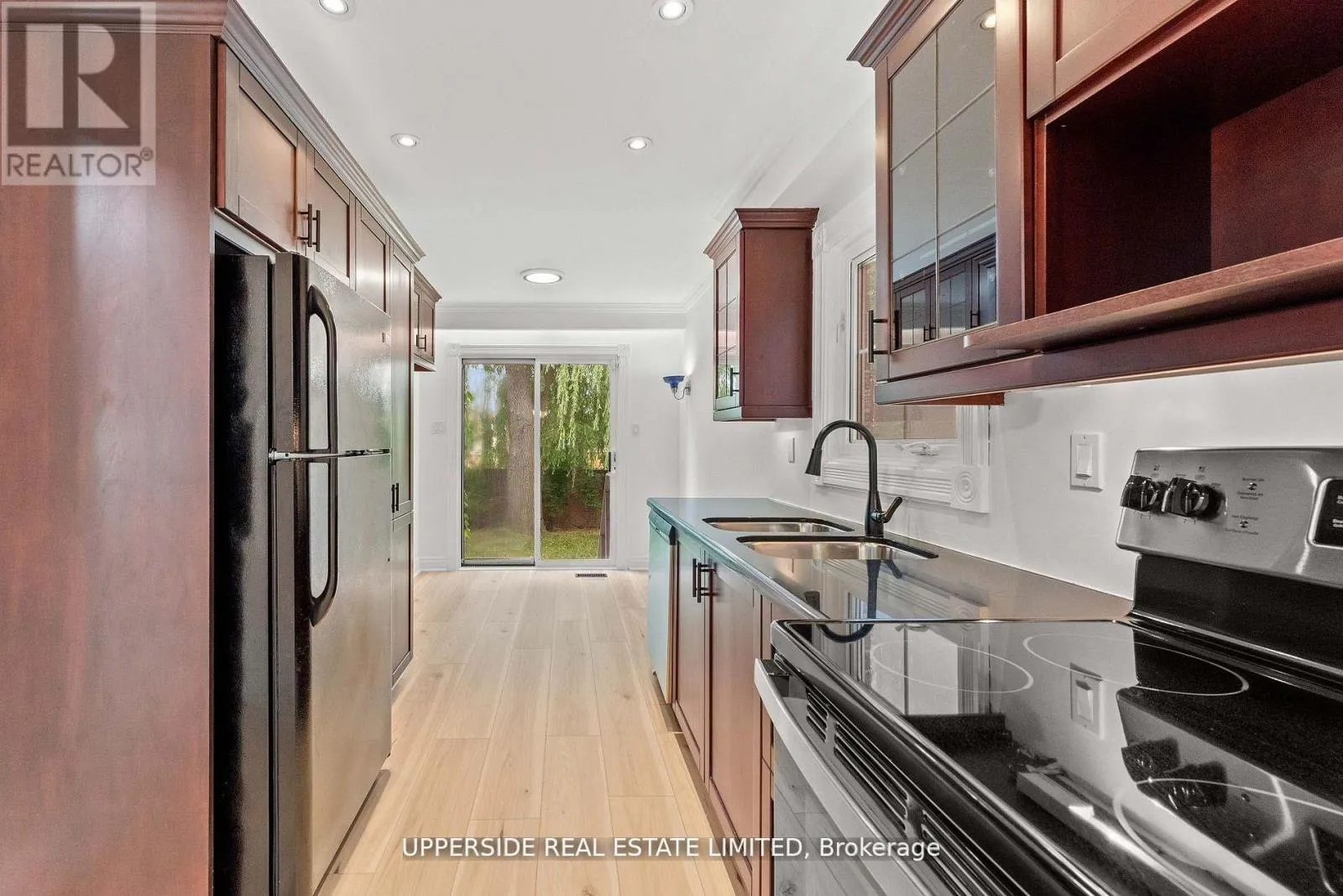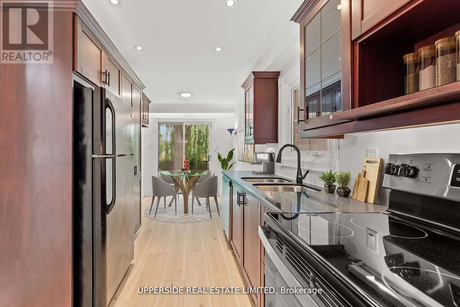 Cross Streets: Bathurst St & Centre St. ** Directions: Bathurst St and Centre St. A beautifully renovated 3-bedroom, 4-bath home in the sought-after Thornhill community, with over $100,000 in upgrades completed in 2025. Enjoy a bright open-concept layout with new laminate floors, LED pot lights, and a skylight that fills the home with natural light. The spacious living room opens to a fully fenced backyard with mature trees, perfect for entertaining. A separate dining room features wall sconces and a frosted leaded glass bow window. The modern eat-in kitchen includes stainless steel and black appliances, custom cabinetry with under-cabinet lighting, a pantry, crown moulding, and a second walkout to the deck. The primary suite offers a 4-piece ensuite with a jacuzzi tub, heated towel rack, and mirrored closets with a view of the front yard. The finished basement includes a cozy rec room with a wood-burning fireplace, a 3-piece bath, a kitchenette (ideal for Passover), and a mirrored feature wall. Freshly painted enclosed front vestibule, custom interlocking landscaping with flood lighting. kSteps from synagogues, Promenade Mall, and close to Centrepoint Mall, grocery stores, and highways 407/7/400 this home offers luxury, comfort, and convenience. (id:27476)