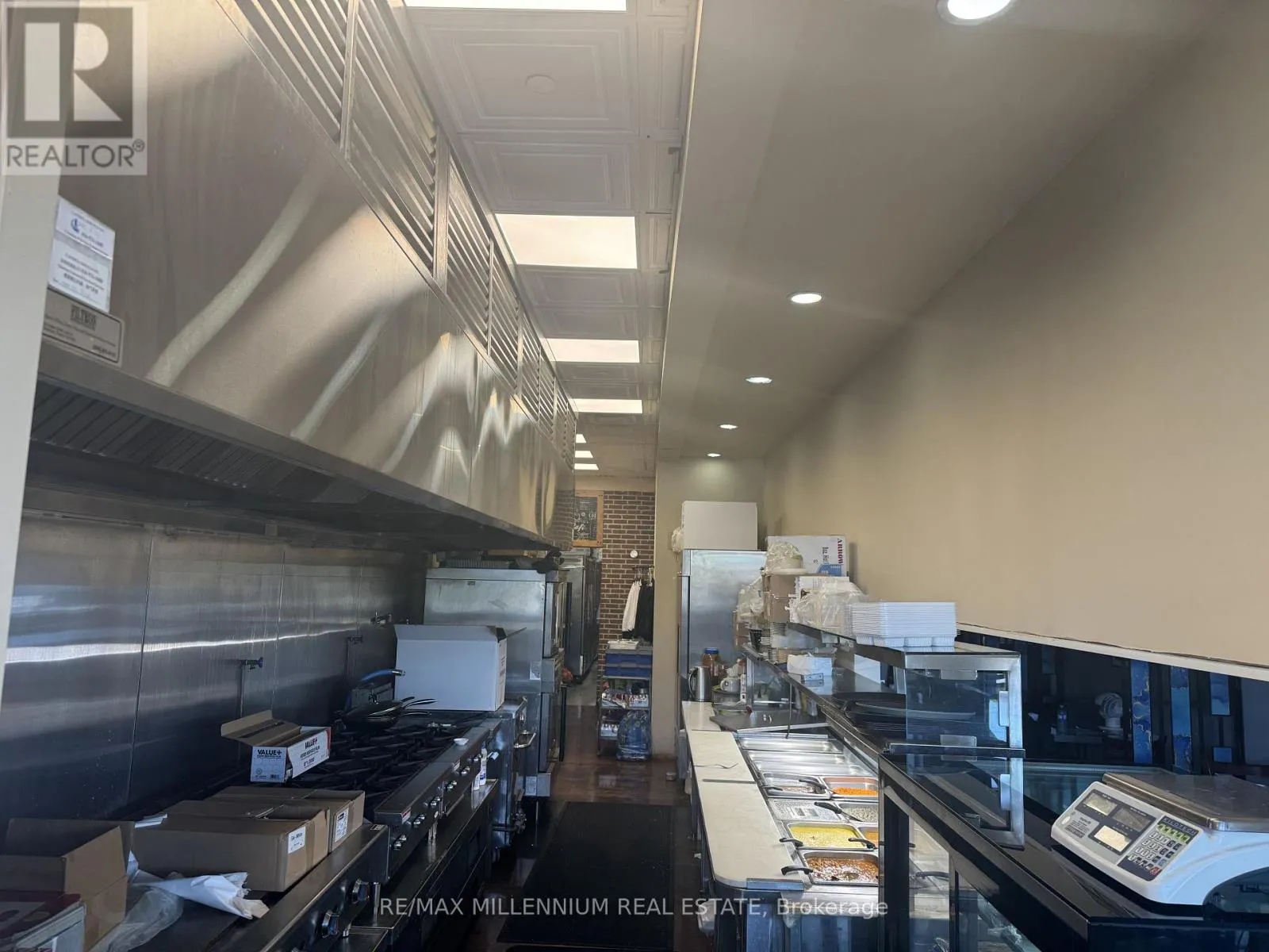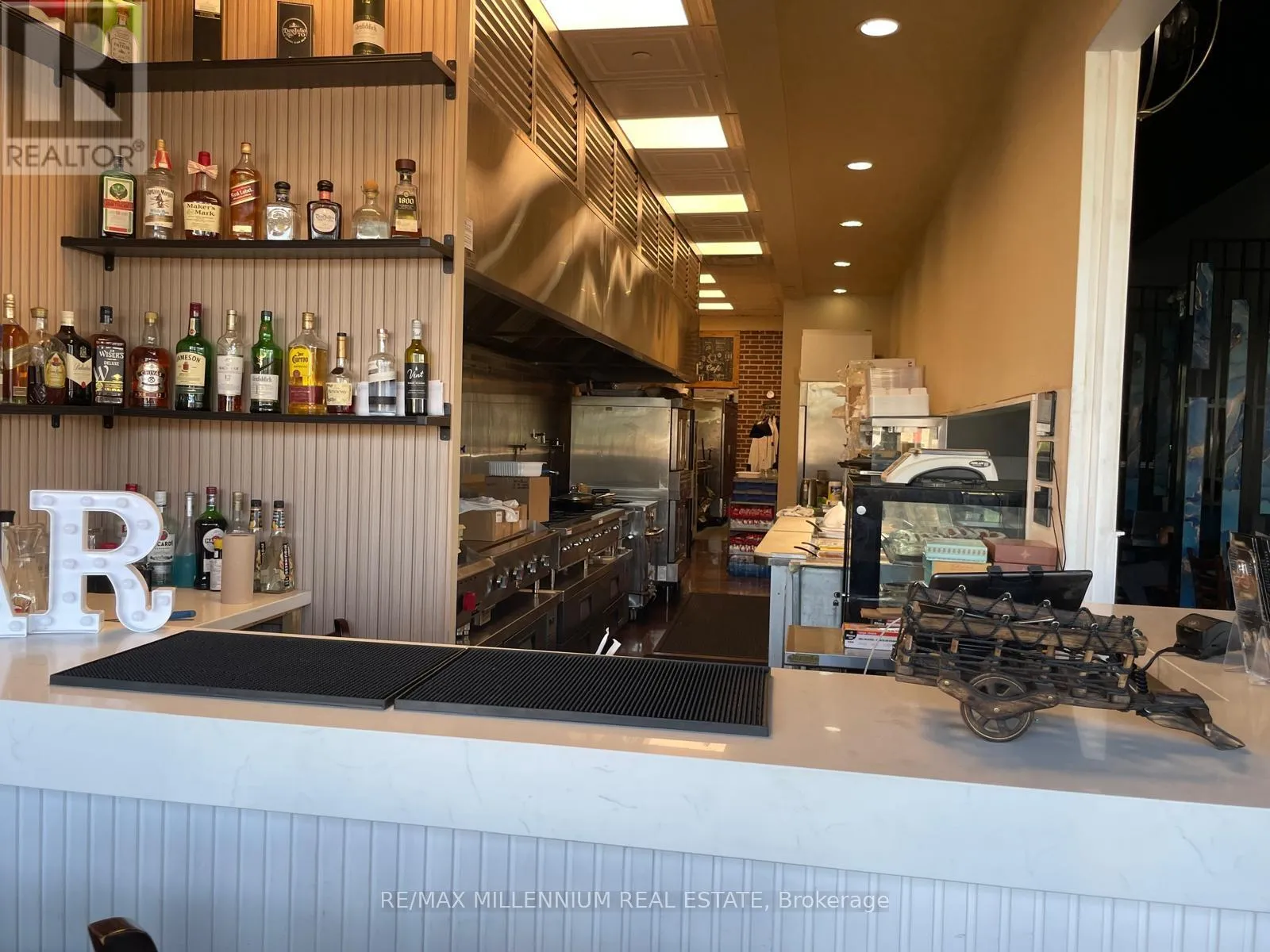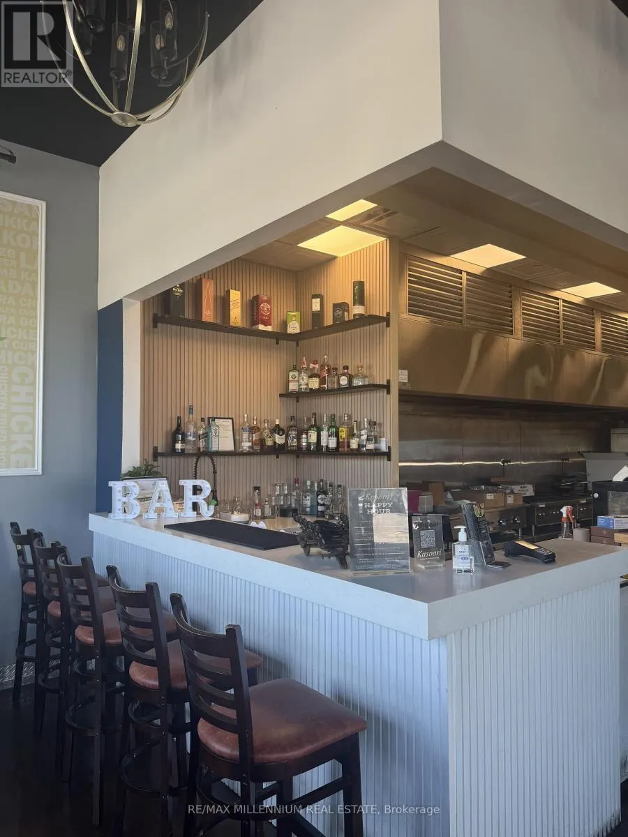 Islington Ave & Major MacKenzie Dr. Discover this well-established fine-dining restaurant in a bustling high-traffic plaza at the prime intersection of Islington Ave & Rutherford Rd in Woodbridge (Vaughan), anchored by major retailers such as Food Basics, McDonald's, Tim Hortons, Pizza Pizza, Subway, and BarBurrito,ensuring steady foot traffic and excellent exposure. Surrounded by mature residential neighbourhoods, schools, Highway 400, and ongoing developments, this approx. 1,800 sq. ft.space is licensed with the LLBO for 30 seats along with high-end interior designing, and offers a long-term lease until June 2027 with low monthly rent of $6,426 (incl. TMI). Featuring a fully equipped kitchen and dining area, high monthly sales, and tremendous potential to grow through catering, delivery platforms, and community partnerships, this turnkey opportunity isideal for owner-operators or savvy investors seeking a non-branded restaurant business in one of Vaughan's most premium locations. (id:27476)