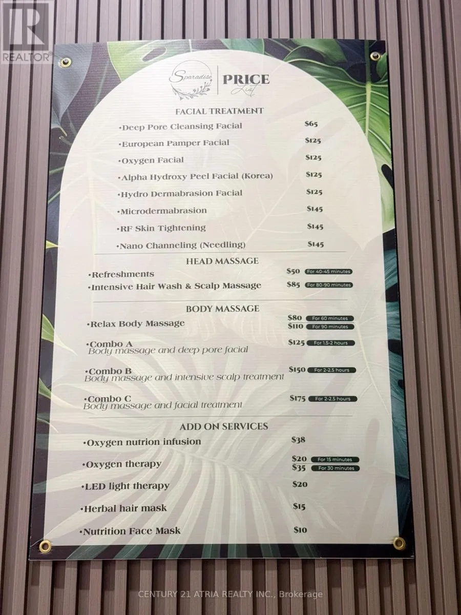 Cross Streets: Weston & Hwy 7. ** Directions: as per google maps. Price to sell! Don't miss this incredible opportunity to own a modern, fully equipped spa in the heart of Vaughan, one of the GTA's fastest-growing. Welcome to Centro Square, An Exceptional Mixed Used Development Commercial Unit For Sale In The Heart Of Vaughan. Conveniently located in a busy plaza surrounded by established businesses, restaurants, and residential communities, this spa enjoys steady foot traffic and loyal clientele. Great Opportunity For You To Own Your Business. Next To New Subway Station, Right On Ext of Highway 407, Highway401 and Highway 7. Surrounded By Home Depot, Best Buy, Costco, And Many Others Shops and Restaurants. The space features a beautifully designed interior with elegant finishes, multiple treatment rooms, and a welcoming reception area all in excellent condition. It is turnkey and ready for immediate operation, offering the flexibility to either continue the current business model or introduce your own brand and services. Ideal for beauty professionals, investors, or entrepreneurs looking to step into a thriving wellness industry. The Unit Located Right Beside The Food Court. Open To Many Uses, Ample Covered Parking Provides Year-Round Protected Access. Don't miss out on this high-potential opportunity! With a strong foundation, consistent cash flow, and everything set up for success, this is your chance to own a profitable spa in a prime Vaughan location. Opportunities like this are rare take advantage of this ready-to-go setup and make it your own! (id:27476)