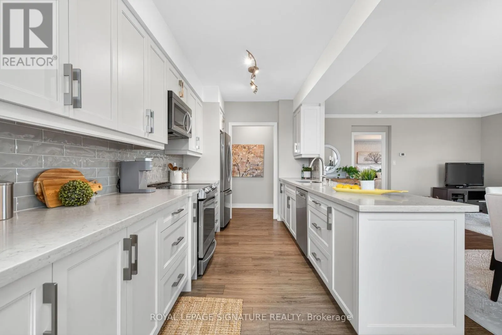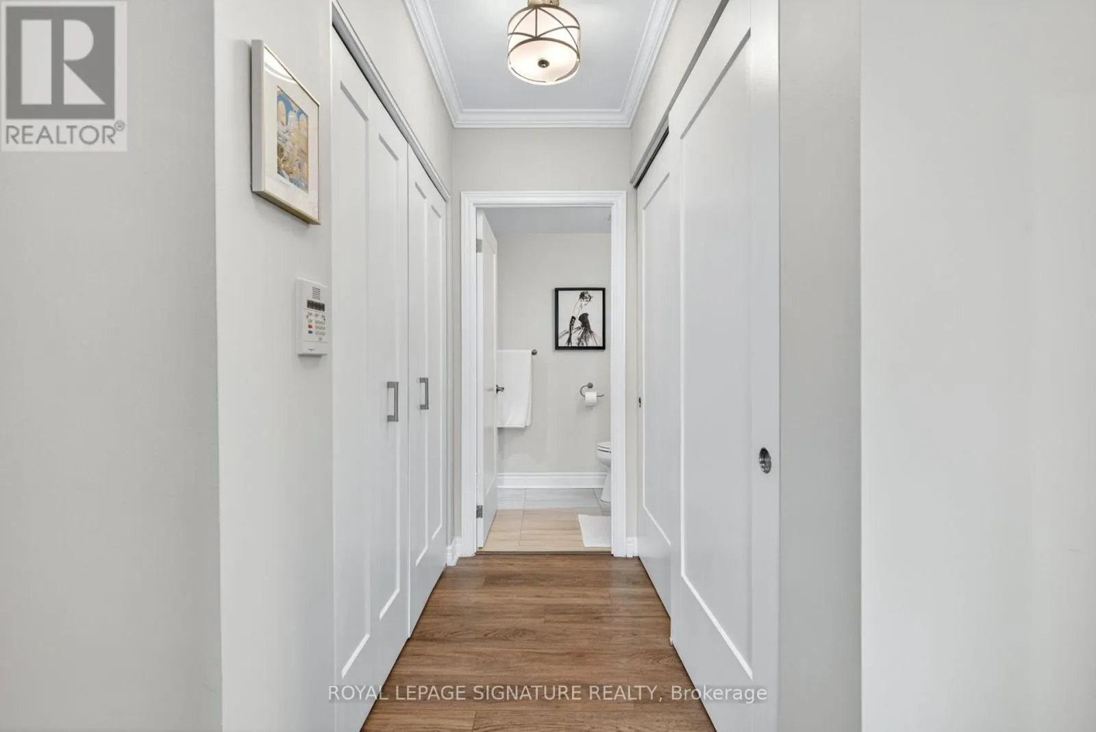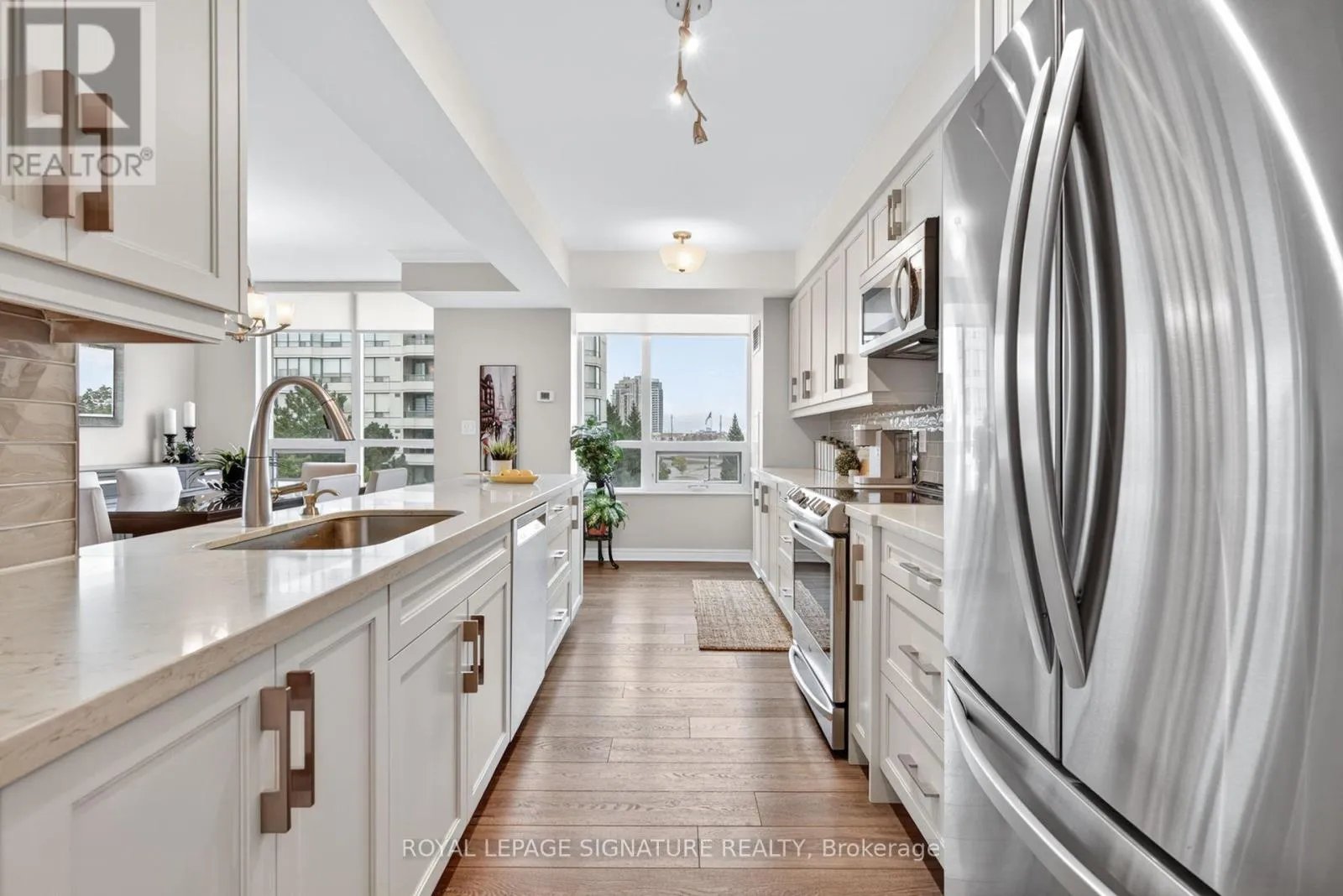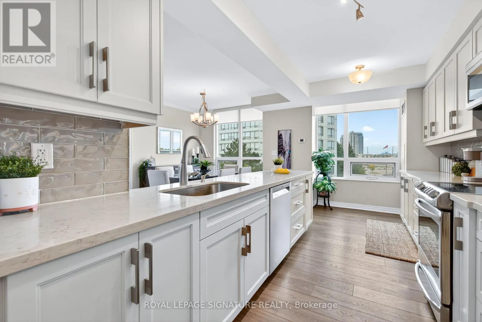 Bathurst St & Centre St Renovated from top to bottom with high-end finishes; no expense was spared! This upscale move-in-ready corner suite combines the ease of condo living with hotel-style amenities, all while offering the warmth and comfort of a true home, just steps from everything you need. Every corner exudes luxury. Start your mornings in a gorgeous chef's kitchen featuring custom wood cabinetry, Caesarstone quartz counters, stainless steel appliances and ample storage. The spacious primary bedroom includes a walk-in closet and ensuite with double sinks. Both bathrooms are beautifully updated with porcelain tile and quartz countertops. Sunlight pours through large windows all day long, while ensuite laundry and custom built-ins in the hallway closets add everyday convenience. Step onto your northwest-facing balcony for morning coffee, evening wine, or a good book, complete with maintenance-free flooring. One parking space (located right by the door!) and a large storage locker are included. The maintenance fees cover heat and water plus Premium Bell TV & Internet for just $47/month. This well-managed building, known for its welcoming community, offers an indoor pool, hot tub, sauna, fully equipped gym, party, games and media rooms, guest suites, library, 24-hour concierge and visitor parking. Residents also enjoy organized social events, making it easy to stay active and connected. The location & walkability is unbeatable, steps from Promenade Mall, Walmart, supermarkets, places of worship, cafes, restaurants, the library, public transit and a wide range of health and medical services; you truly don't need a car to access everyday essentials. Families will love the great school options, while outdoor lovers and sports enthusiasts can enjoy daily walks in Concord Regional Park, a game of Pickleball across the street at Pickleplex Social Club or Golf at The Thornhill Club. Don't miss this chance to join a vibrant, family-friendly community in a beautifully updated suite! (id:27476)