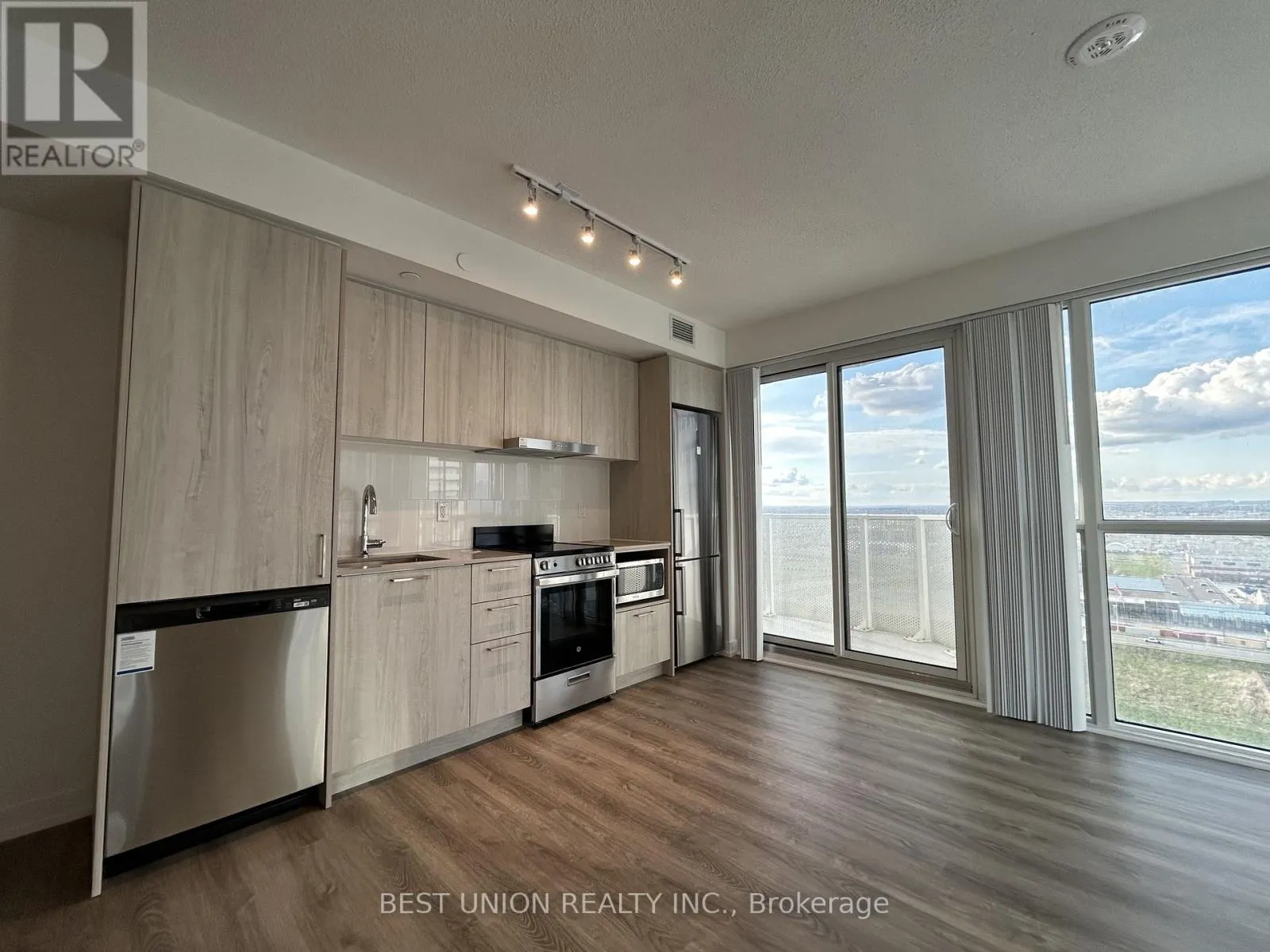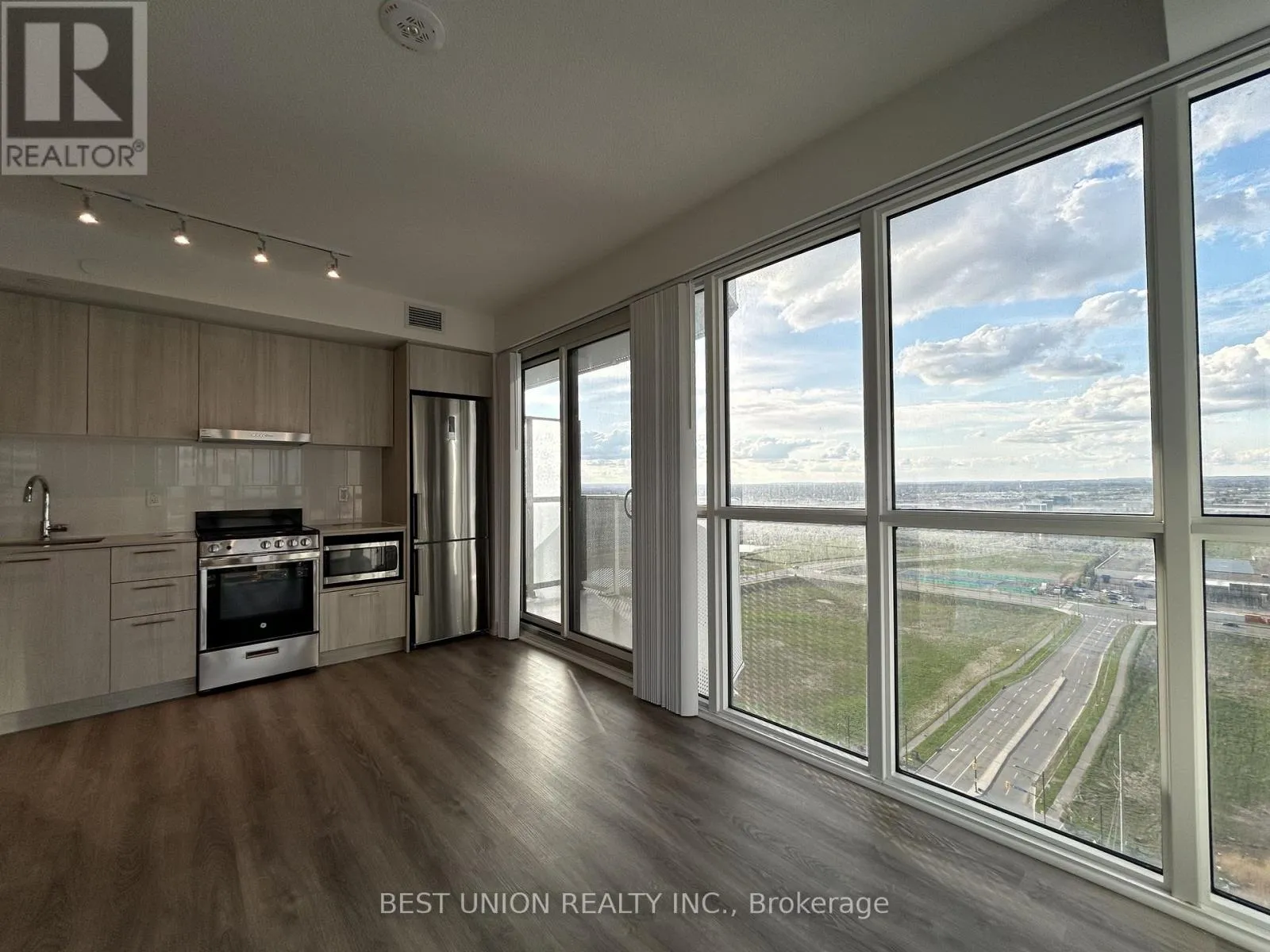 HWY 7 & Commerce Street Amazing 1 Bedroom + Den at Festival Towers!Experience luxury living in this stunning, sun-filled unit featuring two open balconies with breathtaking views and soaring high ceilings. Designed for young professionals, couples, or students, this modern space boasts brand-new stainless steel appliances and an open-concept layout flooded with natural light.Located in one of Vaughans most sought-after communities, you're just minutes from TTC, VMC Subway, VIVA, Highway 400, Costco, IKEA, Cineplex, Dollarama, and an array of top restaurants and cafs. Enjoy seamless access to downtown Toronto via subway or Markham via VIVA, with Vaughan Mills and all essential amenities right at your doorstep.Don't miss out on this prime locationa perfect blend of convenience, comfort, and style! (id:27476)