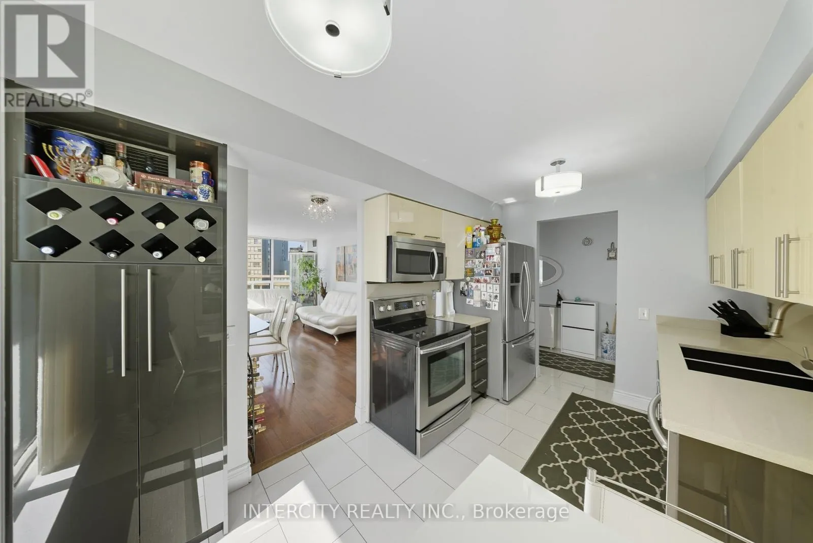 Bathurst/Steeles Experience luxury living in this stunning corner lower penthouse! Recently renovated, this spacious unit boasts beautiful hardwood floors throughout and a modern kitchen complete with a cozy breakfast area. Enjoy the convenience of two full bathrooms and bask in the abundant natural light from the south-west exposure. Step out onto the balcony off the kitchen, perfect for relaxing or entertaining. The expansive living and dining room offers ample space, making this one of the largest units in the building. Don't miss the chance to call this bright and inviting home your own! (id:27476)