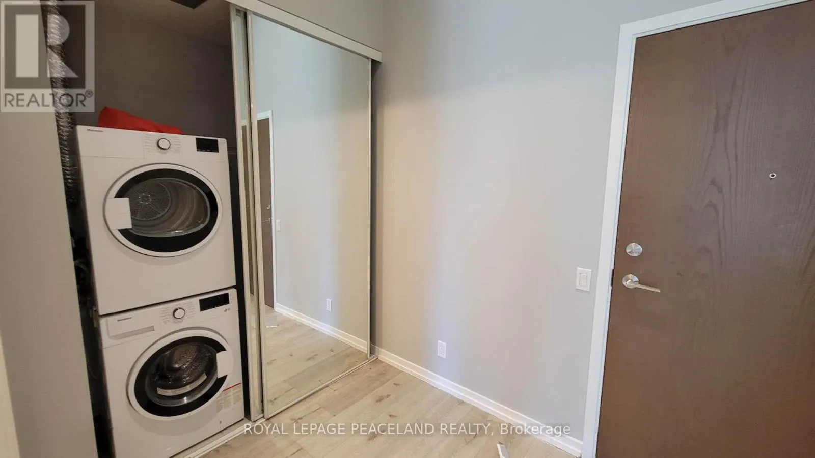 Jane Street / Highway 7 Step into contemporary living in the vibrant core of Vaughan! This stylish ground-floor condo offers a thoughtfully crafted 2-bedroom, 2-bathroom layout with impressive high ceilings and a sleek modern kitchen featuring integrated appliances, in-suite laundry, and premium finishes such as keyless entry and a smart thermostat.The home is truly move-in ready and perfectly positioned for ultimate convenience-just a short walk to the TTC Subway, Smart VMC YRT Bus Terminal, Viva routes, and only minutes from Highways 400/407, Vaughan Mills, Walmart, Cineplex, and York University. Commuting, shopping, and dining have never been easier.Residents can enjoy an exceptional lineup of resort-inspired amenities, including an outdoor infinity pool, indoor running track, squash court, K2 fitness centre, yoga studio, co-working lounge, and a stunning 1-acre urban park designed by Claude Cormier.The unit comes equipped with stainless steel appliances (fridge, stove, hood fan, microwave, dishwasher) plus a stacked washer/dryer, and includes a dedicated locker for extra storage.This is an incredible opportunity for a beautifully connected home in one of Vaughan's most desirable and fast-growing communities-ideal for anyone seeking style, convenience, and a premium lifestyle. (id:27476)