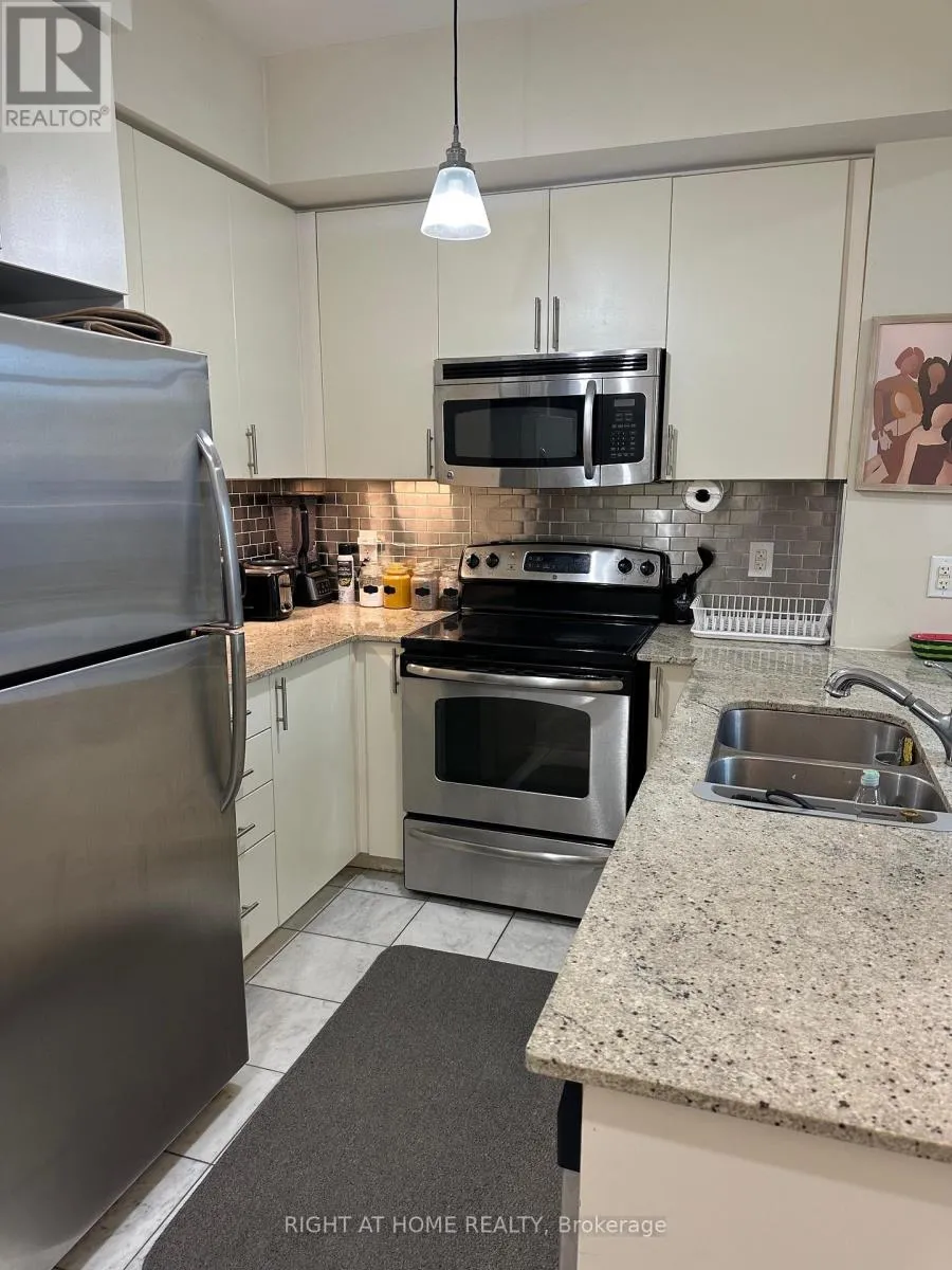 Steeles/Bathurst Luxurious 'Posh' Condominium, Very Bright Unit With Spectacular Panoramic Clear South Views Open Concept Unit With Walk-Out To Terrace. Steps To TTC, YRT, One Bus To York University And To Finch Subway. Close To Shopping, Banks, Supermarket, Boutique Hotel, Restaurants, BRAND NEW engineered laminate Floors, Gourmet Kitchen W/ Granite countertops. Stainless Steel Appliances, Backsplash, Bdr With large Closet, 4Pc Ensuite bathroom. (id:27476)