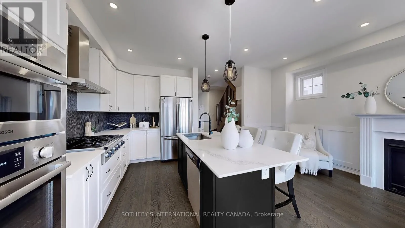 Weston & Major Mac Situated in the highly desirable Vellore Village of Vaughan, this stunning executive end-unit townhome at 160 Sunset Terrace is the epitome of luxury and function. With 3 spacious bedrooms and 3.5 bathrooms, this home is designed for a modern family lifestyle. The main level welcomes you with a bright, open-concept design and a show-stopping, chef-inspired kitchen. This culinary space features top-of-the-line stainless steel appliances, sophisticated quartz countertops, and a breakfast area that's perfect for both casual meals and lavish entertaining. The adjacent family room, with its cozy gas fireplace, provides a warm and inviting atmosphere. Ascend to the second floor, where you'll find the private primary bedroom. This serene retreat boasts a large walk-in closet and a spa-like 5-piece ensuite bathroom, offering a perfect sanctuary at the end of the day. The fully finished walk-out basement is a major highlight, providing incredible flexibility and additional living space. It includes a spacious recreation room, a custom kitchenette, and a laundry room, ideal setup for a potential in-law or guest suite, home gym, or media center. Outdoor living is made easy with direct access to a deck from the breakfast area and a fully fenced backyard from the walk-out basement, providing a private and secure outdoor oasis for relaxation and play. Located moments from top-rated schools, beautiful parks, and a host of amenities including Vaughan Mills and Canada's Wonderland, this home offers unparalleled convenience and access to major highways. This is a rare opportunity to own a truly exceptional property in a prime Vaughan location. Public Open House Cancelled Due to Inclement weather. (id:27476)