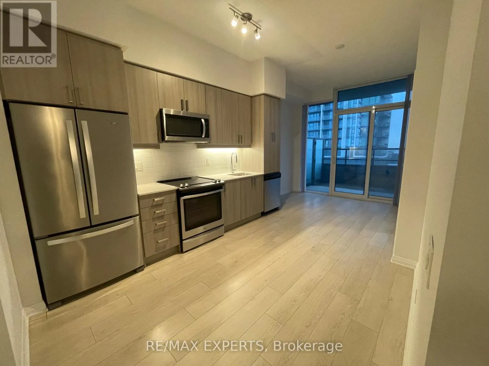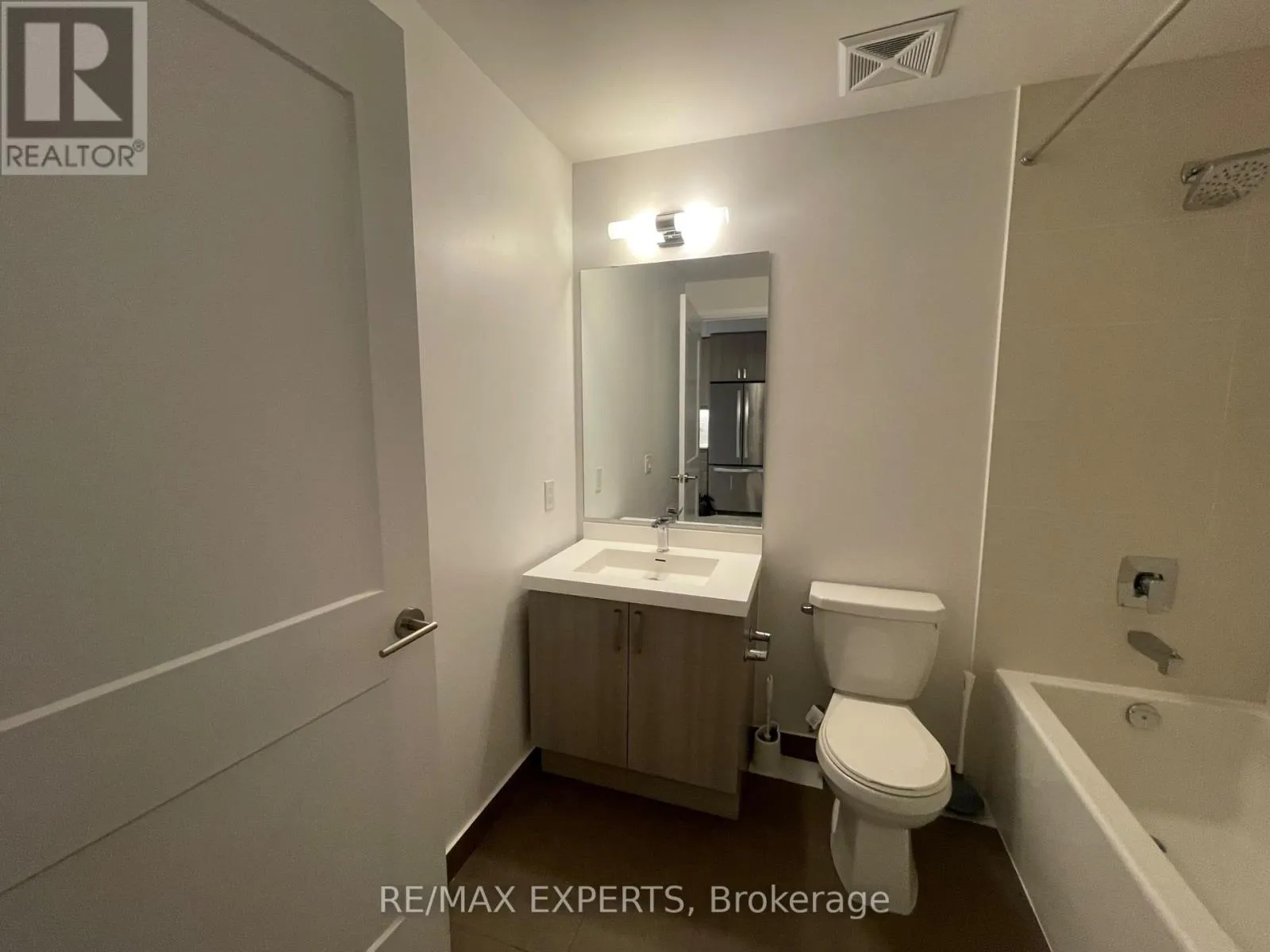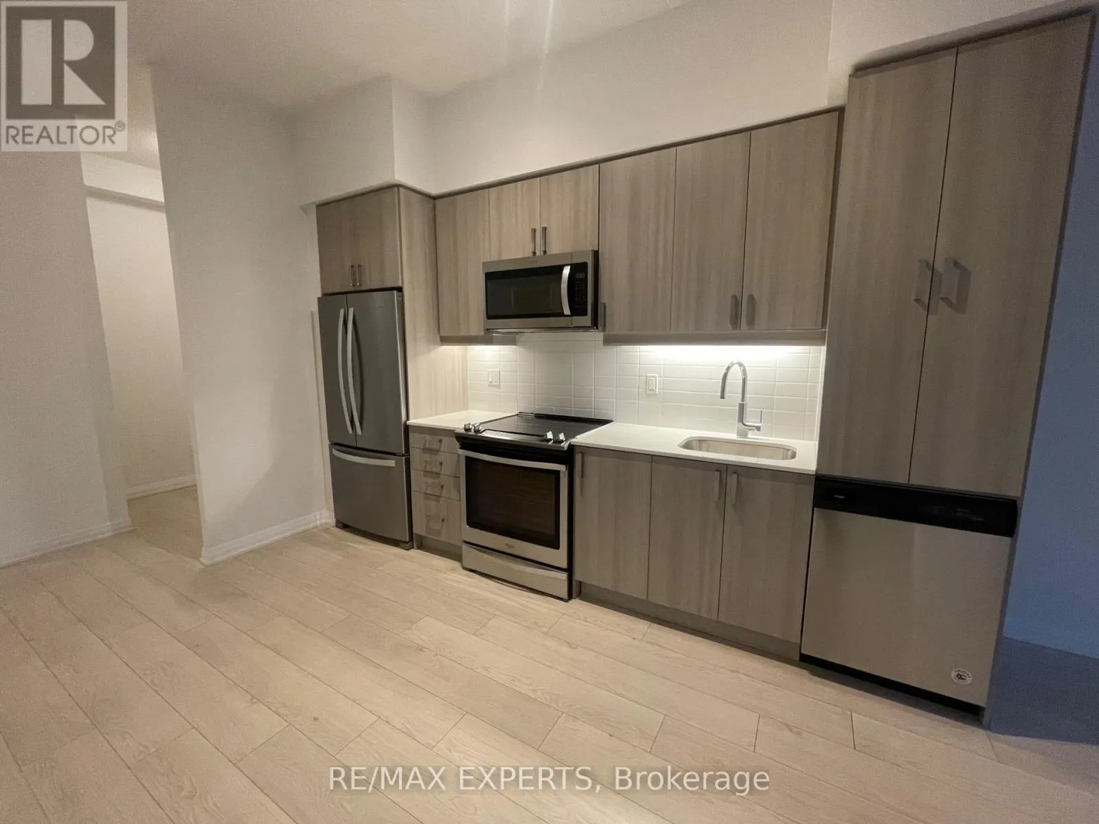 Jane St & Hwy 7 Rare unit featuring 10 ft ceilings and a large west-facing balcony/terrace with no added premium, perfect for sunset views. Offers 1 bedroom + den and 2 full bathrooms (one with a glass shower, one with a soaker tub) . 155 SQ FT ULTRA WIDE TERRACE BALCONY Includes 1 parking space and 1 above-ground locker. Upgraded interior with quartz kitchen counters and laminate flooring throughout the main areas. The spacious den is ideal for a home office or can function as a second bedroom. Located just a 4-minute walk to the Vaughan Metropolitan Centre subway and bus terminal. Comes with full-size stainless steel appliances (fridge, dishwasher, slide-in glass top stove, built-in microwave), washer/dryer, and window coverings. (id:27476)