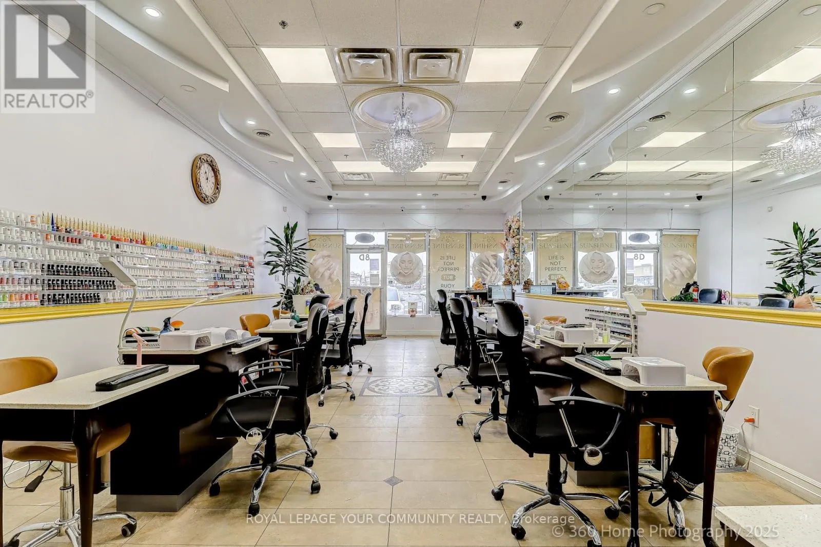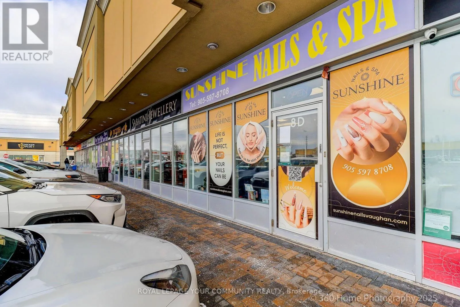 Jane and Rutherford Look No Further!!! Busy Nail/Beauty Salon close to Vaughan Mills Mall. Located in High Traffic Plaza, fronting Rutherford Rd, Close to Major Highway. 1280 Sq Ft includes 9 Nail Stations, Tables, Chairs, 7 Foot Spas/Lounges and Chairs, 3 Private Rooms for Aesthetics, Waxing, Massages, etc etc etc. Washer/Dryer, Fridge, Linens, All Products and Equipment Supplies. Established Business with an established list of Clientele. Open 7 days a week. Parking Outdoors. A Must See!!! Bring an Offer!! (id:27476)
