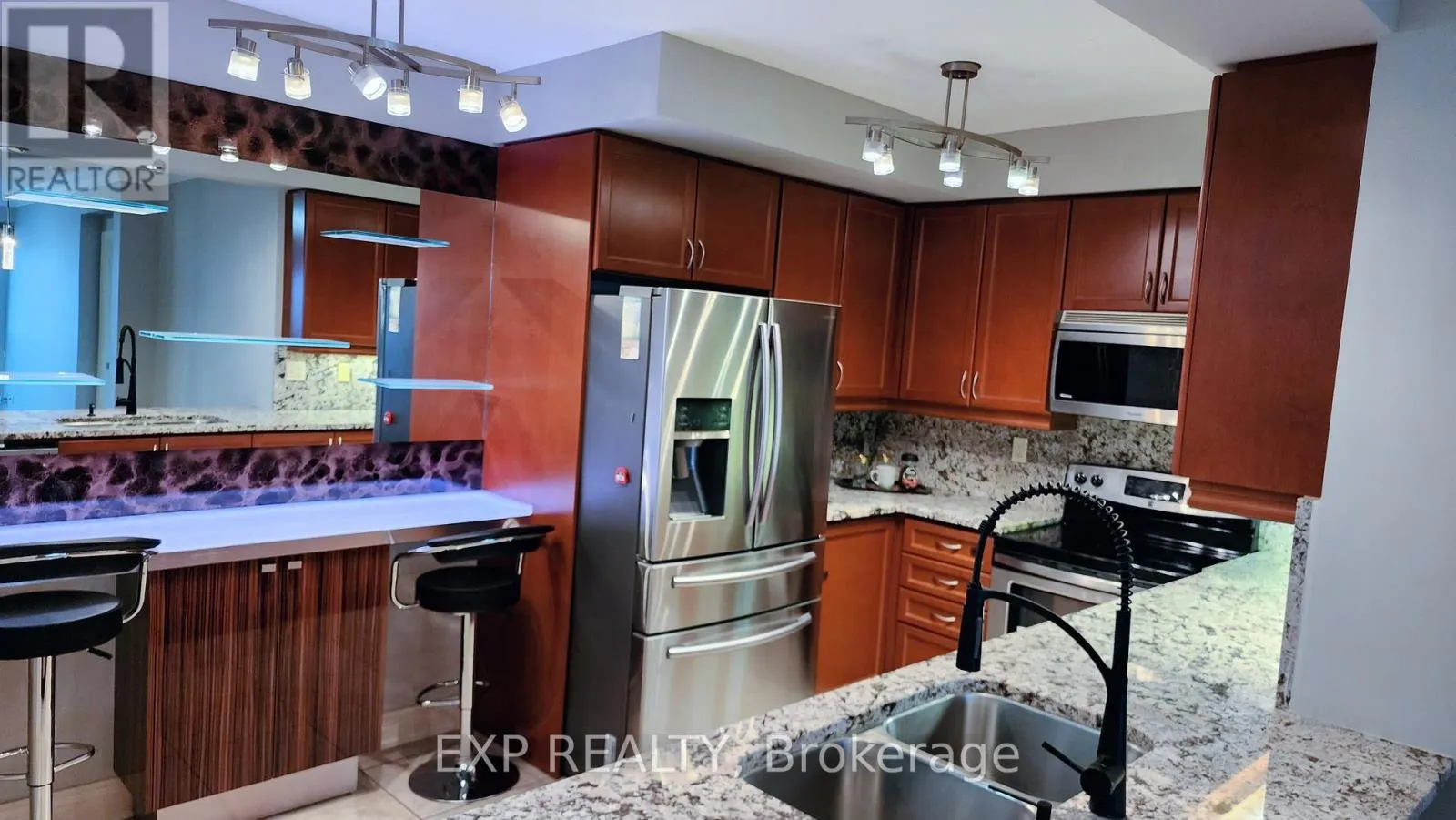 Cross Streets: Bathurst/Centre. ** Directions: West of Promenade Mall. Welcome to The Luxury Residences of Promenade Park in the Heart of Thornhill! This Beautiful & Bright Two-Bedroom Plus Den, Two-Bathroom Suite Features a Fantastic Layout and One of the Largest Kitchens in the Building. $$$ Spent on Premium Upgrades Including Hardwood Flooring, Crown Moulding, Extended Gourmet Kitchen Cabinetry with Undercabinet Lighting, High-End Stainless Steel Appliances, Granite Countertops & Backsplash, Custom-Built Wet Bar, Frameless Glass Shower, Custom Closet Organizers, Motorized Blinds, and So Much More! Fall in Love with the Outstanding Amenities, Including an Indoor Pool, Sauna, Games Room, Party Room, Theatre, and Fully Equipped Gym! (id:27476)