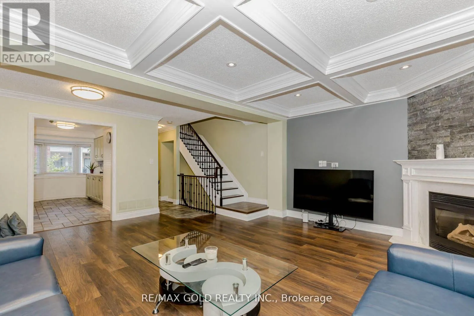 Kipling/Woodbridge Avenue Your Dream Home in Woodbridge: Modern & Move-In Ready!**Discover this fantastic end-unit condo townhouse in a super convenient Woodbridge location. It's been beautifully updated and is ready for you to move right in! Step inside to a bright, open living and dining area, perfect for relaxing or having friends over. You'll love the cozy gas fireplace and the extra-large windows that fill the space with sunlight. The coffered ceiling in the living room gives you a royal feel.Plus, there's a lovely, newly redone balcony with clear glass railings, great for enjoying your morning coffee or evening breeze. The kitchen is a chef's delight with all new upgrades and sleek stainless steel appliances. All bathrooms are also updated, including your private ensuite in the main bedroom, which even has a stylish accent wall. Need extra space? The ground floor has a big room with a charming bay window that can be a 4th bedroom, a fun rec room, or even a home office. You'll also appreciate the easy access with both front and back entry points. For your comfort and peace of mind, the furnace and AC are newer, and you get plenty of parking with a 1-car garage and space for 2 more cars in the driveway. This home offers the best of both worlds: the space and privacy of a townhouse, all in a prime Woodbridge spot close to everything. Come see it today! (id:27476)