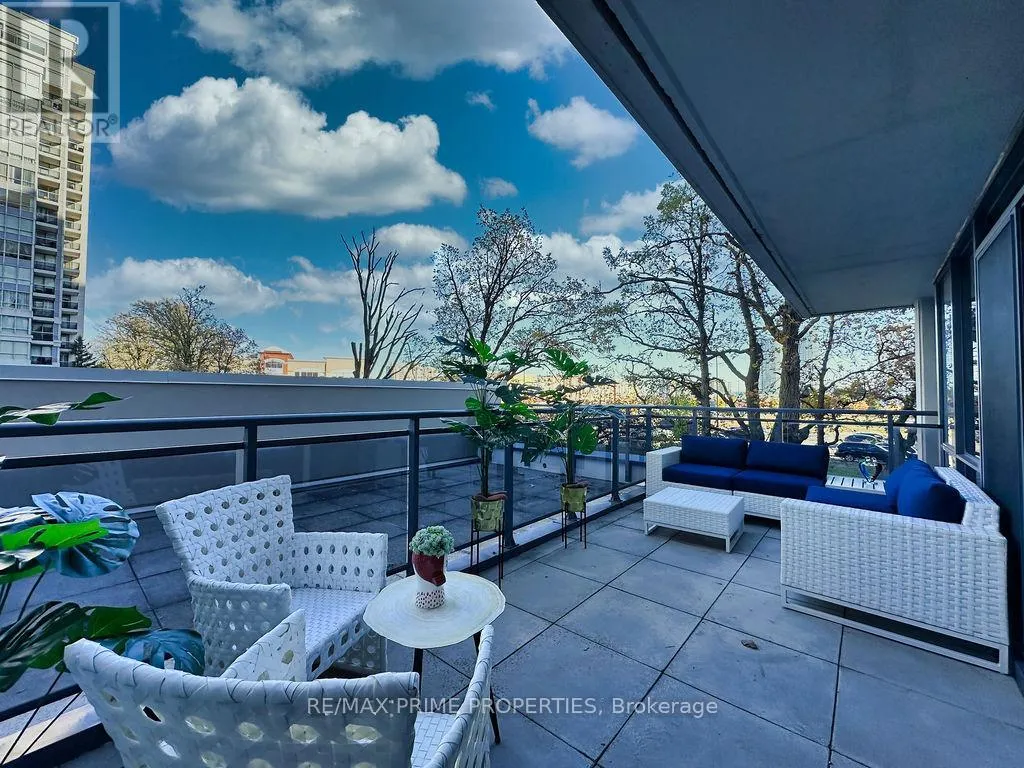 Cross Streets: Bathurst and Centre. ** Directions: NW corner of Bathurst and Centre. This rare corner condo delivers the ultimate urban dream: a huge private 180 sq ft terrace plus a second 95 sq ft large balcony that feels like your own backyard escape. Relax in the sunshine or host unforgettable evenings under the stars. Inside, a stylish brand new kitchen, split bedroom layout, and two full bathrooms offer smart modern living. Sunlight pours into every room through oversized windows. Step outside and you are moments from everything: major retailers, top restaurants, places of worship, high rated schools and rapid transit. Outdoor freedom, indoor comfort, unbeatable location. Original owner, never was rented. This is the upgrade you have been waiting for. Book your tour today before it's gone. (id:27476)
