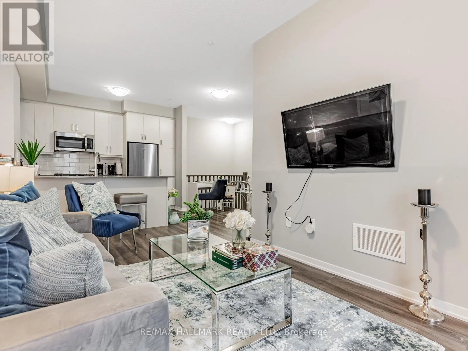 Interchange Way to Mable Smith Way to Honesycrisp Cres Don't miss this beautiful 2-storey open-concept townhouse featuring 2 bedrooms and 2.5 baths, located in a meticulously planned Vaughan community. The modern kitchen boasts quartz countertops, a breakfast bar, and a cozy seating area for a small table and chairs, open to the spacious dining and living areas, perfect for entertaining. The primary suite includes a 4-piece ensuite bath and a generous walk-in closet. The second bedroom is ideal for family, guests, or a home office. A convenient in-suite stacked washer and dryer are located on the same level as the bedrooms. Step outside to your private terrace an inviting space to relax or entertain. Ideally situated just steps from the Vaughan Metropolitan Centre Subway Station and Transit Hub, offering easy access across the GTA, Downtown Toronto and Union Station. Close to Highways 400, 407, and 7, and surrounded by great shopping and restaurants including Earls, Chop Steakhouse, Moxies, and Baton Rouge. A short walk to the YMCA, GoodLife Fitness and IKEA. A short drive takes you to Colossus Centre, Costco, Vaughan Mills, and family-friendly destinations like Dave & Buster's, Canada's Wonderland, and the movie theatre. Includes one parking space and locker. Offer anytime! (id:27476)