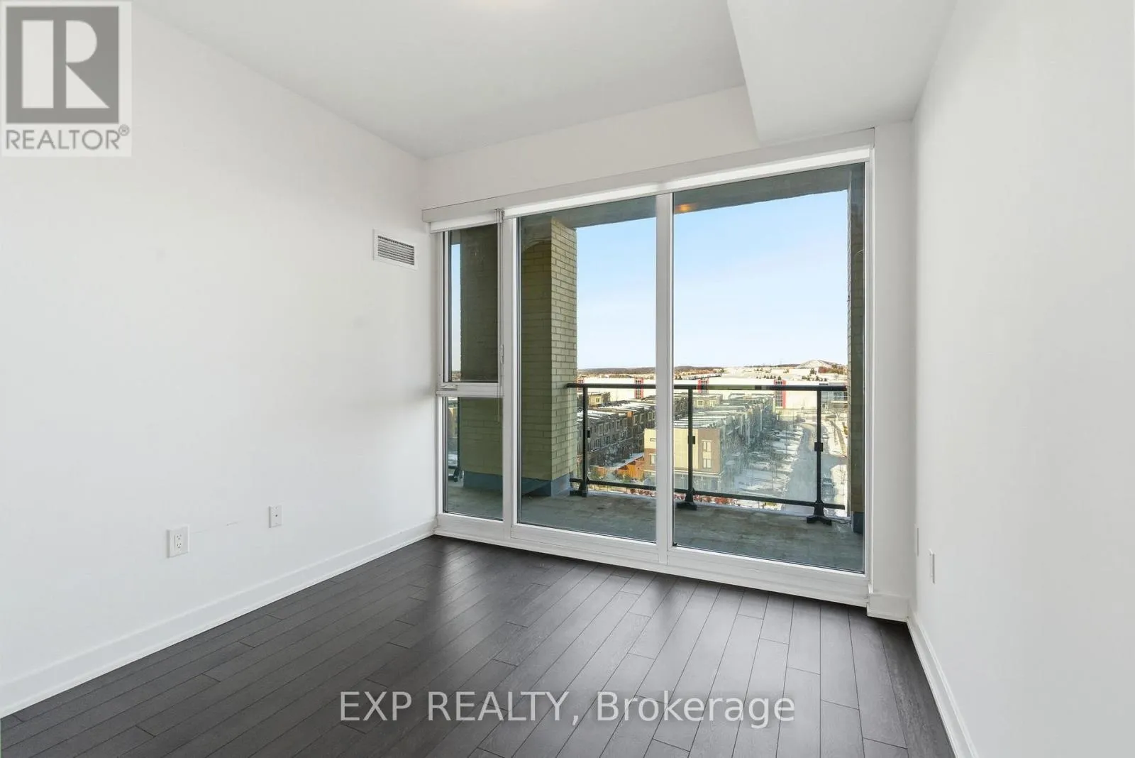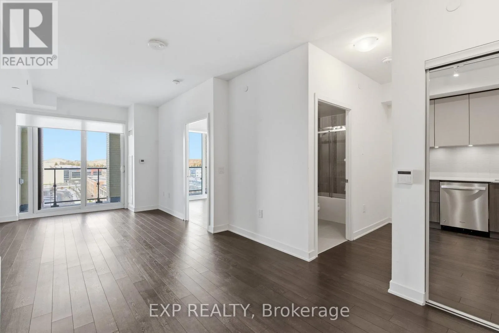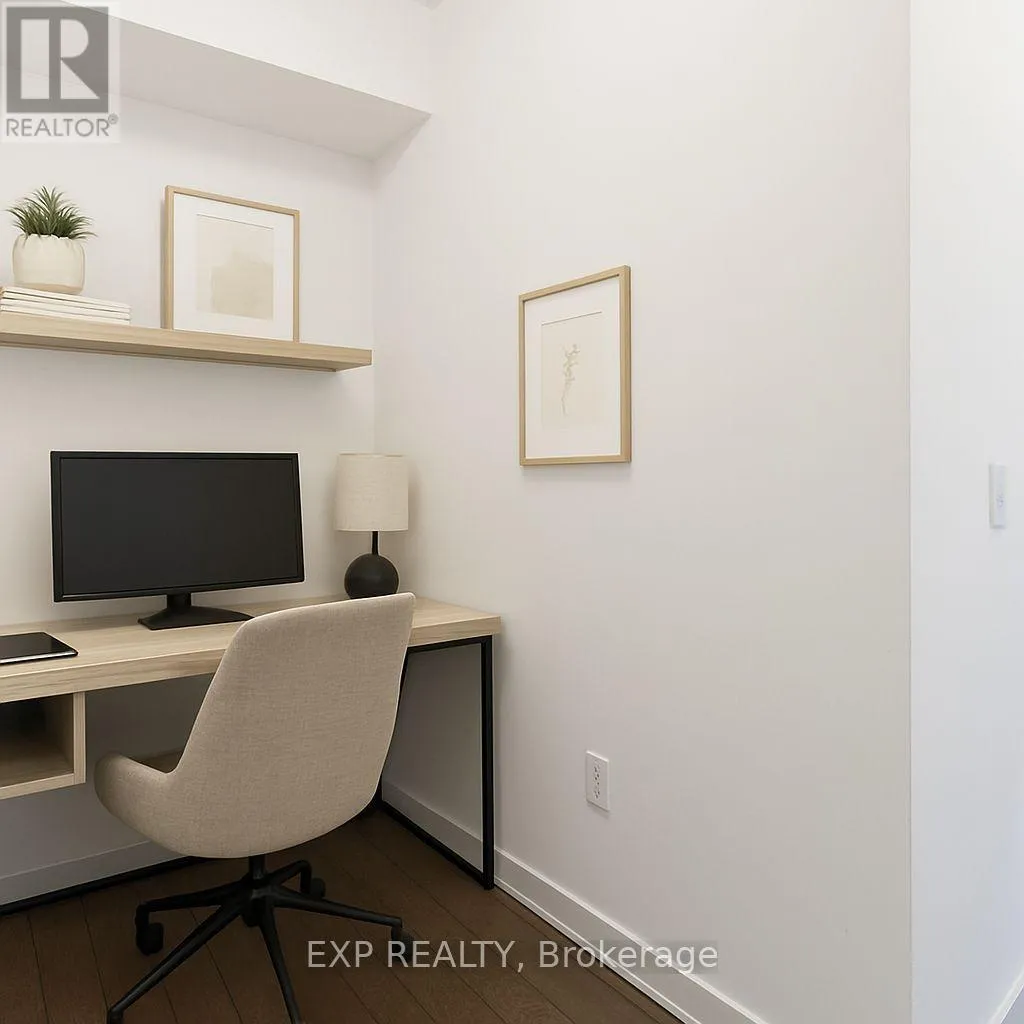 Keele and Major Mackenzie Modern Living Meets Urban Convenience at 100 Eagle Rock Way, Suite 730. Welcome to Unit 730, a bright and stylish 1+1 bedroom suite offering the perfect blend of comfort, convenience, and contemporary design in the heart of Vaughan. This beautifully maintained condo features 595 sq ft of thoughtfully designed open-concept living, complete with a rare oversized terrace-your own private outdoor escape with serene north-facing views. Inside, warm hardwood floors guide you through the airy living and dining area, ideal for relaxing or entertaining. The modern kitchen shines with stainless steel appliances, a built-in microwave, a built-in dishwasher, and ample storage. The spacious bedroom features a large wall of windows and double closet, while the versatile den offers the perfect space for a home office, study nook, or creative corner. Enjoy year-round comfort with central air, in-suite laundry, and inclusive maintenance fees covering heat, water, parking, and building insurance. Your new home also includes an owned underground parking space and an owned locker for added convenience. The building boasts fantastic amenities, including a rooftop deck/garden, sleek gym, party/meeting room, and plentiful visitor parking, making it an ideal spot for first-time buyers, downsizers, or investors looking to join one of Vaughan's most desirable communities. With easy access to transit, shopping, parks, and major highways, this suite delivers comfort, style, and unmatched convenience. Only 1 minute drive, or a 2-minute walk to the Go Station for easy commute downtown. (id:27476)