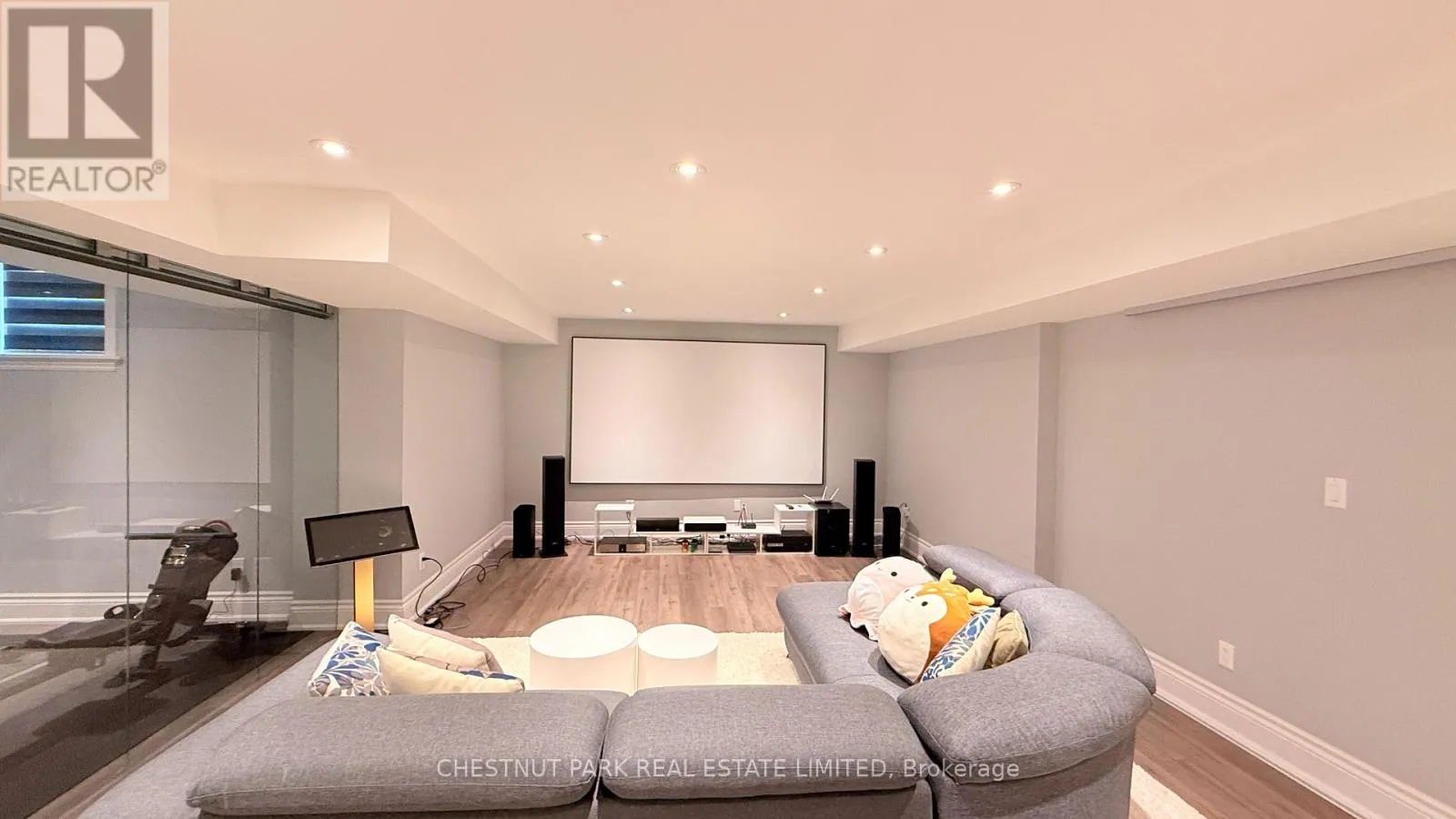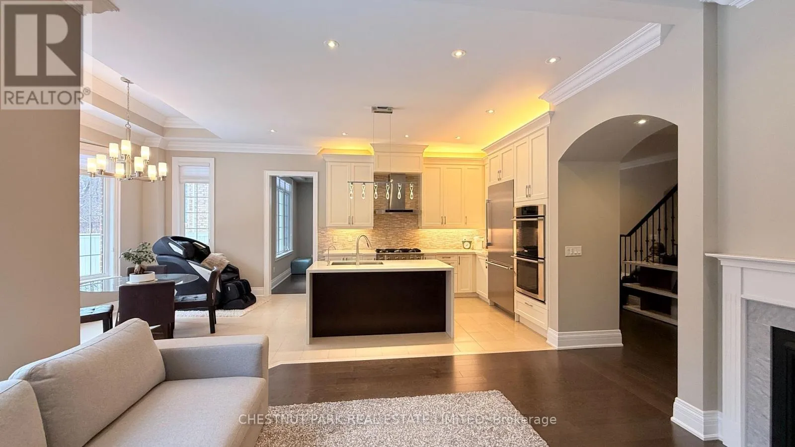 Bathurst & Major Mackenzie Stunning luxury home in Upper Thornhill Estates! This 5+2 bedroom, 6-bath residence sits on a 50ft120ft premium lot backing onto a serene conservation area, providing unobstructed private ravine views through expansive windows. Nestled on a quiet crescent surrounded by ponds and trails, it's steps to top schools, parks, shops, GO Transit, golf courses, and major highways. Zoned for St.ThereseofLisieuxCatholicH.S., ranked #1 in Ontario.Offering over 5,450sqft of total living space (3,760sqft above grade), the home features 10ft ceilings on the main level, extended doors and windows, and 9ft ceilings upstairs. The grand foyer opens with a custom 42" woodgrain fiberglass entry door accented by wrought iron.The gourmet kitchen showcases Thermador and Electrolux built-in appliances, custom cabinetry, a quartz waterfall island, and under-cabinet lighting. Additional features include a main floor office, hardwood flooring throughout, smooth ceilings, HunterDouglas Silhouette shades on the main level, and vinyl shutters upstairs. Premium finishes include elegant lighting, LED pot lights, crystal chandeliers, crown moulding, and one-piece Toto toilets.The primary suite offers a spa-inspired 6-piece ensuite, three-sided fireplace, a wellness den with ravine views, and his-and-hers walk-in closets. The professionally finished basement (2017) is perfect for entertaining with a home theatre featuring a 120" projector screen and sound system, wet bar, games area, gym or 7th bedroom enclosed by glass, a guest bedroom, built-in bookcase, and a 3-piece bath.A generous mudroom with garage access, custom built-ins, and large closets enhances everyday convenience. The professionally landscaped exterior includes a driveway with Unilock Courtstone pavers, a backyard with Flagstone pavers, a PVC fence, RainBird Wi-Fi irrigation, and a designer garden bordered by six mature evergreens. (id:27476)