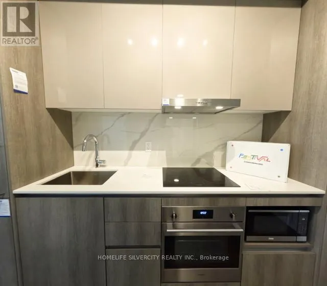Hwy 7 & Commerce Festival Tower A Brand New Luxury Condo Be the ONE to live in this stunning, modern residence in Festival Tower A, a brand-new high- rise nearing completion. This elegant 1 Bedroom + Den, 2 Full Bathroom condo offers 596 sq. ft. of thoughtfully designed living space with premium finishes. The open-concept kitchen and living area create a bright, spacious feel, featuring sleek stainless steel appliances, stone counter tops, and engineered hardwood floors. The den offers versatility as a home office or guest space, while the two full bathrooms provide both style and convenience. Enjoy the luxury of in-suite laundry and the added value of a parking space included in the price.Located in a vibrant community with easy access to transit, shopping, dining, and entertainment, this is an incredible opportunity to own a brand-new home in one of the city's most exciting developments. Don't miss out. (id:27476)
