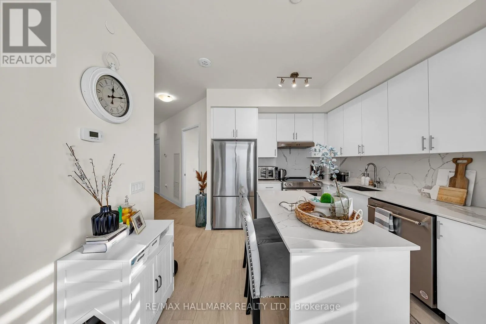 Jane St / Bass Pro Mills Dr Welcome to this beautifully designed 817 sq ft unit, complete with a wraparounds balcony-perfect for relaxing or entertaining. Featuring 9-foot ceilings and stylish laminate flooring throughout, this bright and modern space is filled with natural light. Enjoy a sleek, contemporary kitchen ideal for cooking and gathering with friends. This unit also includes one parking spot, one locker, and a built-in central vacuum system for added convenience. Residents of Charisma Condo enjoy resort-style amenities, including a party room, games room, fitness centre, theatre, pet grooming station, and an outdoor pool. Unbeatable location-just steps to Vaughan Mills Shopping Centre, HWY 400 & 407, and the VIVA Transit Hub. Don't miss your chance to live in one of Vaughan's most sought-after communities ! (id:27476)