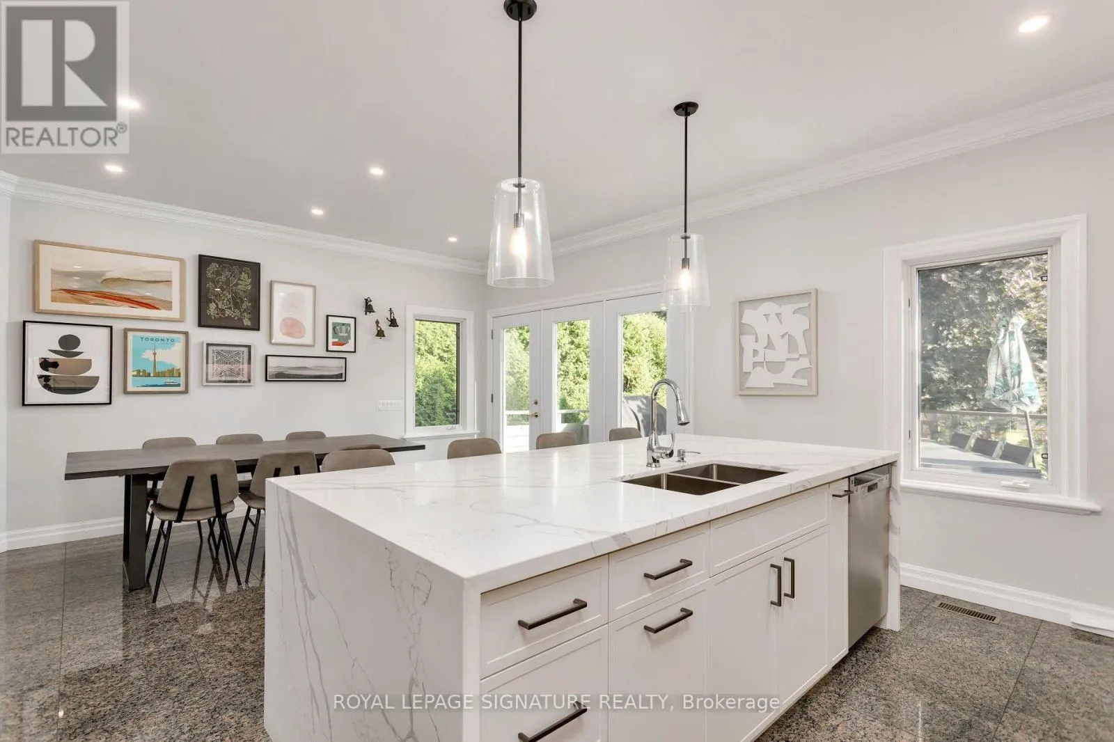 Centre Street / Vaughan Blvd Thirty-two years ago, 31 Lawrie Road was built with care, vision, and uncompromising quality. over the years it has been updated and refined, but certain features remain timeless - the thoughtful layout, the gleaming oak hardwood floors, and the lush backyard garden. Now, for the first time, a new family has the opportunity to make this cherished home their own. Set on an extraordinary 50 x 200-foot lot in the highly sought-after Beverly Glen neighbourhood, this custom-built residence offers both space & sophistication. A striking granite-tiled foyer w/9ft ceiling heights sets the stage for the home's 5400 sqft of refined interior. The new custom kitchen is a showpiece flooded with natural light. Entertain in style in the formal dining room with herringbone oak floors and French doors, or unwind in the elegant family room with gas fireplace. Additional main-floor features include a private office, front sitting room, a modern powder room, a dedicated laundry w/ dual sinks, and access to the garage that has soaring 12ft ceilings. A floating oak staircase brings you to the second floor, where five generously sized bedrooms await. The primary retreat features its own balcony, a walk-in closet, and a luxurious five-piece ensuite complete with a private w/c hidden behind a pocket door. Two additional full baths with marble tile complete the upper level.The possibilities continue in the attic, with walkable subfloors perfect for storage or a future hideaway, and in the expansive basement, where there's room for everything from a recreation area to practicing your pickleball game! Here, you'll also find a spa-like five-piece bath complete with sauna, dual cold cellars (including one beneath the garage), and direct basement-to-garage access via the oak-wood staircase.With its rare lot size, superior craftsmanship, and meticulous updates, 31 Lawrie Road stands as a statement of luxury living in one of the city's most desirable neighbourhoods. See Feature Sheet for extras. (id:27476)