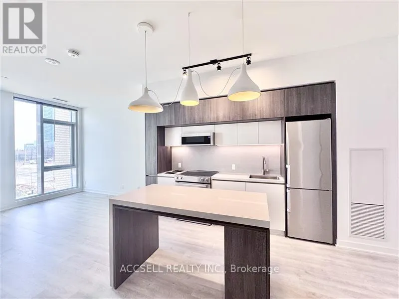 Highway 7 & Jane Street Welcome to this contemporary 1-bedroom, 1 bathroom condo, situated in the heart of Vaughan. Perfectly located just steps from the Vaughan Metropolitan Centre (VMC) and only minutes to Highways 407, 400, 401, and 427, as well as Vaughan Mills and Canada's Wonderland, this home offers the ideal blend of style and convenience. This open-concept unit is filled with natural light from the floor-to-ceiling windows and features sleek laminate flooring throughout. The highly functional eat-in kitchen is equipped with stainless steel appliances, including a microwave, stove, refrigerator, and dishwasher-making both everyday living and entertaining a breeze. (id:27476)