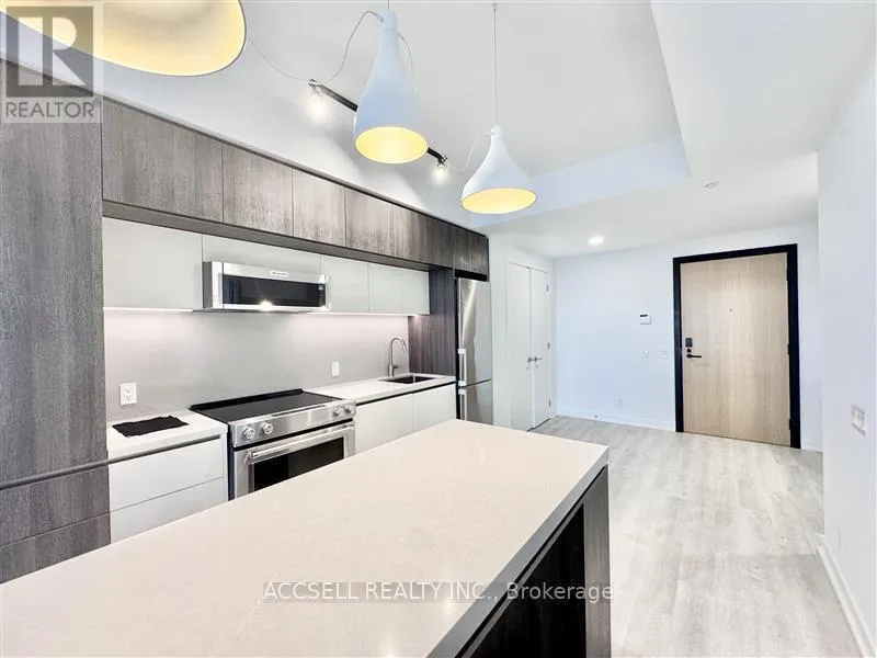 Highway 7 & Jane Street Welcome to this contemporary 1-bedroom, 1 bathroom condo, situated in the heart of Vaughan. Perfectly located just steps from the Vaughan Metropolitan Centre (VMC) and only minutes to Highways 407, 400, 401, and 427, as well as Vaughan Mills and Canada's Wonderland, this home offers the ideal blend of style and convenience. This open-concept unit is filled with natural light from the floor-to-ceiling windows and features sleek laminate flooring throughout. The highly functional eat-in kitchen is equipped with stainless steel appliances, including a microwave, stove, refrigerator, and dishwasher-making both everyday living and entertaining a breeze. (id:27476)