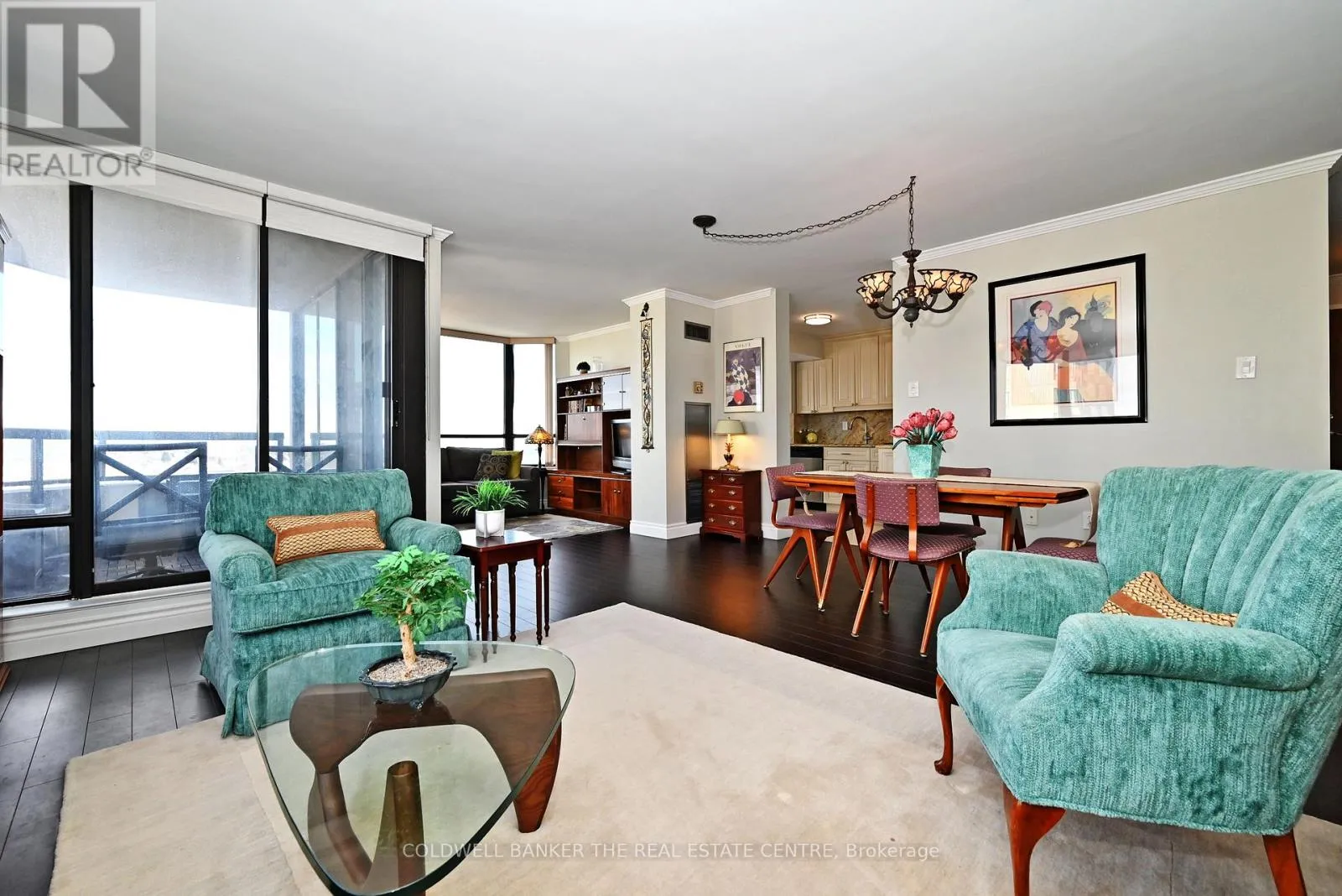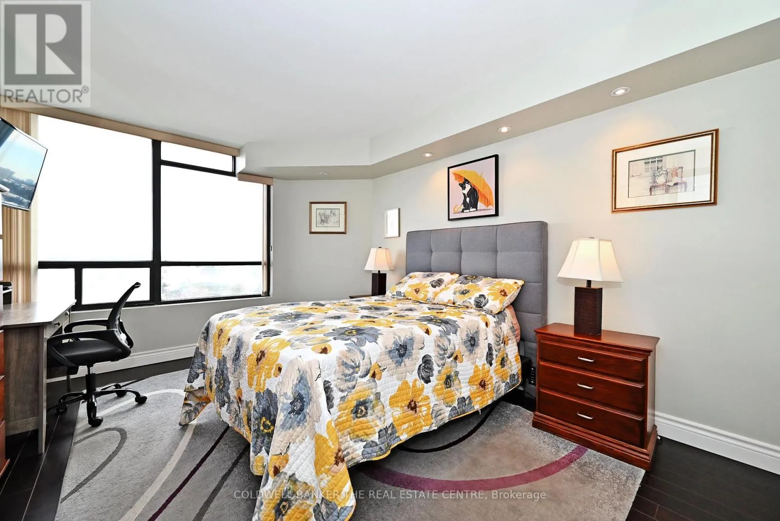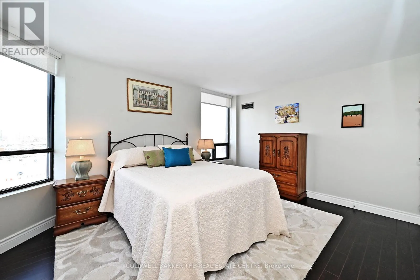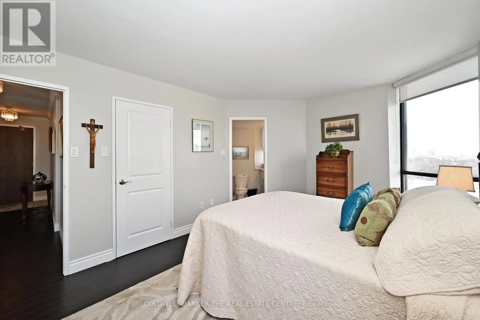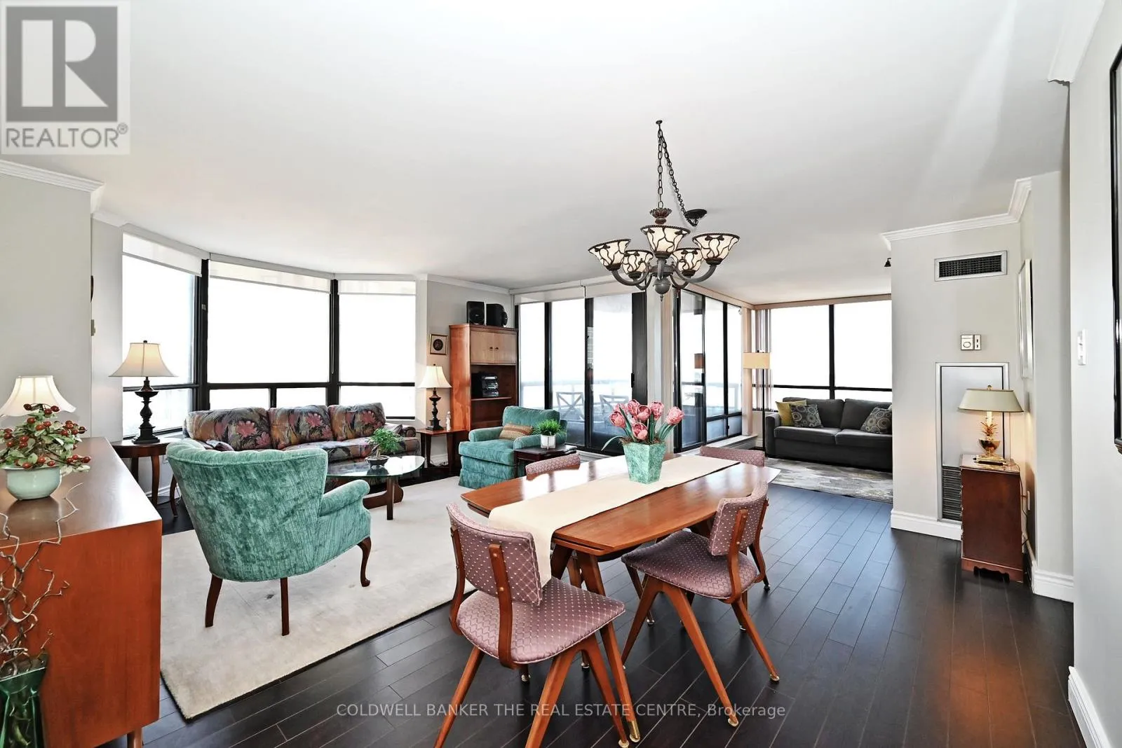 Bathurst/Clark Rarely Available Immaculate Corner Unit! This beautifully renovated 1,433 sq. ft. corner suite offers an exceptional layout with an abundance of natural light and a seamless flow throughout. Featuring high ceilings and a desirable split-bedroom design, this spacious condo provides both comfort and privacy. Enjoy outdoor living on the private balcony, upgraded with stylishwood-look floor tiles. The eat-in kitchen is a cook's dream, showcasing generous cabinetry, granite countertops and backsplash, a large walk-in pantry, under-cabinet lighting, and five premium brand-name appliances. Both bathrooms have been tastefully renovated, including the primary 5-piece ensuite which offers a spa-like relaxation vibe. Additional highlights include rich wood flooring, in-unit laundry, two full bathrooms, bright, oversized rooms ideal for comfortable living and entertaining. Ideally located in a highly desirable area close to all amenities, this rare corner unit is a standout opportunity and truly a must-see. (id:27476)
