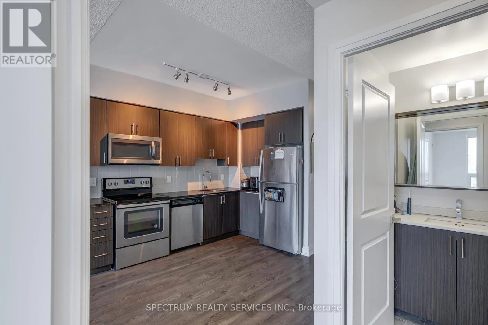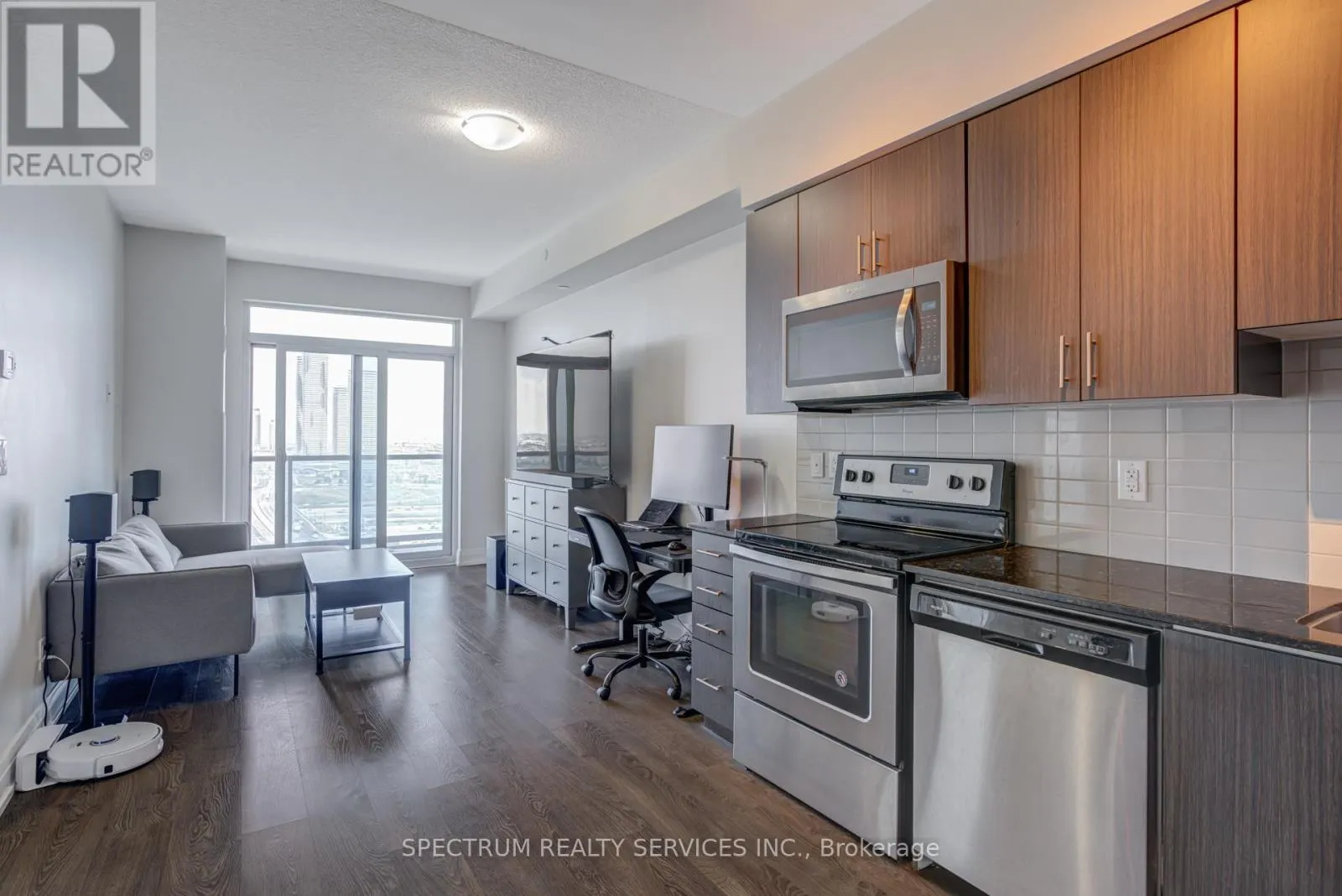HIGHWAY 7 & WESTON RD Welcome to this beautifully upgraded 1+1 bedroom suite in the highly sought-after Centro Square Condos, perfectly situated in the vibrant heart of Vaughan at Weston Road & Highway 7. Boasting 650 sq. ft. of functional, modern living space plus an oversized 40 sq. ft. balcony, this sun-filled unit combines style, comfort, and convenience in one impressive package. The open-concept layout is enhanced by 9-foot ceilings, laminate flooring throughout, creating a bright and inviting atmosphere. The modern kitchen is a chef's dream, featuring stainless steel appliances, granite countertops with undermount sink, stylish backsplash, extended upper cabinets. Enjoy unobstructed south-east, panoramic views from your private balcony, ideal for morning coffee or evening relaxation. The generously sized Bedroom offers a large window, walk-in closet, and access to a spacious 4-piece bathroom. The Den is perfect for a home office, guest room, or reading nook. One Underground Parking space, Luxurious 5-star amenities: Indoor Pool & Sauna, Fully Equipped Gym & Yoga Room, Rooftop Terrace with BBQ Area, Party Room & Guest Suites, 24-Hour Concierge, Security and Visitor Parking. Steps to Vaughan Subway Station, York Region Transit, Costco, Goodlife Fitness, shops, restaurants & cafes Minutes to Highways 400 & 407, Vaughan Mills, and Cineplex, Close to schools, plazas, and major business hubs. A true gem in one of Vaughan's most Desirable communities - don't miss your opportunity to call it HOME! (id:27476)