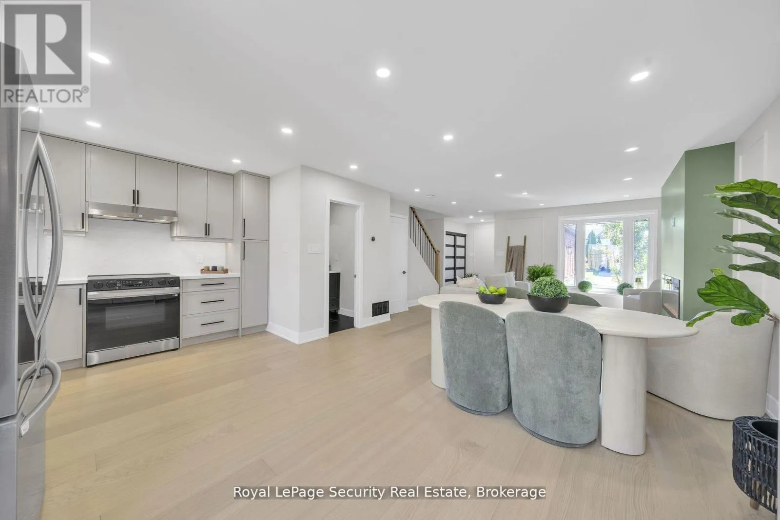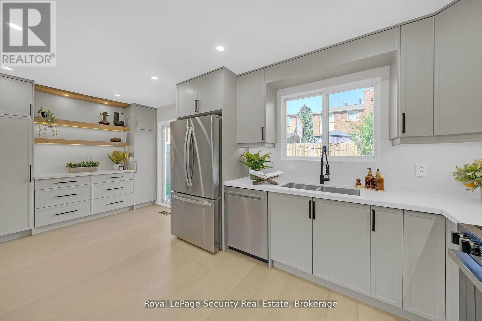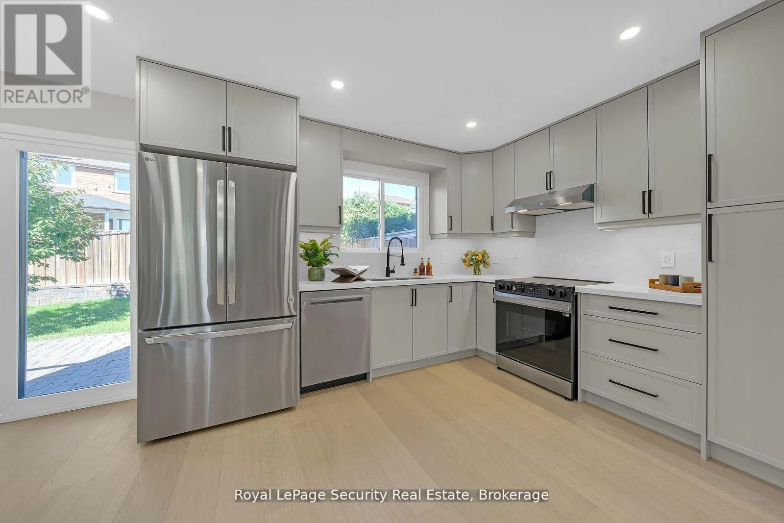 Langstaff / Ansley Grove Experience the rare opportunity to lease a completely renovated, top-to-bottom, turn-key residence nestled in the highly sought-after East Woodbridge community. This 3-bedroom, 2-storey semi-detached home offers the pristine feel of a brand-new build, featuring premium updates throughout including new flooring, modern fixtures, and designer lighting. The main level boasts a stunning, fully operational eat-in kitchen equipped with a new stove, refrigerator, stainless steel appliances, and custom cabinetry, making it perfect for daily living and culinary exploration. Each bathroom has been fully modernized with contemporary finishes to provide a spa-like atmosphere. For added versatility, the fully finished lower level serves as a major asset, featuring its own secondary kitchen and a dedicated 3-piece bathroom, making it an ideal space for an in-law suite or multi-generational living. Commuters will find this location unbeatable, situated just 6 minutes from Highways 400 and 407 and only 10 minutes from the Vaughan Metropolitan Centre (VMC) for effortless subway and transit access across the GTA. The exterior is equally impressive, offering excellent curb appeal with a charming covered front porch, driveway parking for two vehicles, and a spacious, private backyard with a large stone patio perfect for outdoor relaxation. This is a unique chance to live in a virtually new home within a mature, established neighborhood-an absolute masterpiece of a rental that is ready for immediate enjoyment. (id:27476)