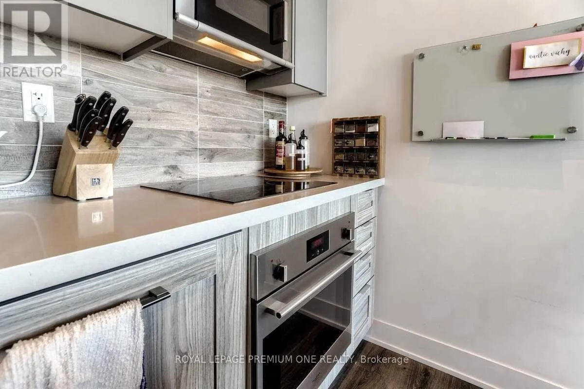 Jane Street & Highway 7 Welcome to this bright and spacious 2-bedroom, 2-bathroom suite located in the heart of Vaughan. This beautifully designed unit features an open-concept floor plan with laminate flooring throughout and an upgraded kitchen with sleek cabinetry and built-in appliances. Enjoy floor-to-ceiling windows that flood the space with natural light and lead to a large balcony terrace offering stunning views. The expansive living area is perfect for entertaining, while two generously sized bedrooms provide comfort and privacy. The primary bedroom includes a walk-in closet and a 4-piece ensuite. Ideally located steps to the new Vaughan subway station, major highways, shopping, dining, and more. 1 underground parking & locker included. (id:27476)