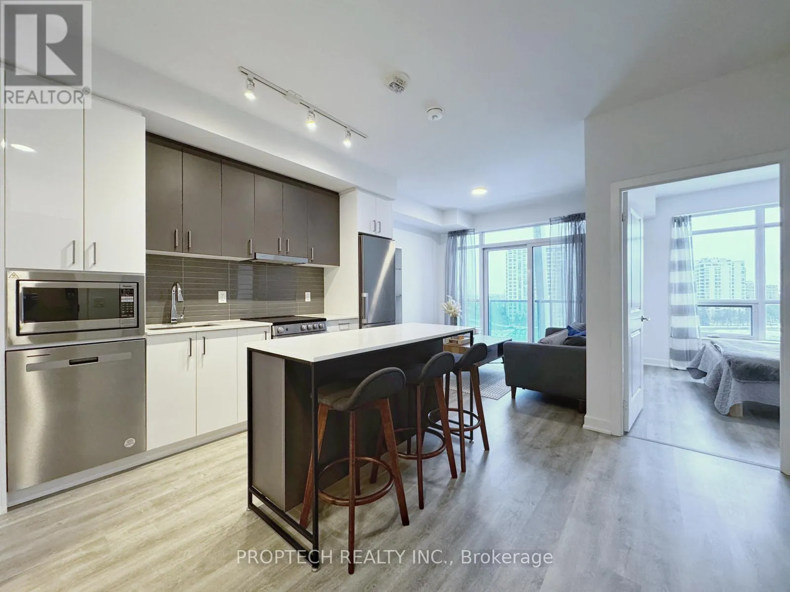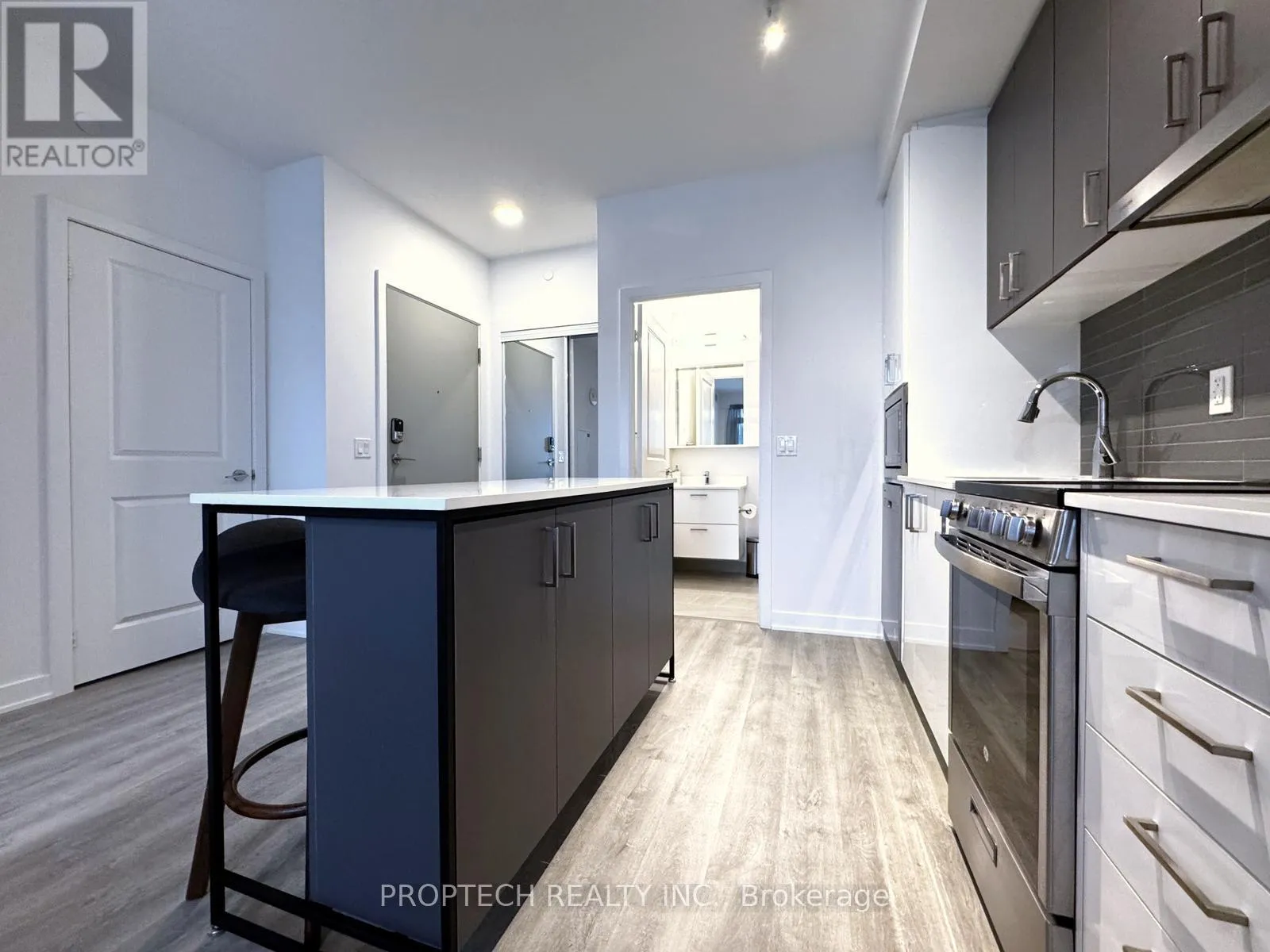 Cross Streets: Bathurst St and Clark Ave. ** Directions: From Hwy 407, exit at Bathurst St and head south. Turn right onto Centre St, then right onto Upper Mall Way. Located beside Promenade Shopping Centre, with transit and amenities just steps away. Welcome to Promenade Park Towers, offering modern, low-maintenance living in the heart of Thornhill. This thoughtfully designed 1-bedroom suite features 497 sq ft of interior space plus a 30 sq ft balcony, with a functional layout and north-west exposure bringing in natural light.The open-concept kitchen is upgraded with a kitchen island, granite countertops, European-style cabinetry, ceramic backsplash, and stainless steel appliances, flowing seamlessly into the living area and private balcony - ideal for everyday living and entertaining. Laminate flooring throughout adds to the clean, contemporary feel.The bedroom offers a comfortable layout, while the modern bathroom features quartz countertops, a porcelain Deep Soaker tub with shower surround, and stylish fixtures. The suite also includes a Yale Assure keyless smart lock, providing secure and convenient keyless entry.Maintenance fees of $339.79/month include water, heat, and high-speed internet. One locker is included. Parking rental options are available through property management, subject to availability (underground approx. $200 + HST/month, outdoor approx. $150 + HST/month).Located steps to Promenade Shopping Centre, transit, dining, and everyday amenities, with easy access to major highways - an excellent opportunity for first-time buyers, downsizers, or investors seeking a well-connected, move-in-ready condo. (id:27476)