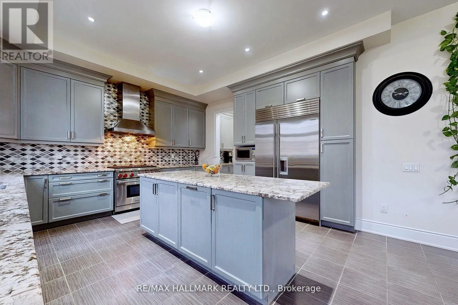 Hwy 27 / Major Mackenzie Absolutely Stunning 5-Bedroom Detached Home Offering Over 4,600 Sqft of Living Space, Located In The Prestigious Kleinburg Community! This exceptional home sits on a premium pie-shaped lot spanning approximately 160 feet at the rear, fully fenced and complete with an interlock patio ideal for outdoor entertaining. The interior showcases elevated craftsmanship and thoughtful design throughout, featuring custom interior doors, rich hardwood flooring, extensive pot lighting, crown moulding, and soaring ceilings including 10' ceilings on the main level, 9' ceilings on the second flr, and 8' interior doors. At the heart of the home is a chef-inspired kitchen with custom cabinetry, Sub-Zero refrigerator, and Wolf gas range, seamlessly blending luxury with everyday functionality. All five bedrooms offer private ensuite baths, providing comfort and privacy for family and guests alike. The walk-out basement with 9' ceilings and a separate entrance offers excellent potential for an in-law suite or future secondary apartment. This home has been thoughtfully updated with a new high-efficiency furnace, dishwasher, GE front-load washer and dryer combo, and updated light fixtures throughout. Recent enhancements also include fresh interior paint, custom closet organizers, a new front entry railing, and a newly painted fence. The rear yard has been improved with a patio designed for outdoor enjoyment, while added conveniences include three garage door openers with remotes and an outdoor camera security system for added peace of mind. Just minutes from top-rated schools, parks, and major highways, all within one of Kleinburg's most sought-after neighbourhoods! (id:27476)