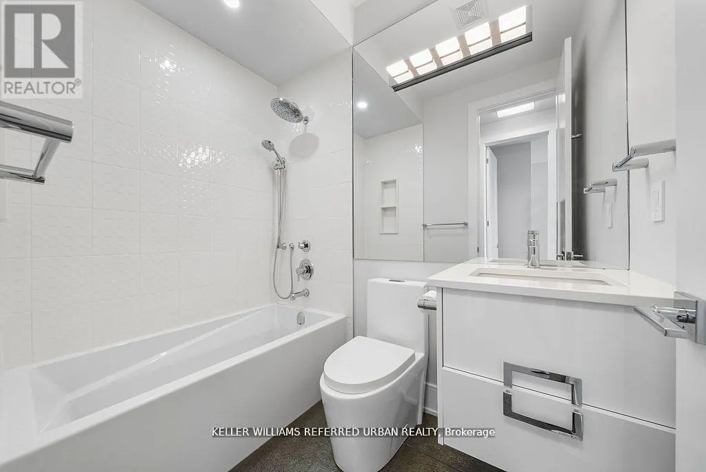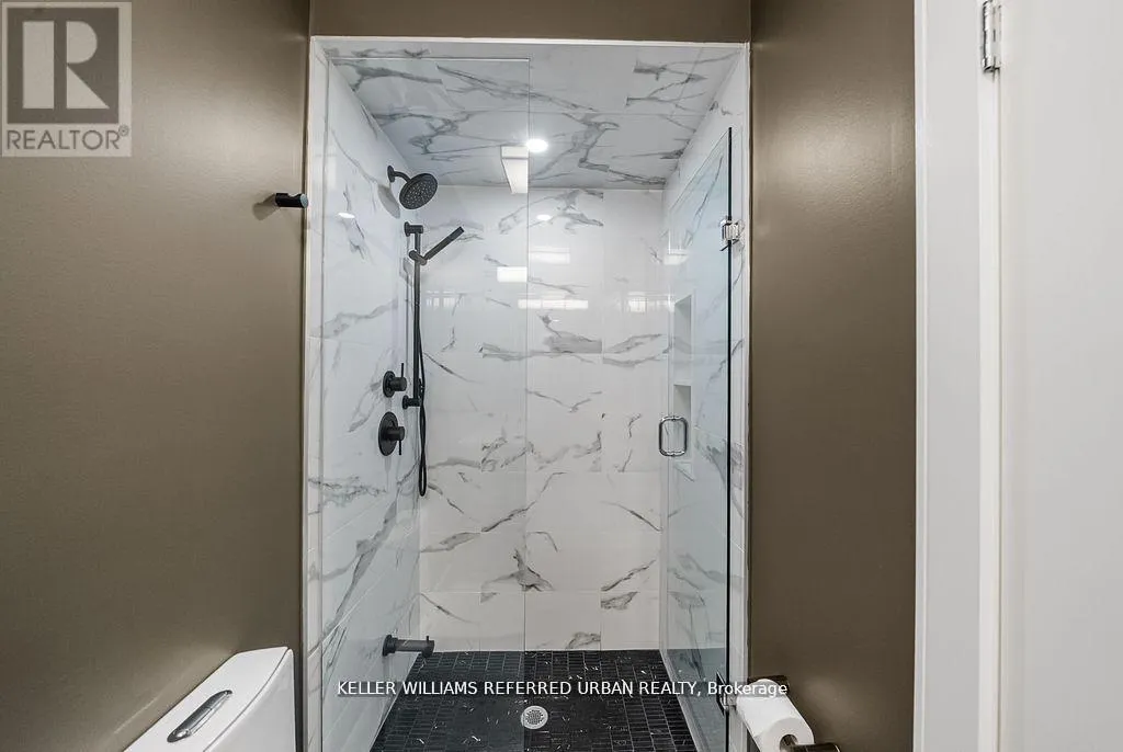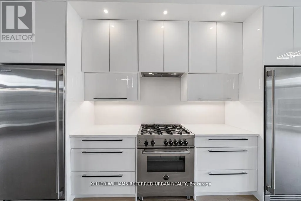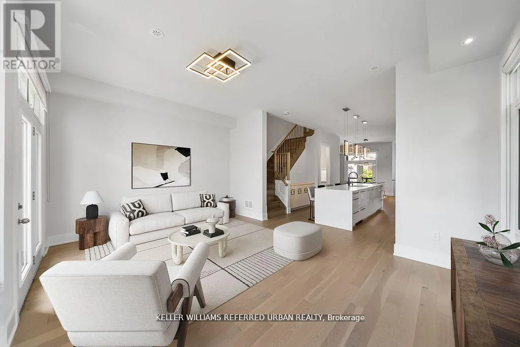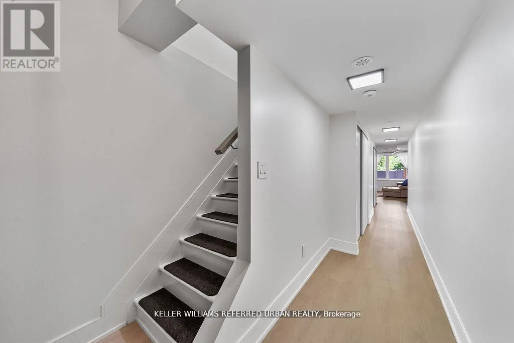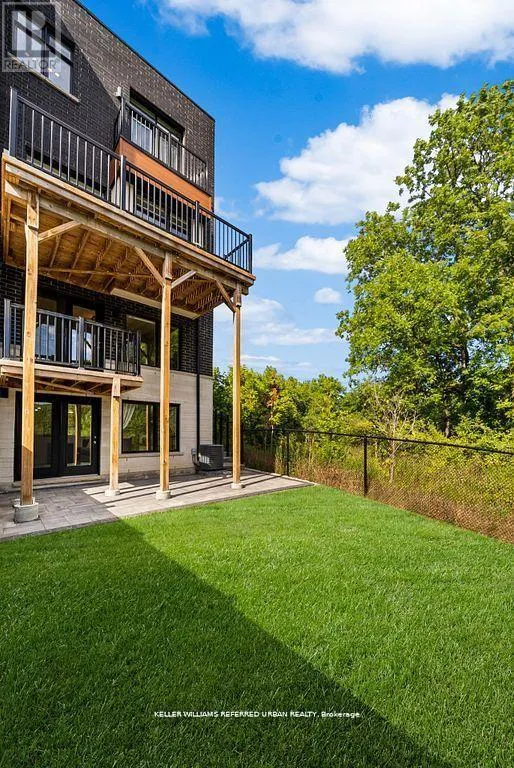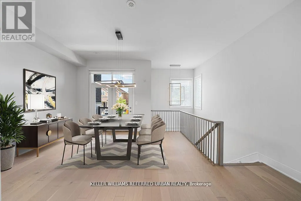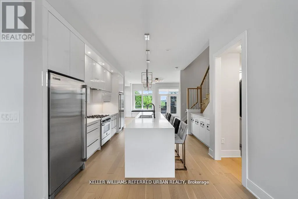 Bathurst/Rutherford Dream home in Patterson - with income-generating, TWO-STORY LOWER LEVEL APARTMENT WITH SEPARATE ENTRANCE. Set on a rare 33' X 94" ravine lot with a walk-out basement and an extra-wide 21' interior, this end-unit townhome is unlike anything else in Patterson. Envisioned by a renowned interior designer, every detail has been thoughtfully curated to surpass model home standards. Step inside to soaring 10' ceilings on the main floor and 9' on the second, smooth ceilings throughout, and rich 5" hardwood paired with 7" modern baseboards and 8' shaker doors. The kitchen is a true showpiece, anchored by a 10' island with dual waterfall edges, quartz counter, walk-in pantry, under-cabinet lighting, and a window seat that captures ravine views. The primary suite offers a retreat-like feel with a custom walk-in closet and spa ensuite featuring a standalone tub, quartz niches, sleek skirted one-piece toilets, and upgraded fixtures. The two-storey basement apartment, complete with laundry, offers versatility - perfect for multi-generational living or as a rental suite generating approximately $2,700/month. Outdoors, professional landscaping, interlock walkways, private side patio with backyard access, extended deck, multiple patios, and vinyl fencing create a private oasis. Added conveniences include dual laundry rooms, CATS5 wiring, BBQ gas line, and extra parking. This is more than a home - it's a statement of style, function, and luxury living. (id:27476)