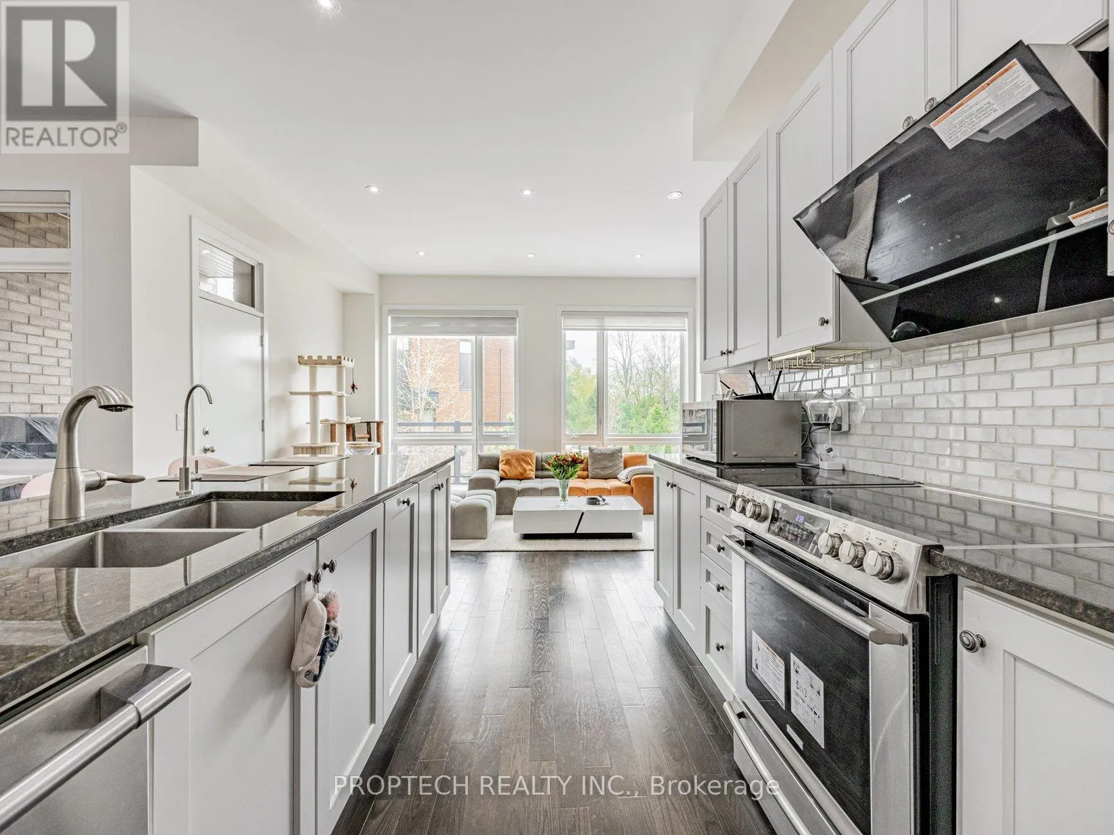 Bathurst/Rutherford Welcome to 45 Thorncrest Dr., a modern and cozy 3-bedroom, 3-bathroom townhouse in the sought-after Patterson community of Vaughan. This meticulously upgraded home features hardwood flooring throughout, with 8 ft ceilings on the main floor, 10 ft ceilings on the second, and 9 ft ceilings on the third, offering a spacious and airy feel. The bright, open layout includes full-height windows and potlights throughout, creating a warm and inviting atmosphere. Recent upgrades include a newly replaced roof vent pipe, reinforced waterproofing and larger drainage on the balcony, and a 2.5-car garage with an EV charger. Additional features include electronic locks, select smart light switches, a whole-home water purification and softener system, and a fresh air ventilation system. Walking distance to plazas with supermarket, restaurants, banks and gym. close to top ranked schools incl St.Theresa CHS and Alexander Mackenzie HS.With modern finishes and thoughtful upgrades, this home provides both style and functionality, perfect for families seeking comfort and convenience in a prime location near amenities, school, transit, and parks. (id:27476)