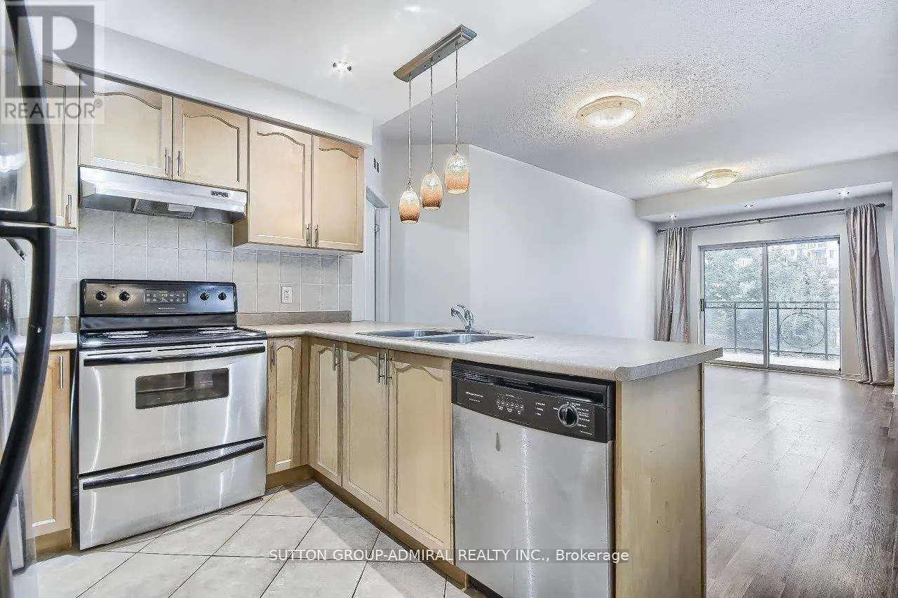 Dufferin And Steeles Welcome to 1 Maison Parc Court, Suite 206 In The Elegant Chateau Ridge Complex. Rarely offered unit in one of Thornhill's most desirable and well-managed residences. Nestled in a quiet, private enclave, this bright and spacious suite offers an ideal blend of comfort, convenience, and resort-style living. Featuring a thoughtfully designed layout with generous principal rooms, large windows, and abundant natural light, this unit is perfect for both relaxed everyday living and elegant entertaining. The open living and dining area flows seamlessly, offering a warm and inviting atmosphere. The primary bedroom is spacious with ample closet space and a serene setting overlooking the lush surroundings. Approx. 800 Sqft. One Of A Kind Bed + Den. Split Design. Den Big Enough To Be Used As A Second Bedroom. Enjoy the convenience of an ensuite laundry, excellent building amenities, and beautifully landscaped grounds. The building offers 24-hour gatehouse security, indoor pool, a fitness centre, sauna, party room, and visitor parking. Located minutes from transit, shopping, restaurants, parks, and community centres, and just a short drive to major highways, this is an exceptional opportunity to live in a highly sought-after Thornhill location. (id:27476)